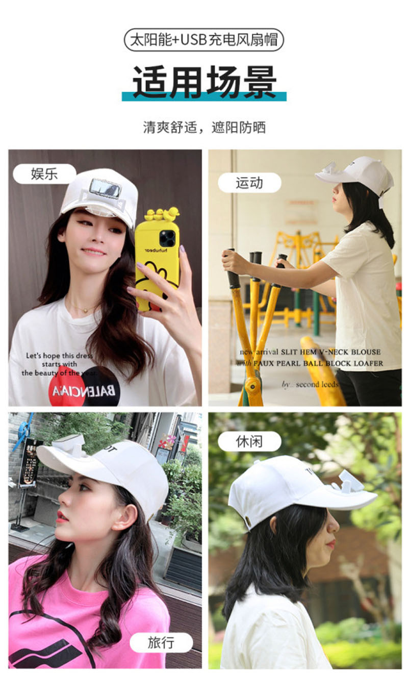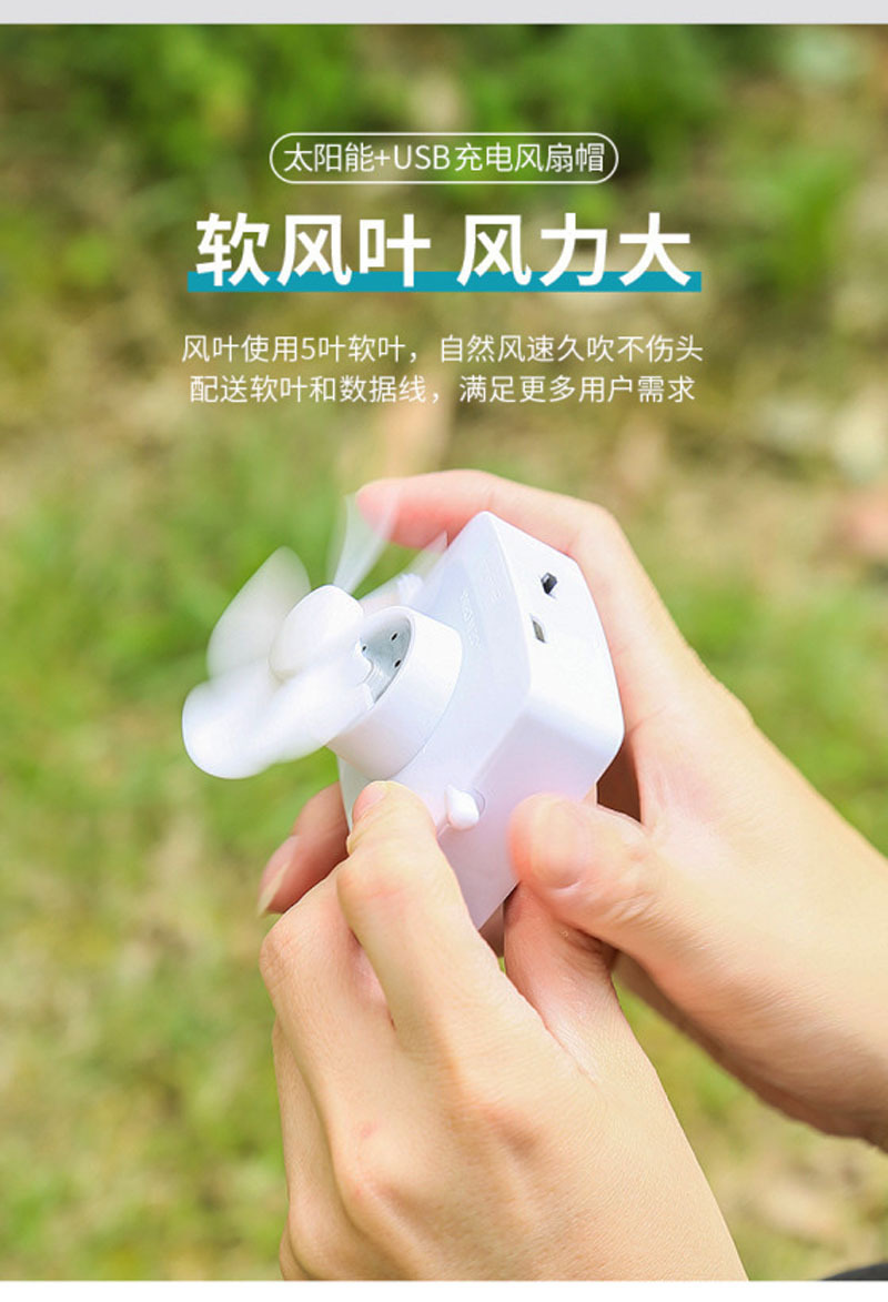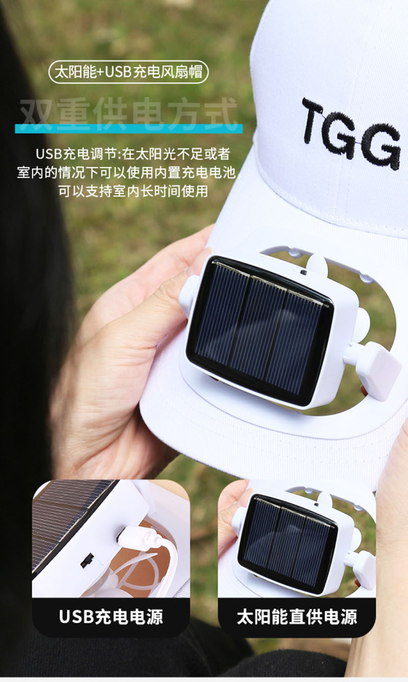 太阳能风扇帽子可充电usb帽子风扇防晒遮阳室内外男女通用风扇帽