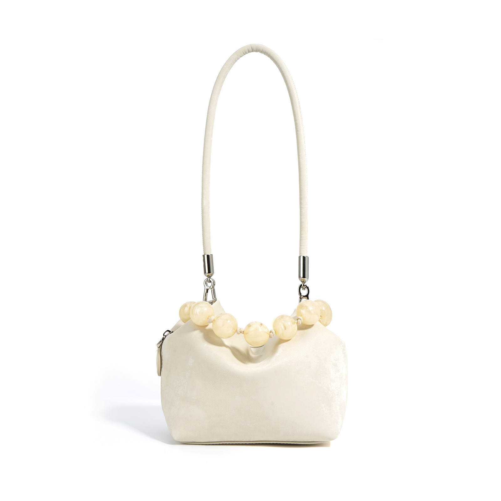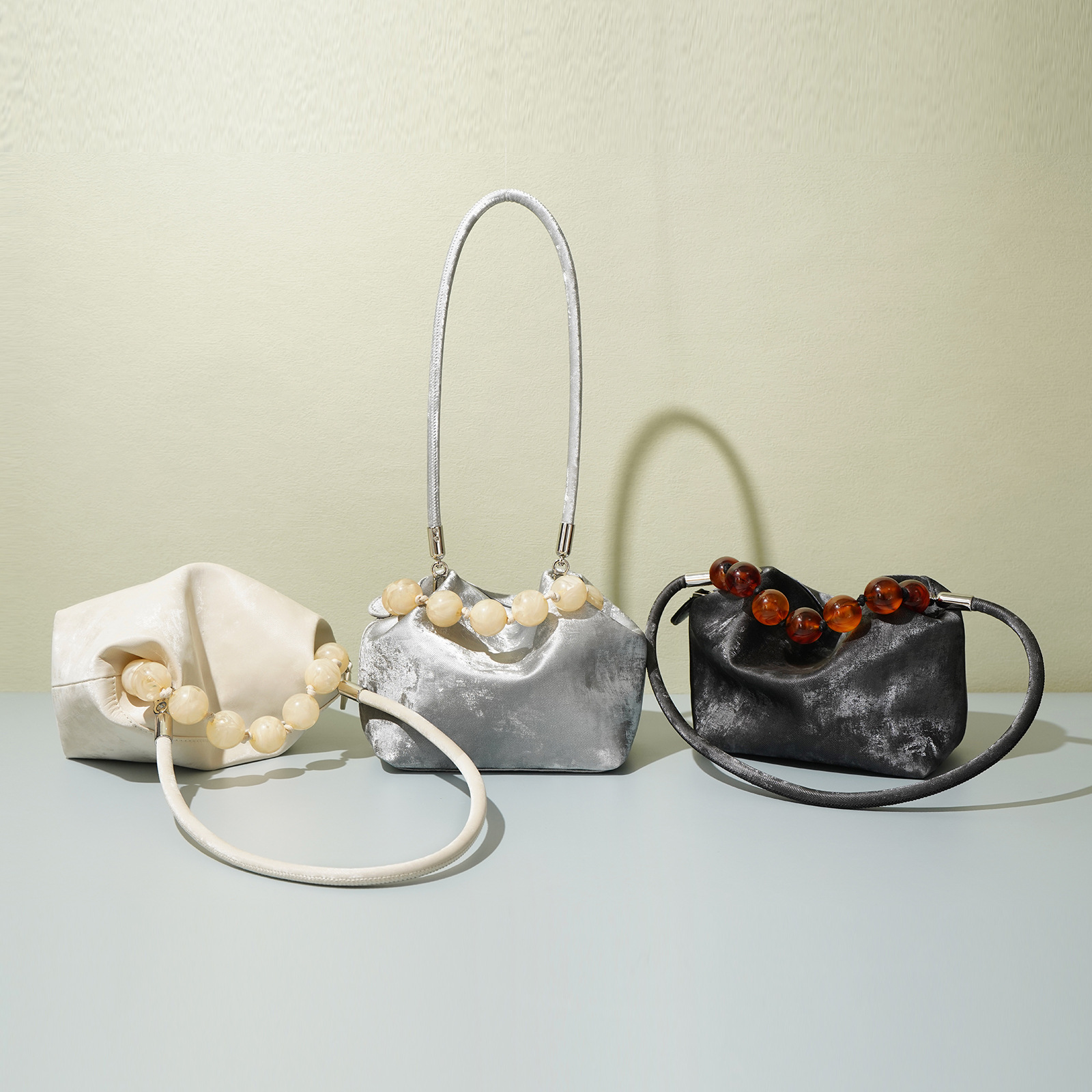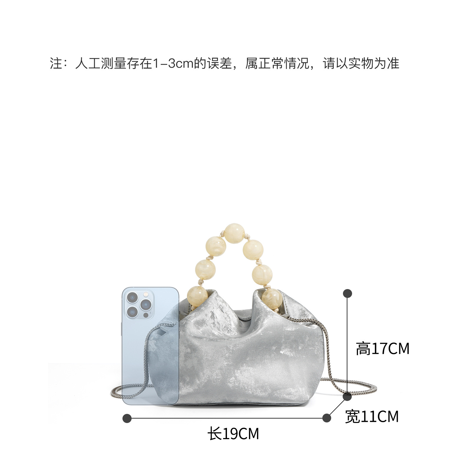新中式牛皮便当包2024春季款时尚休闲单肩包斜挎水桶包银色水桶包