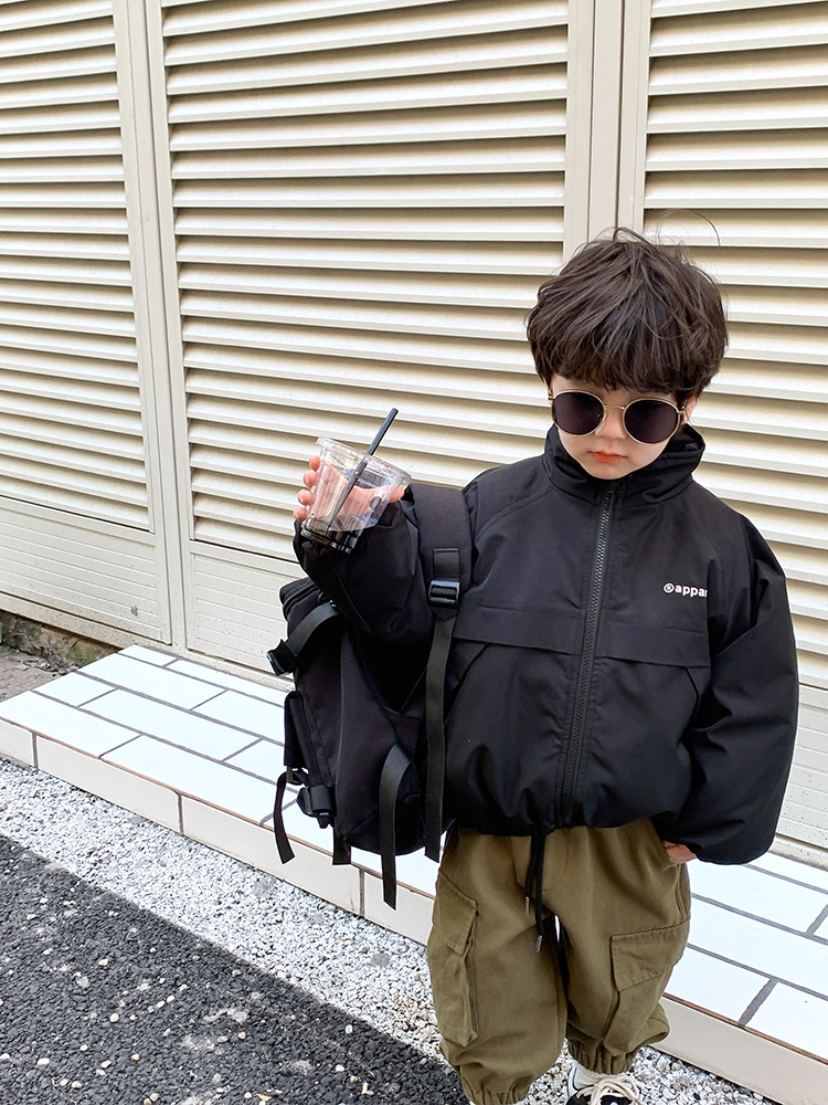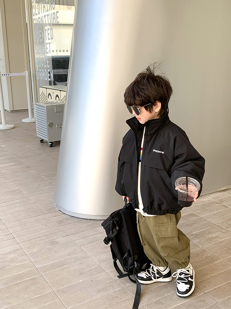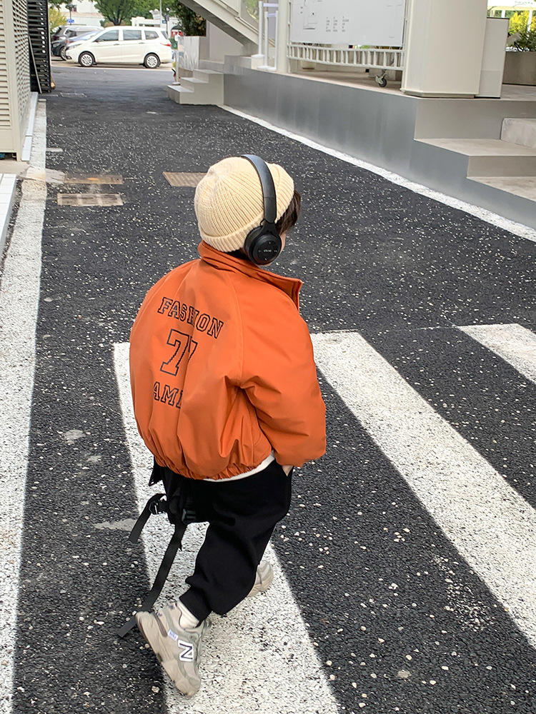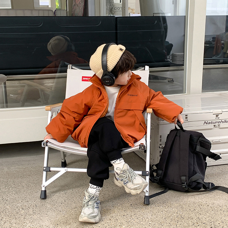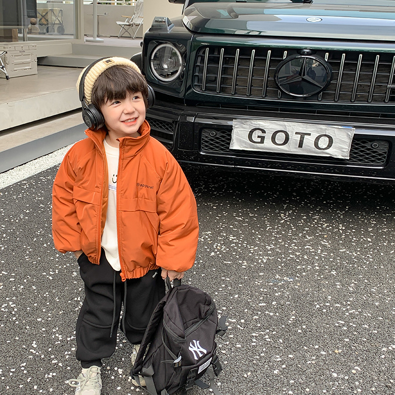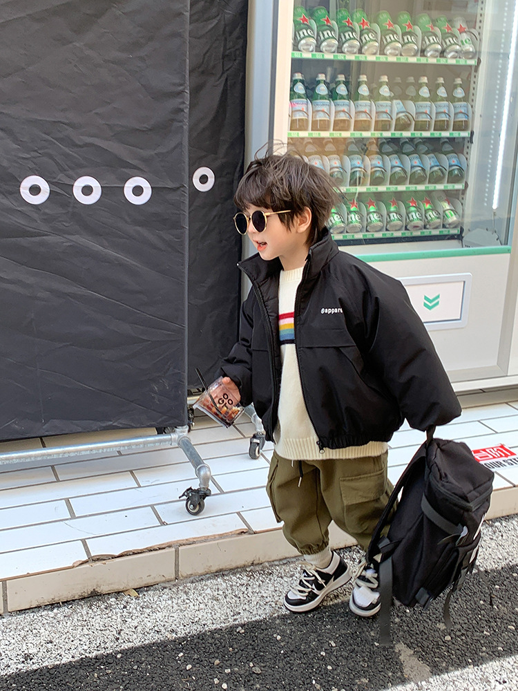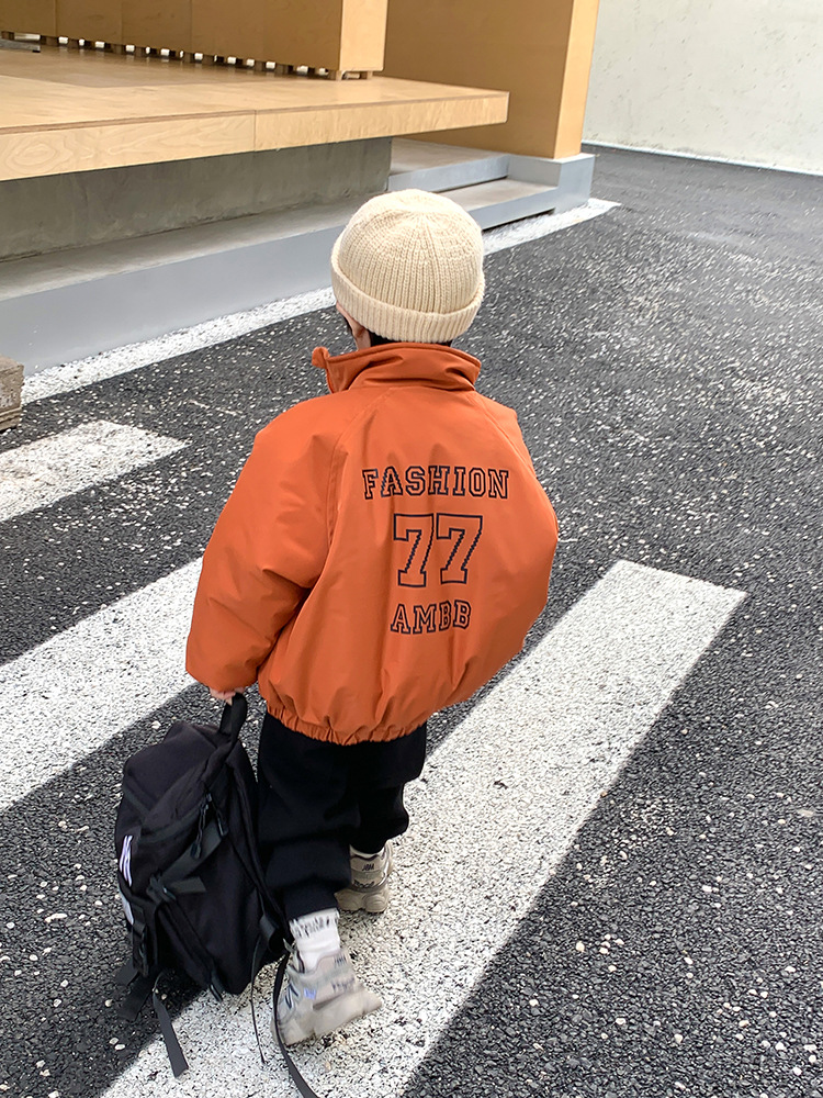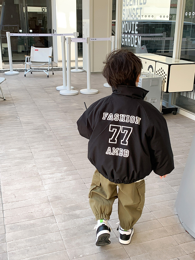 儿童2022冬季新款加厚夹棉面包棉服男女童帅气保暖字母立领外套潮