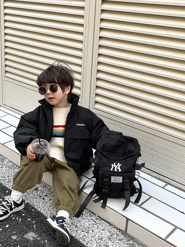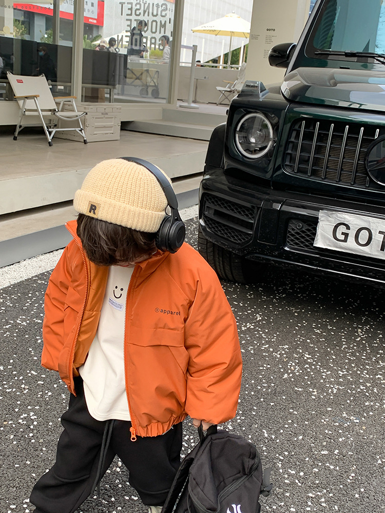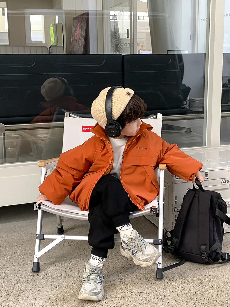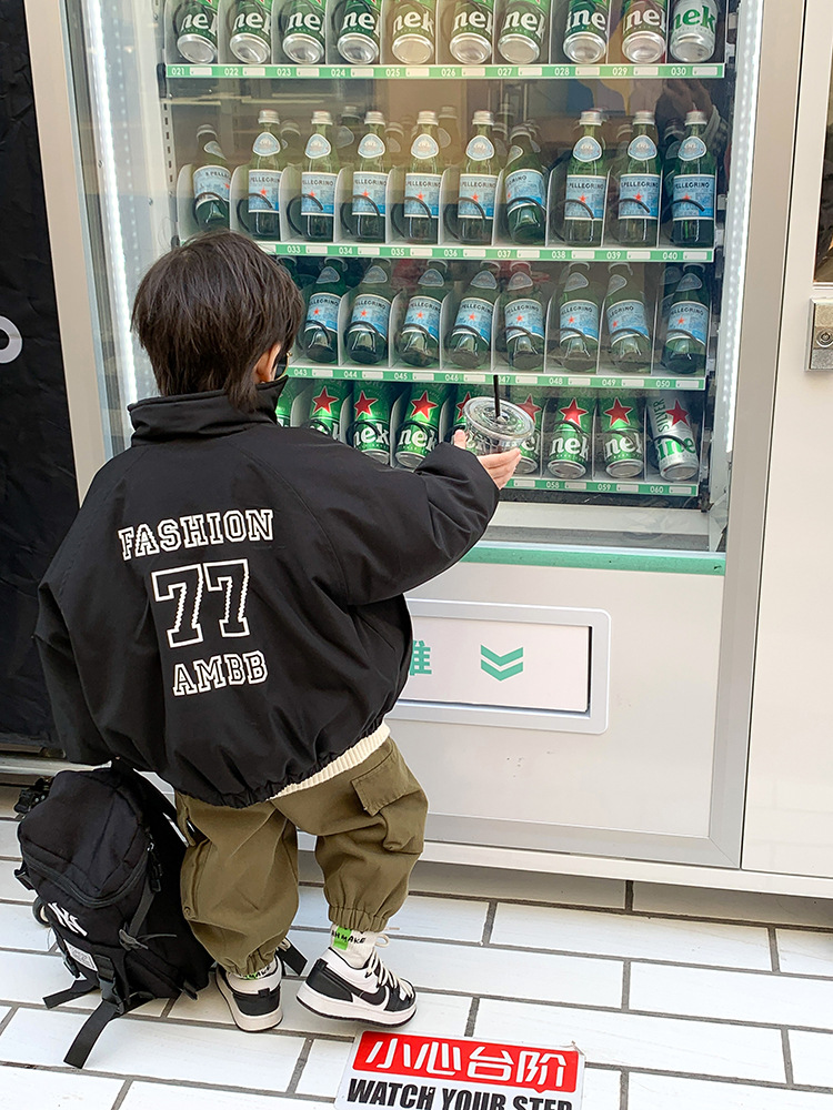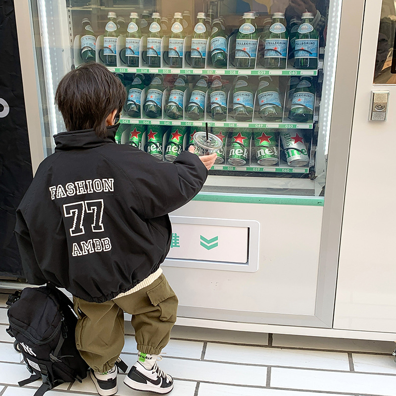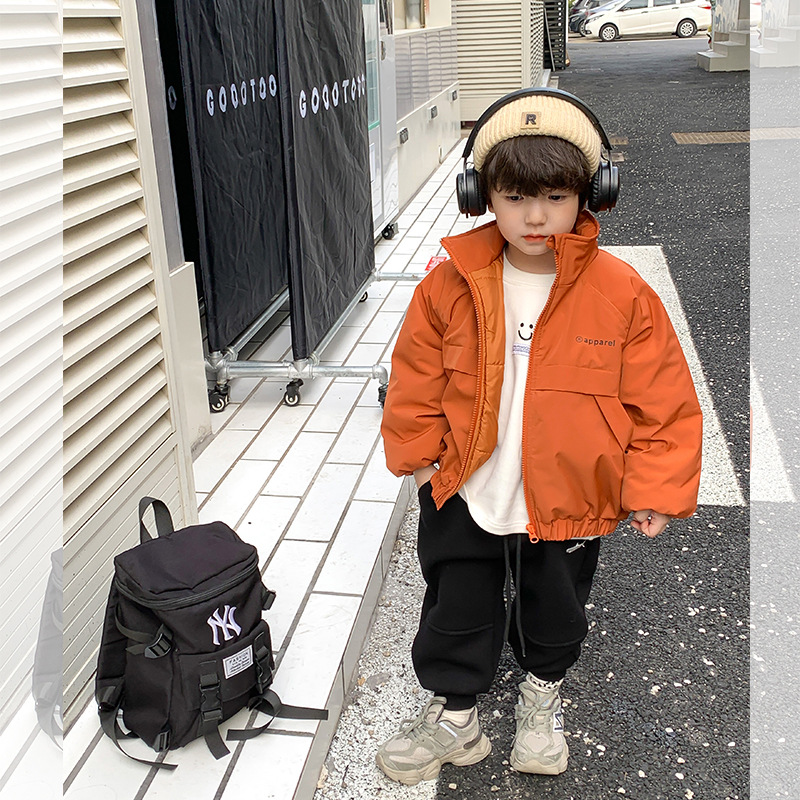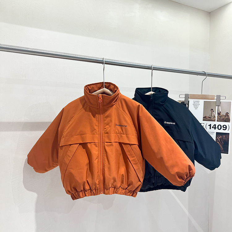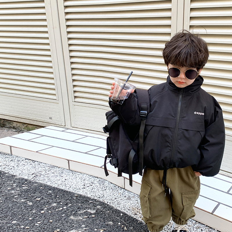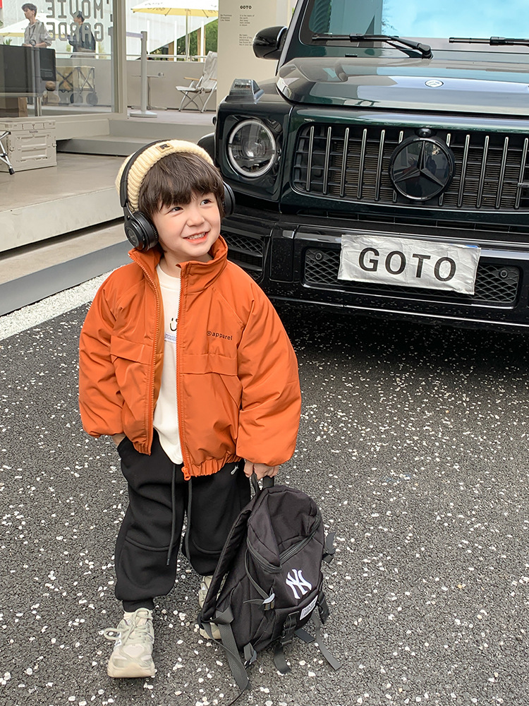 儿童2022冬季新款加厚夹棉面包棉服男女童帅气保暖字母立领外套潮