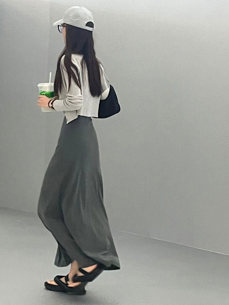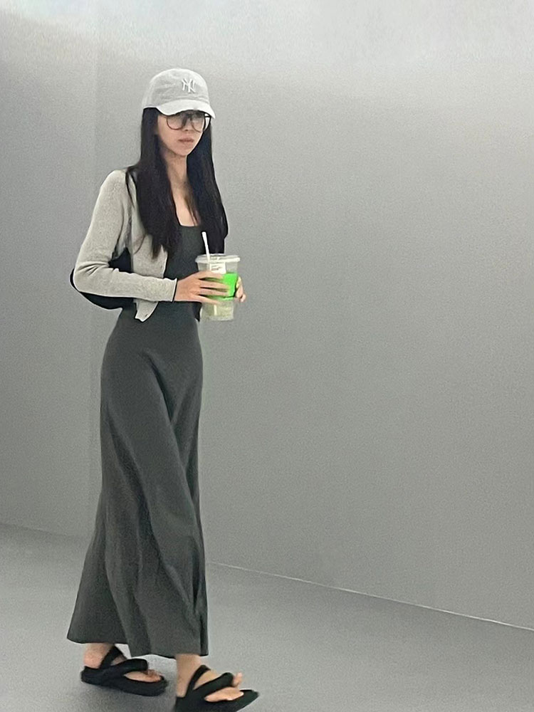 性感辣妹修身顯瘦包臀裙高質量吊帶洋裝優雅灰色長裙子女裝夏季