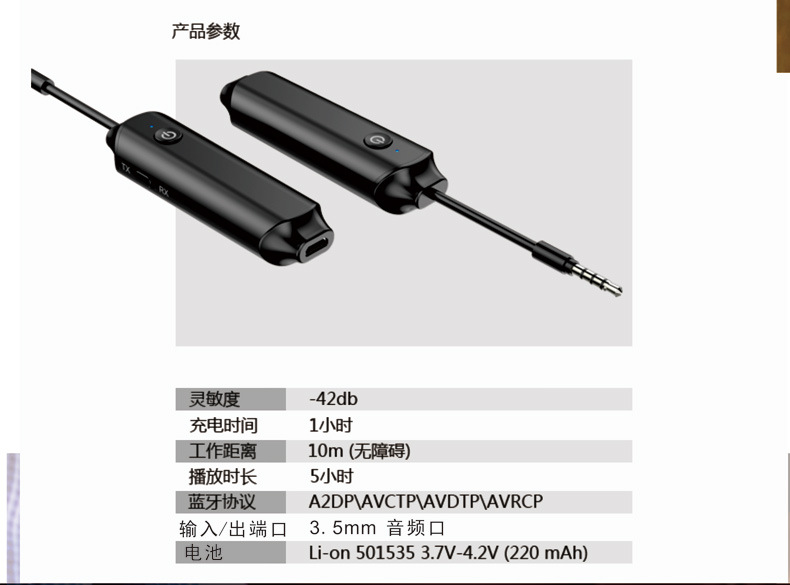 车载无线蓝牙接收器AUX蓝牙棒3.5免提通话蓝牙适配器发射器二合一