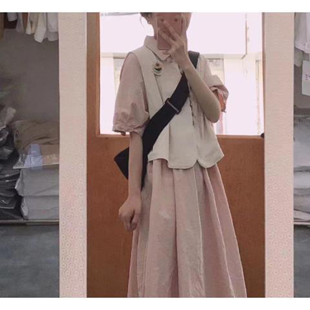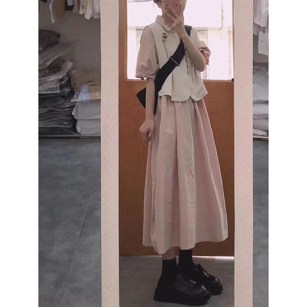 2023夏新款女茶系整套甜美森系洋裝溫柔系炸街奶乖馬甲兩件式套裝
