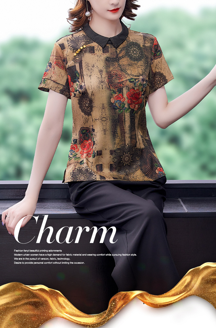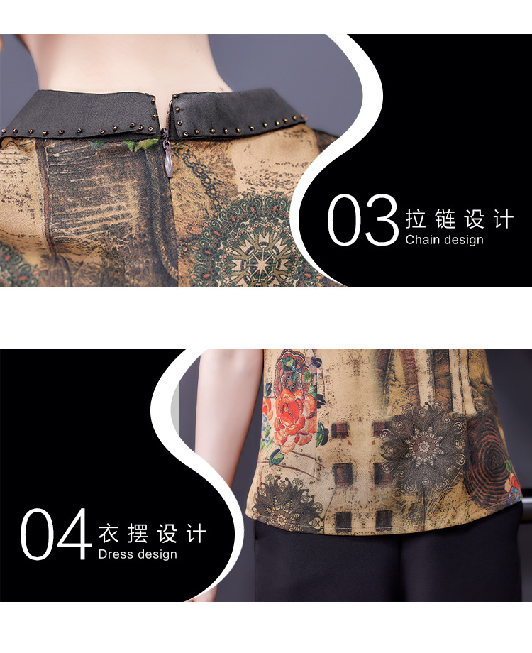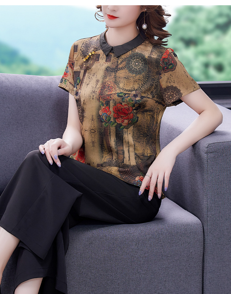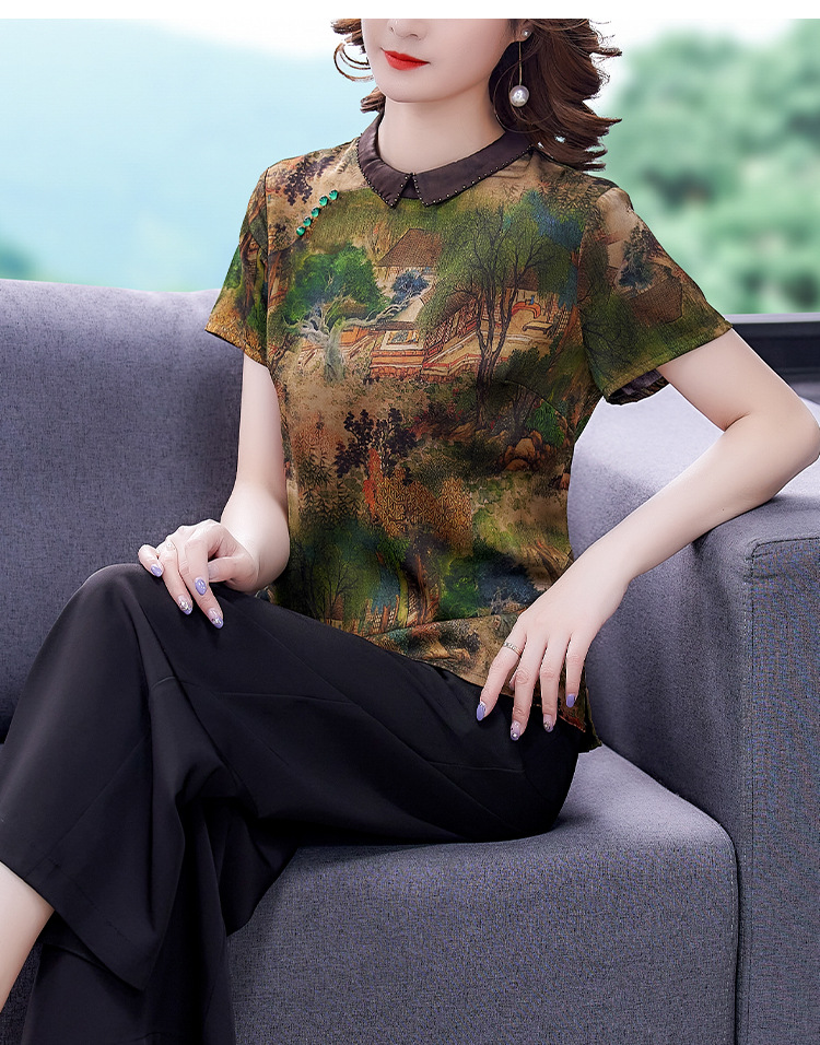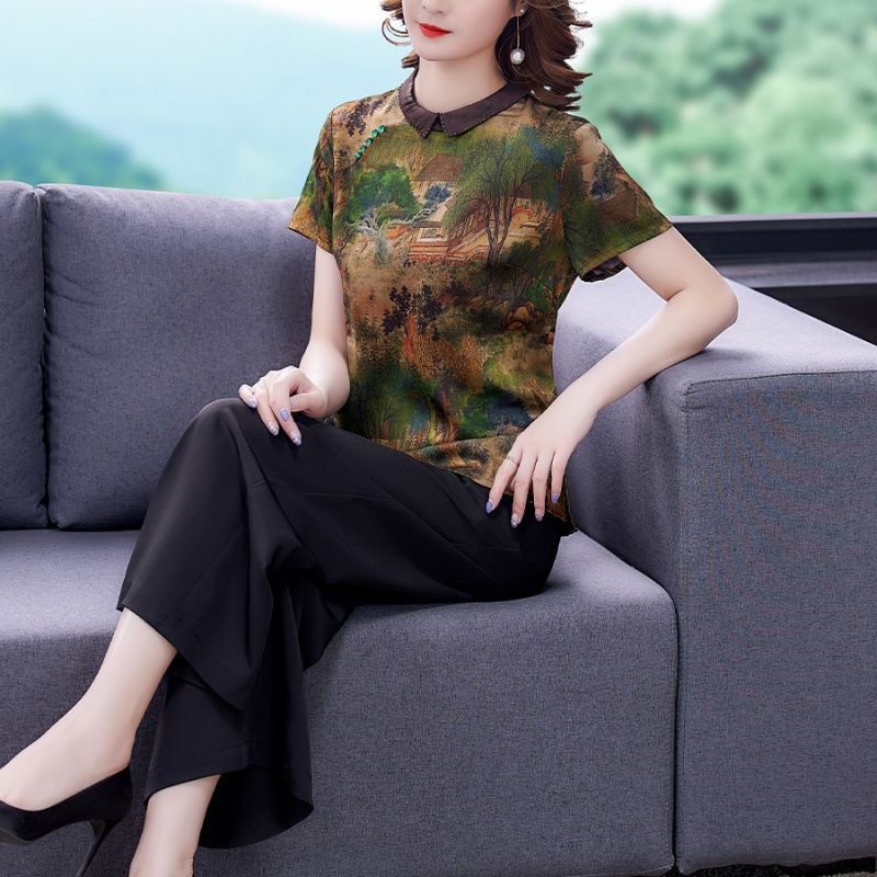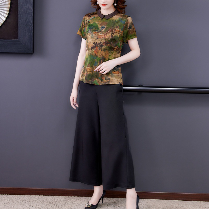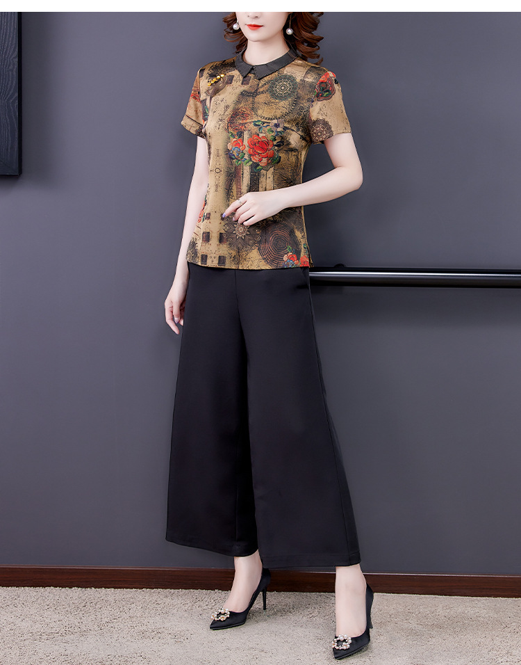 时尚休闲套装女2023夏季新款圆领拼接碎花显瘦上衣阔腿裤两件套潮