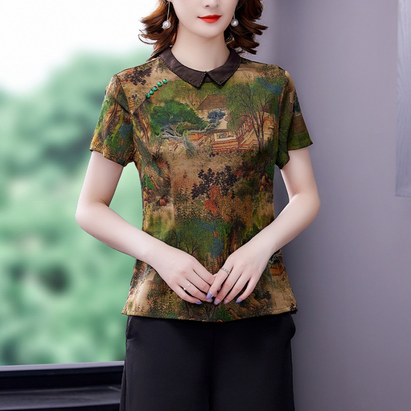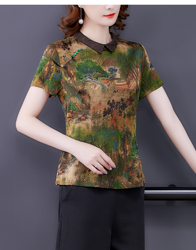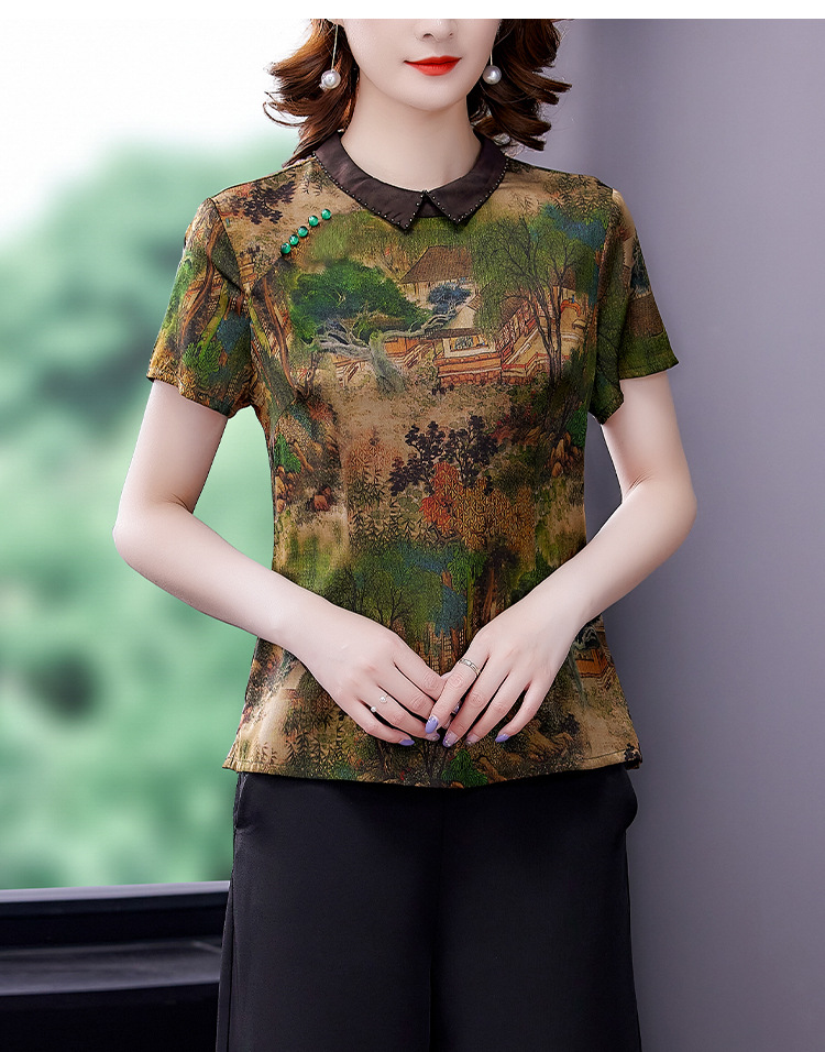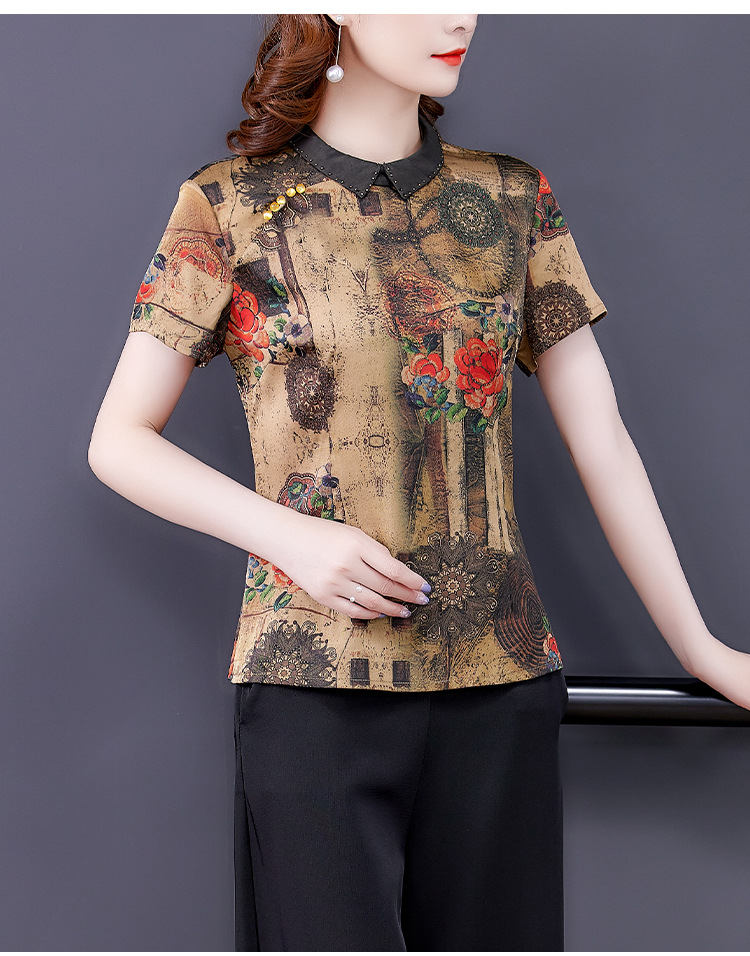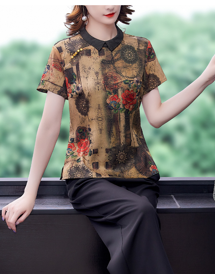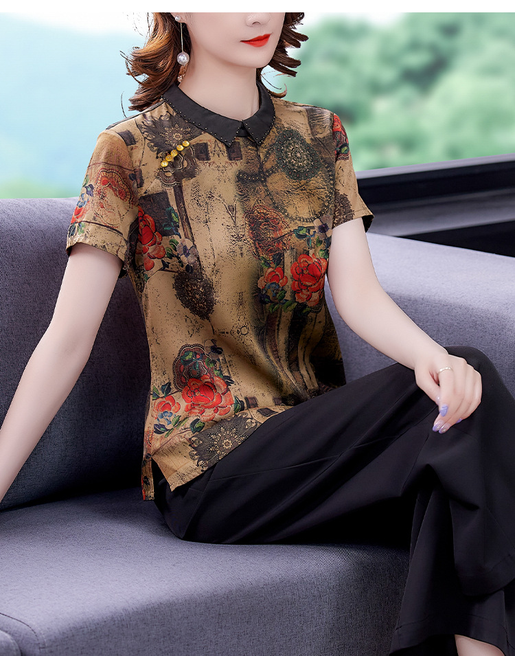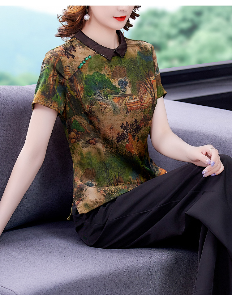 时尚休闲套装女2023夏季新款圆领拼接碎花显瘦上衣阔腿裤两件套潮