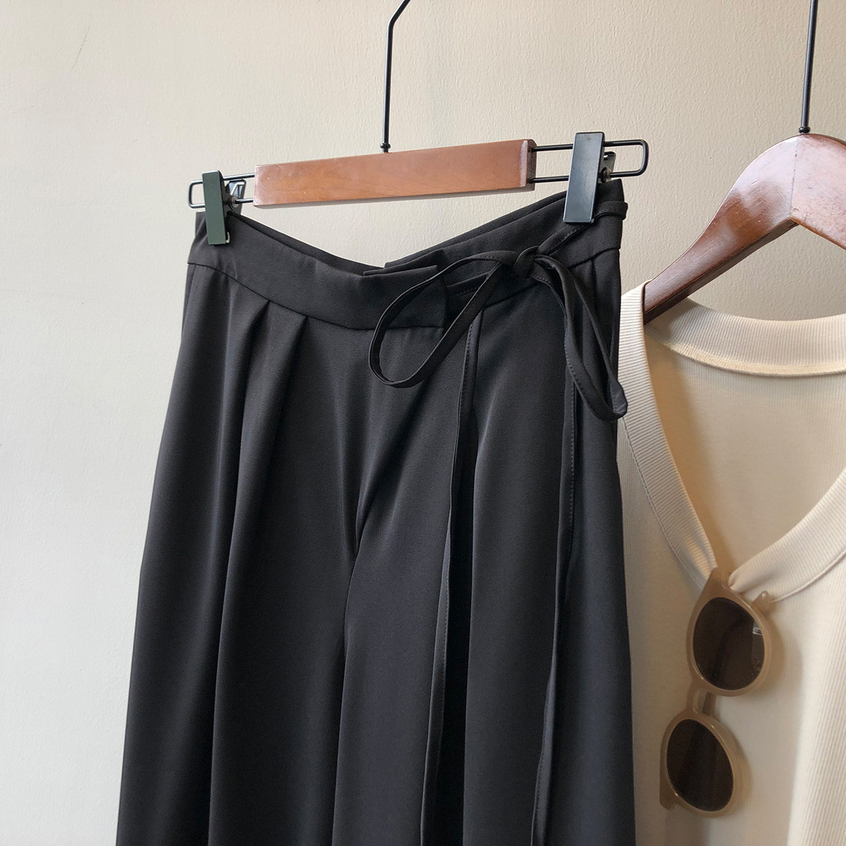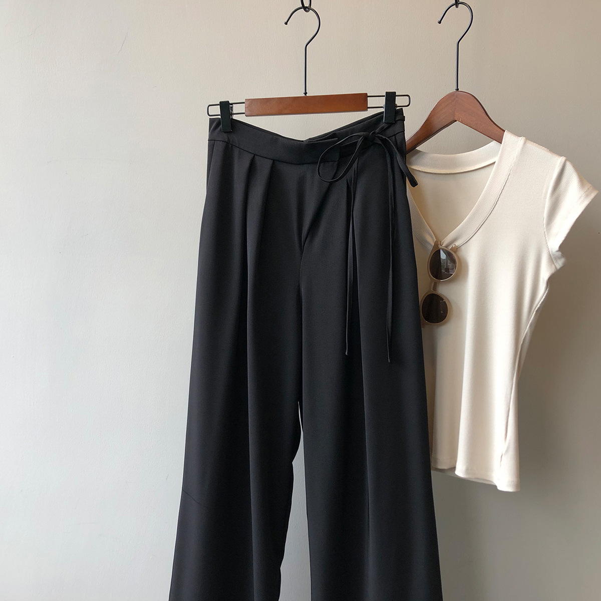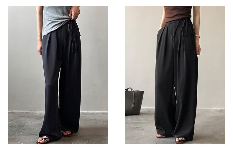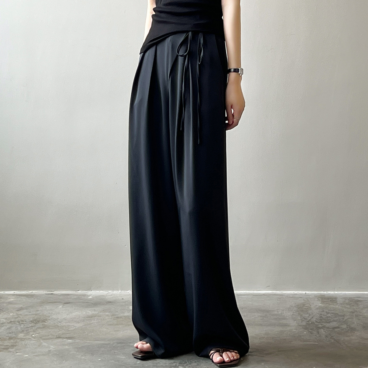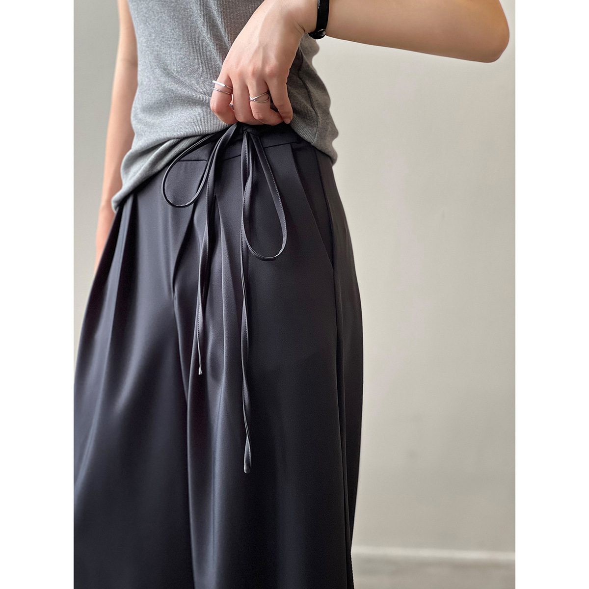 言双 西装裤女2023秋季新款小众绑带高腰垂感休闲直筒阔腿裤9661