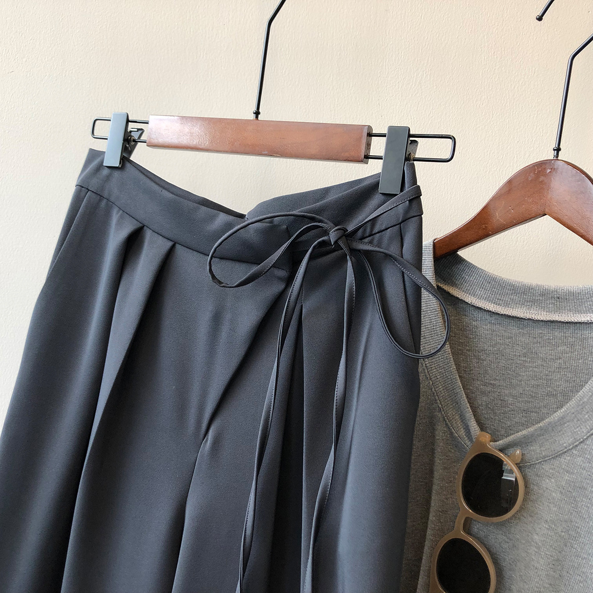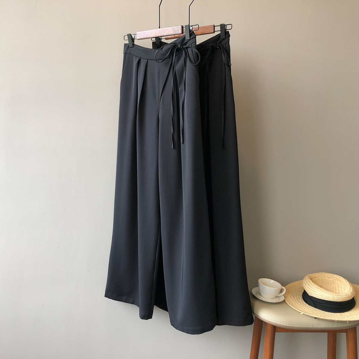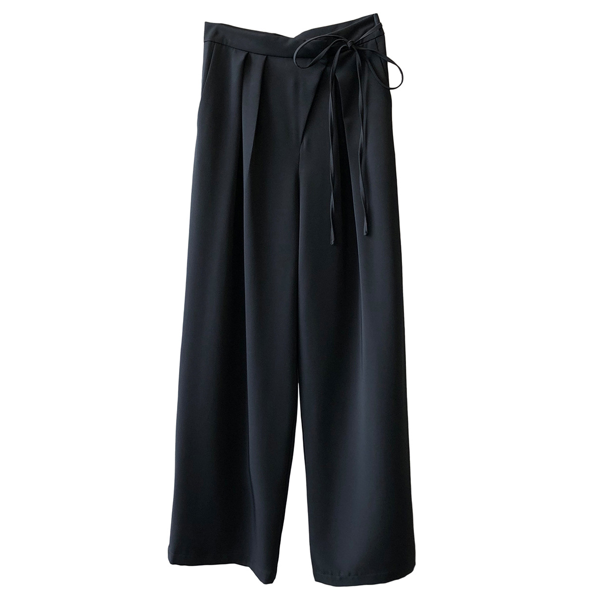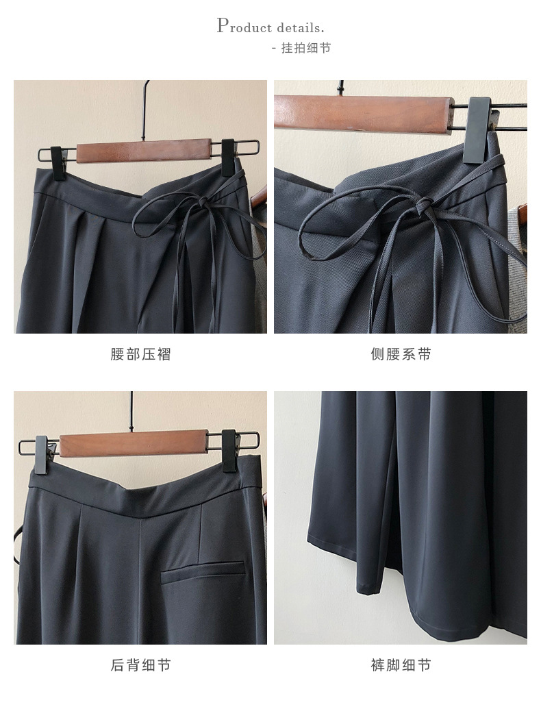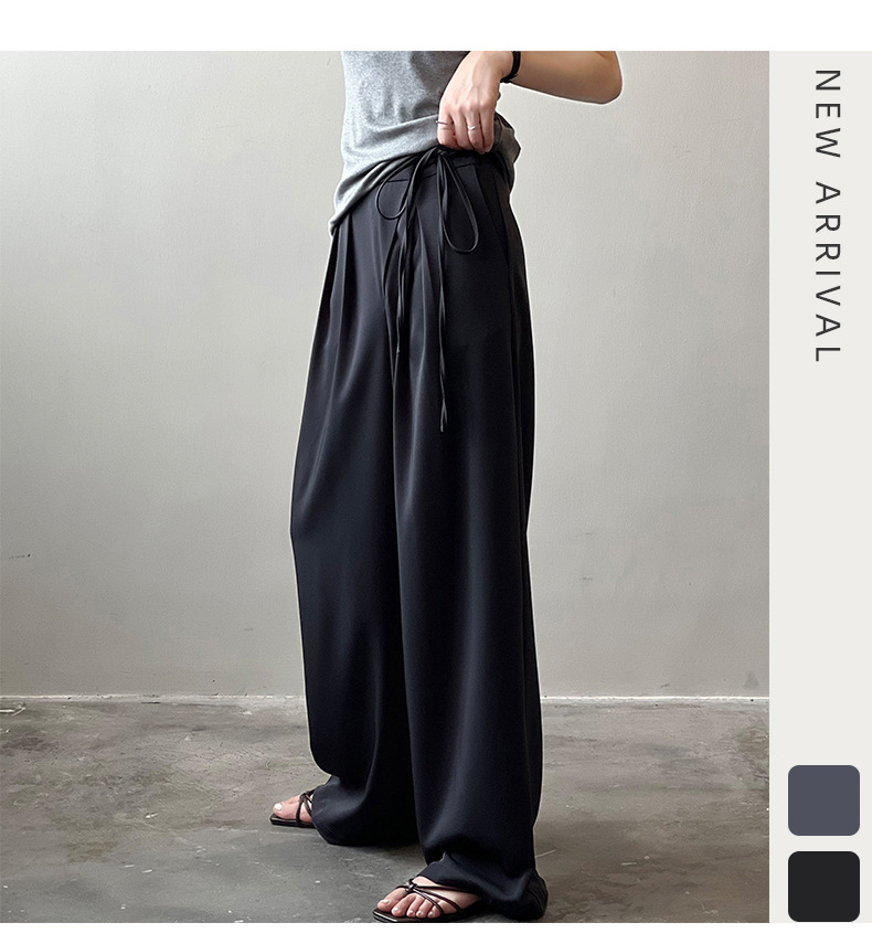 言双 西装裤女2023秋季新款小众绑带高腰垂感休闲直筒阔腿裤9661