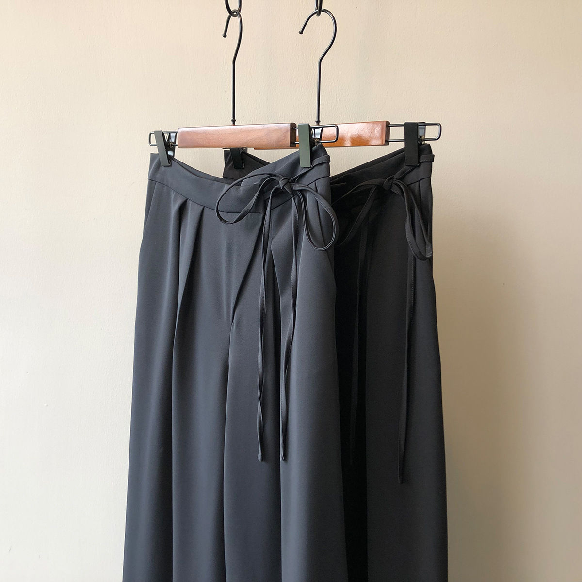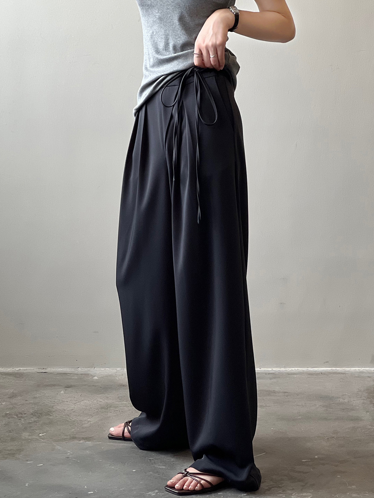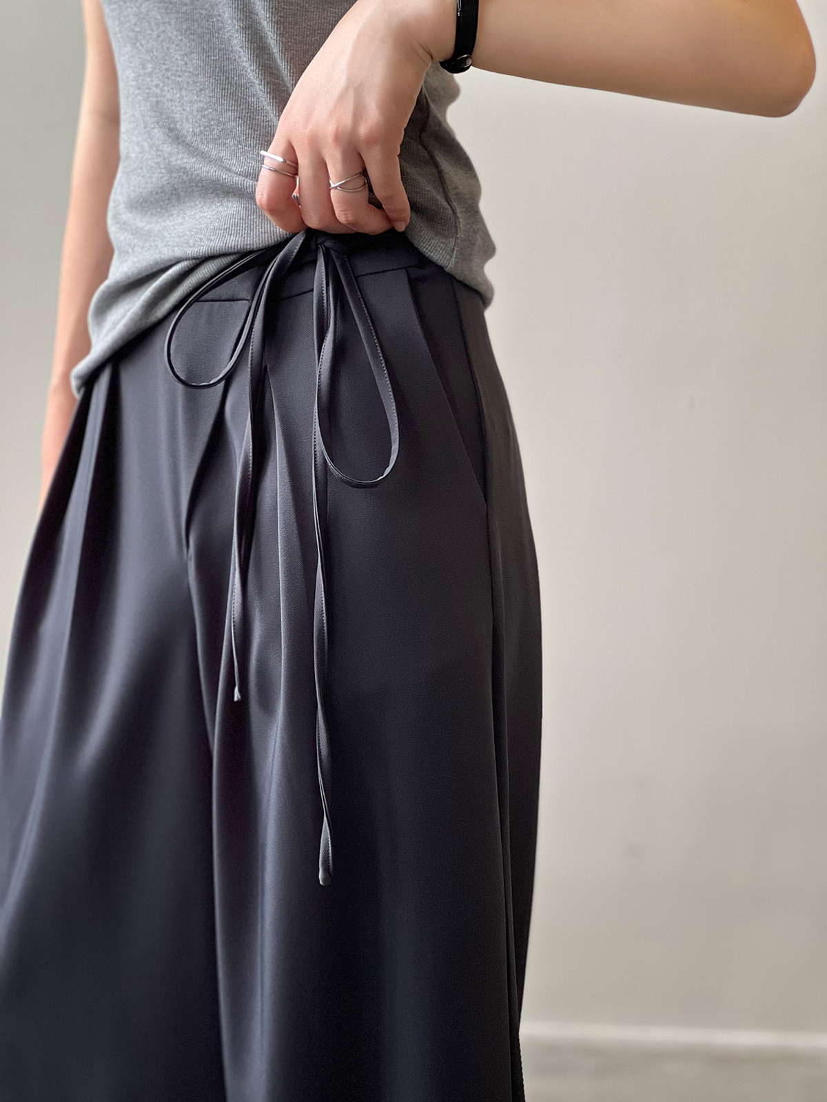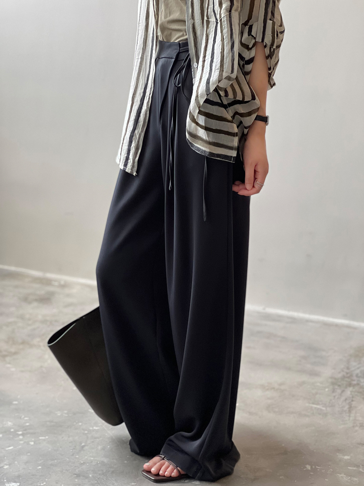 言双 西装裤女2023秋季新款小众绑带高腰垂感休闲直筒阔腿裤9661