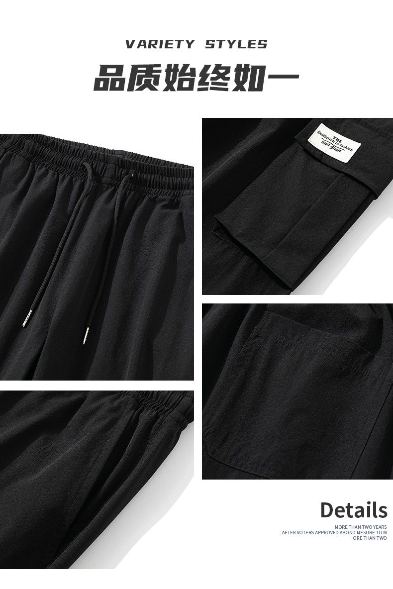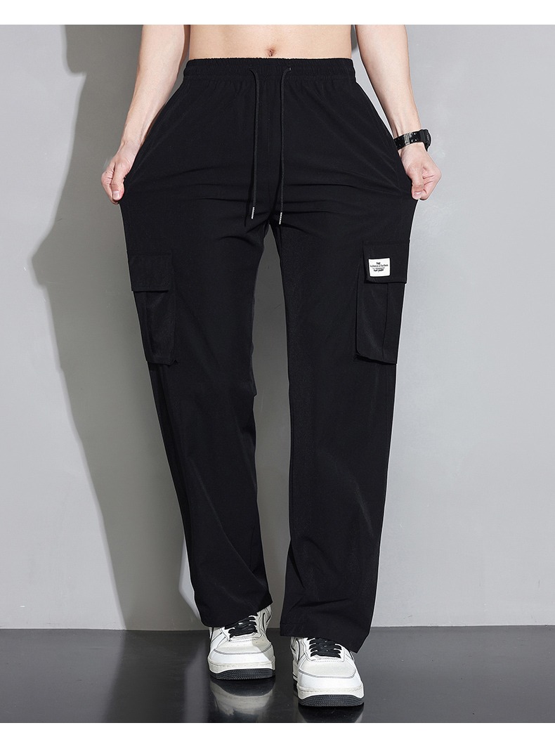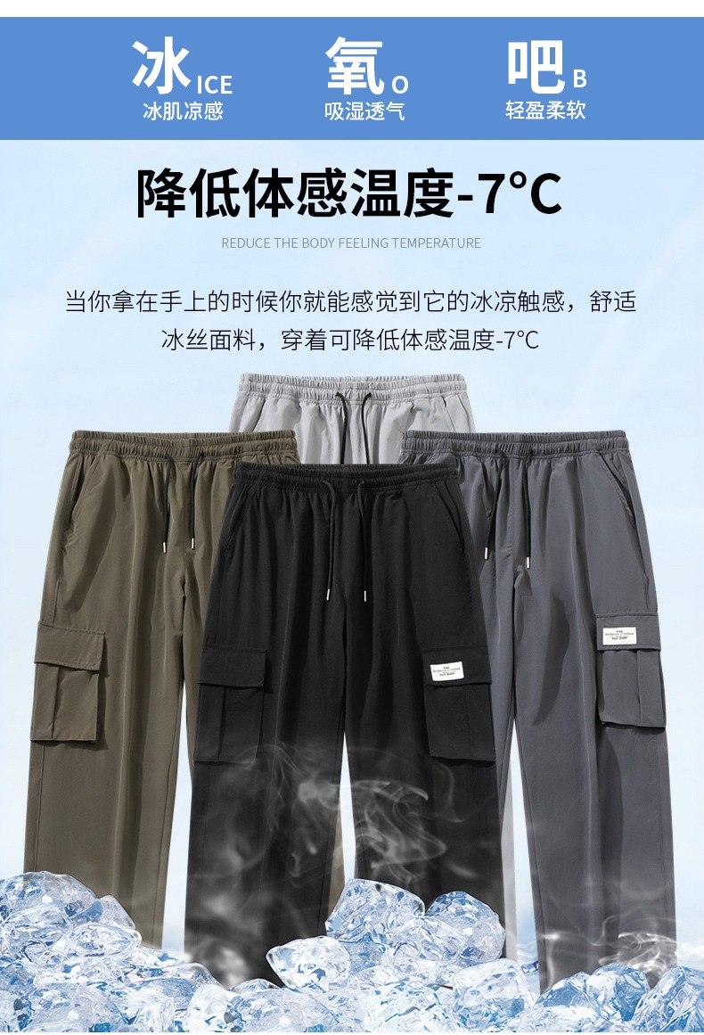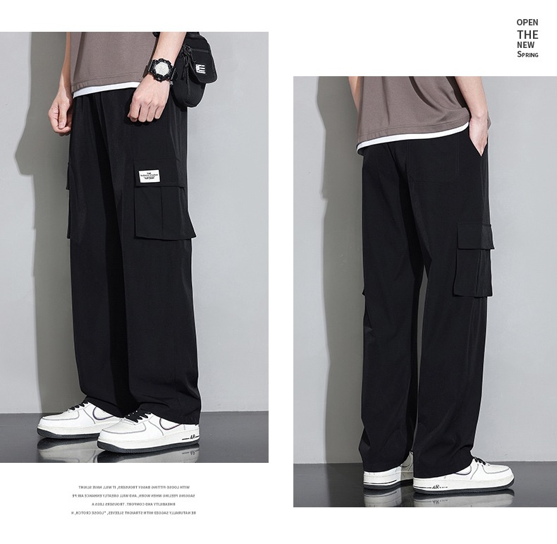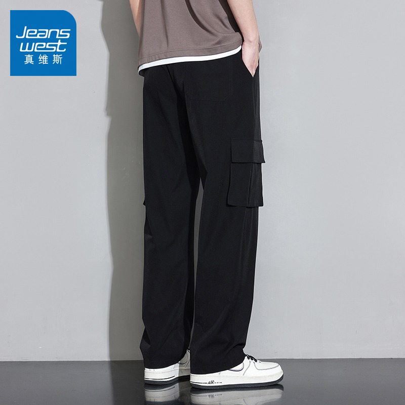 真維斯冰絲工裝褲男夏季薄款美式潮牌寬鬆直筒垂感闊腿休閒長褲子