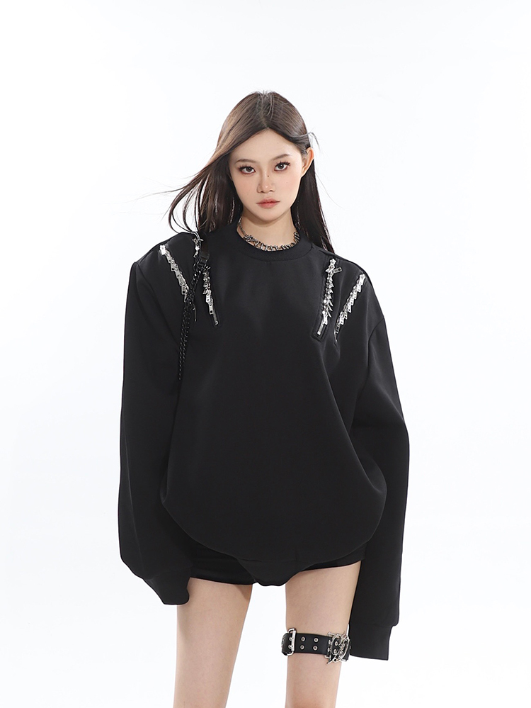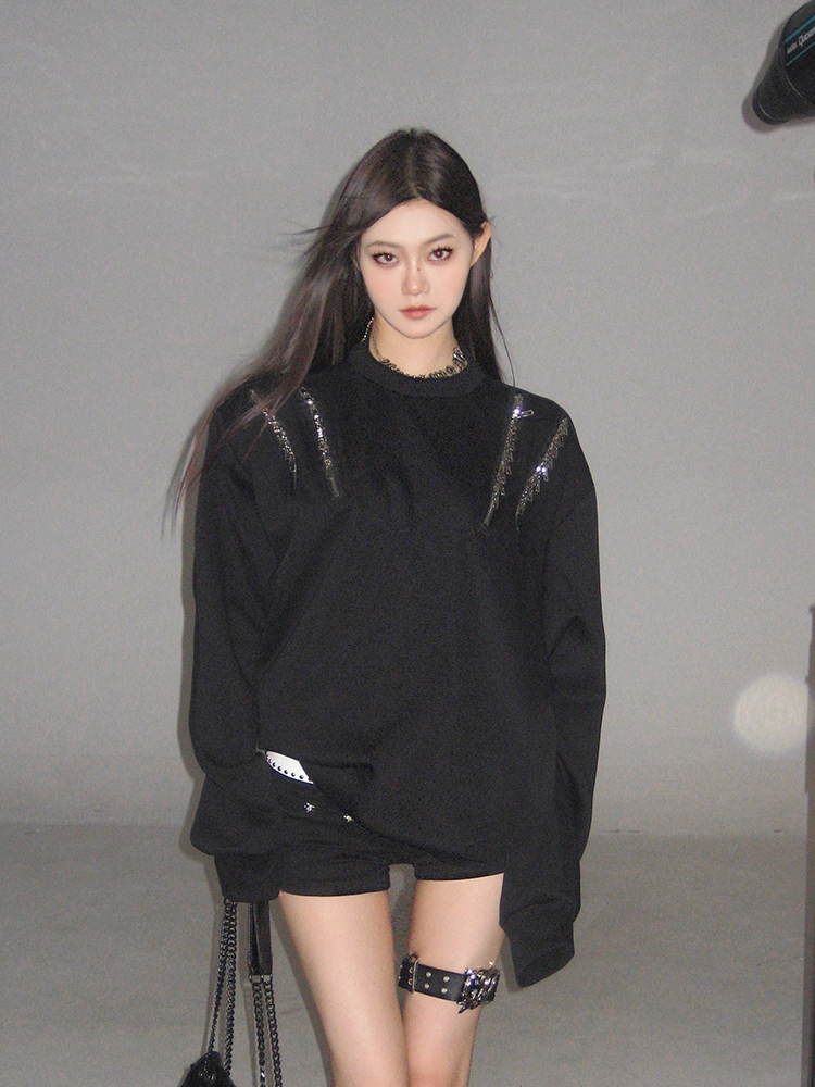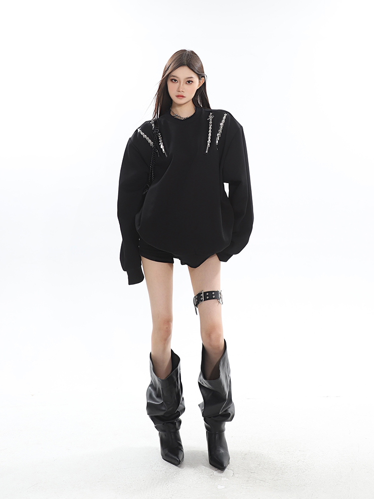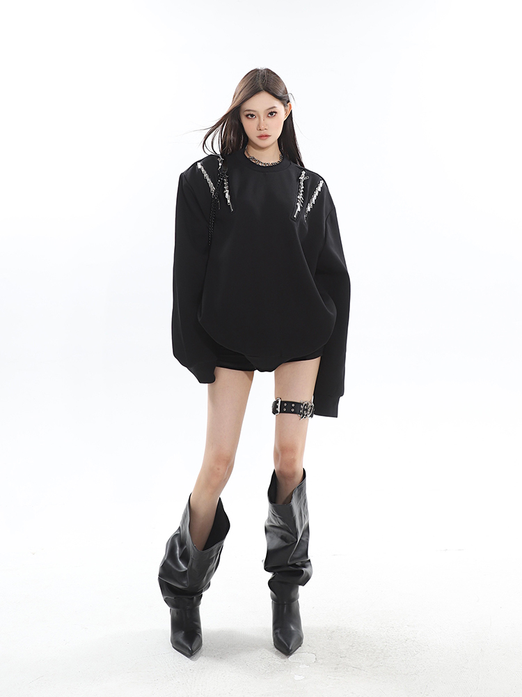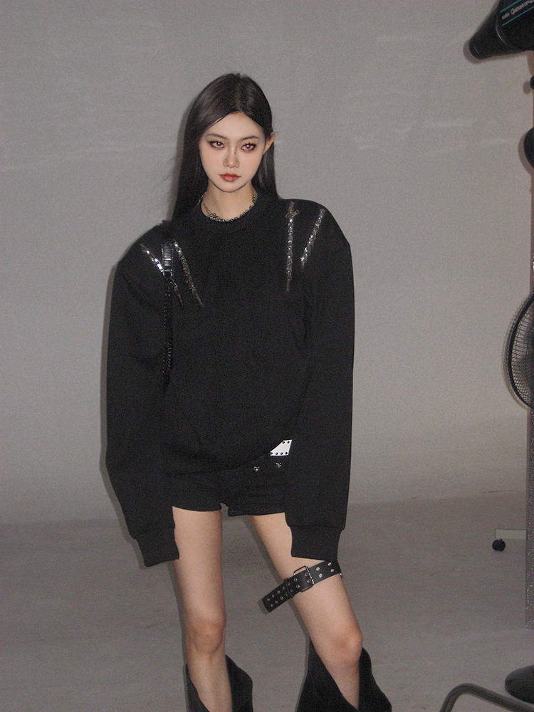 CCUP SAPCE 秋冬新款2023小眾金屬裝飾上衣設計感廓形寬鬆衛衣女