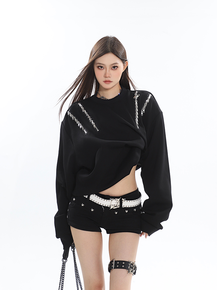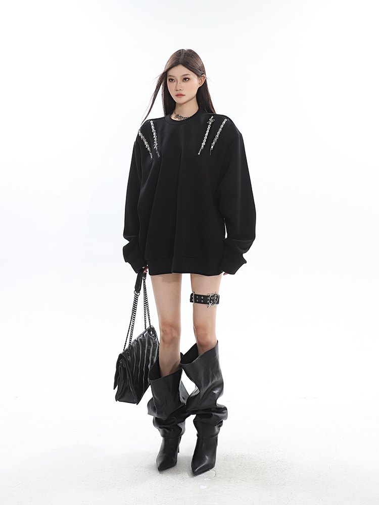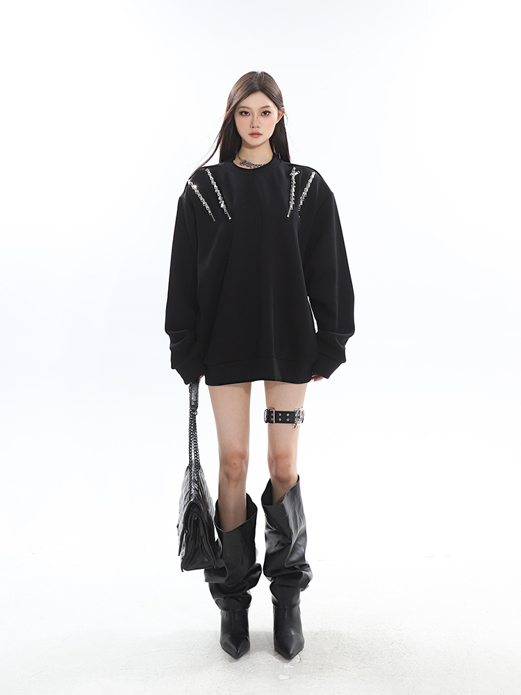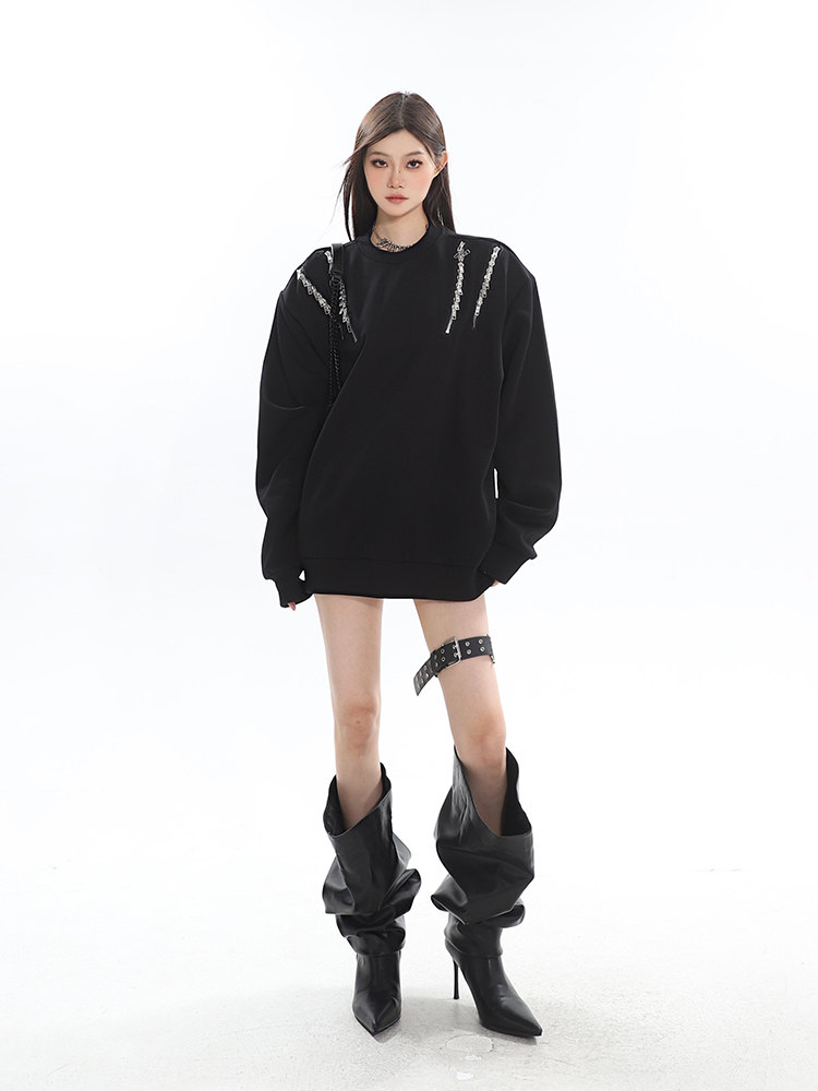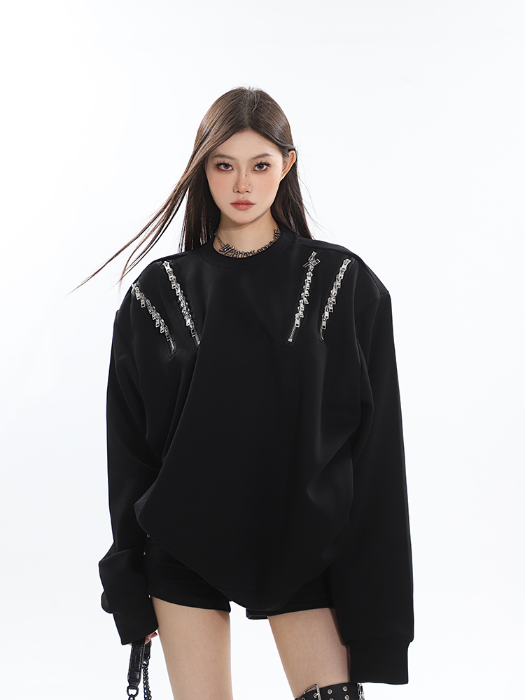 CCUP SAPCE 秋冬新款2023小眾金屬裝飾上衣設計感廓形寬鬆衛衣女