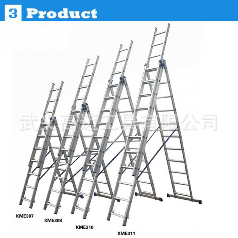 铝合金三层拖梯 人字梯 升降梯 工程梯 4.12米KME306