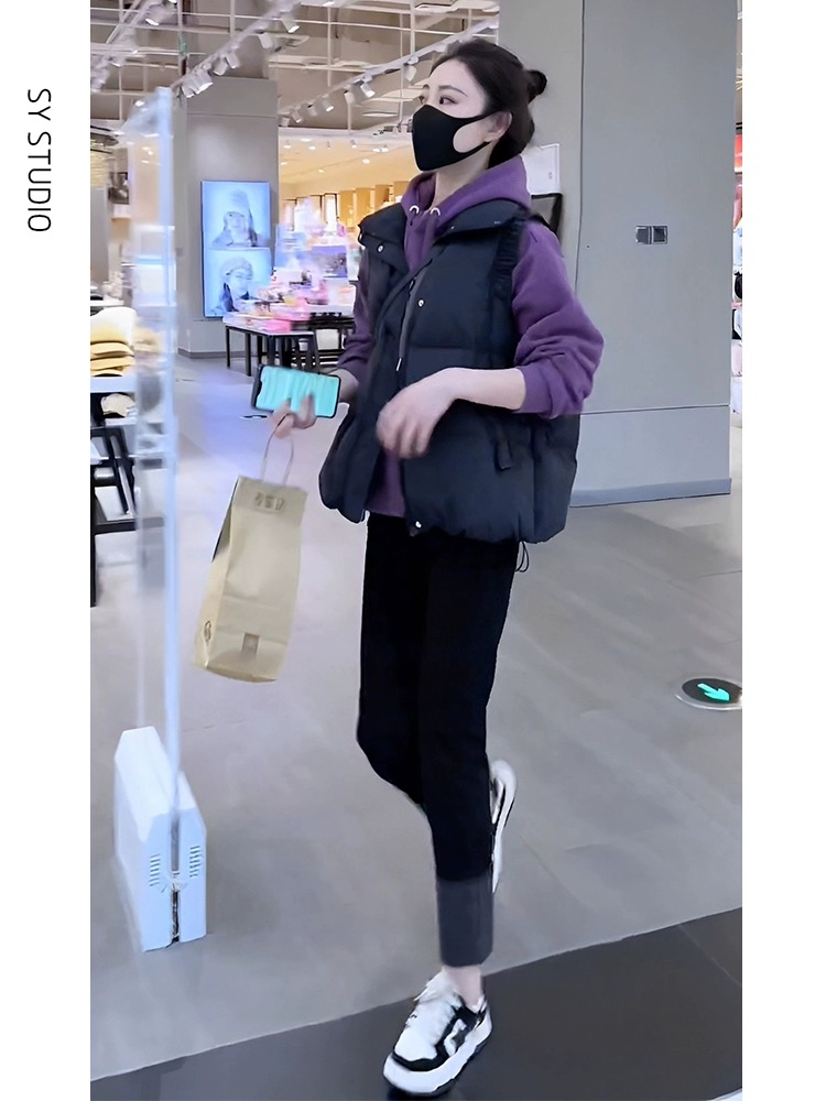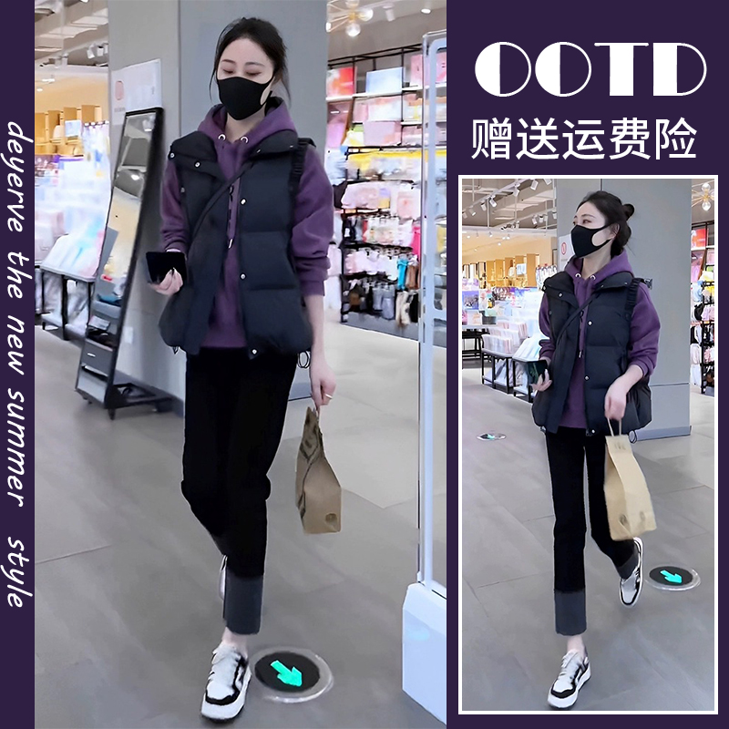 氣質名媛鹽系穿搭三件套加絨加厚連帽運動衫棉服小馬甲網紅炸街套裝