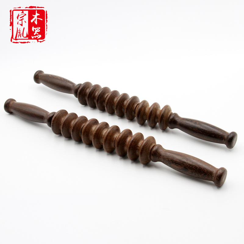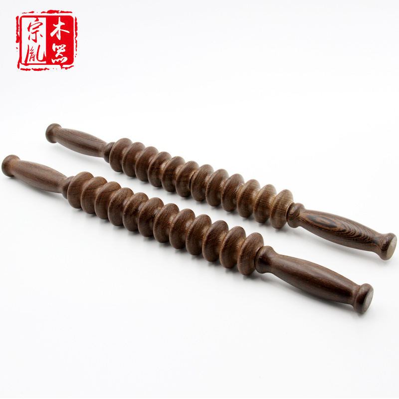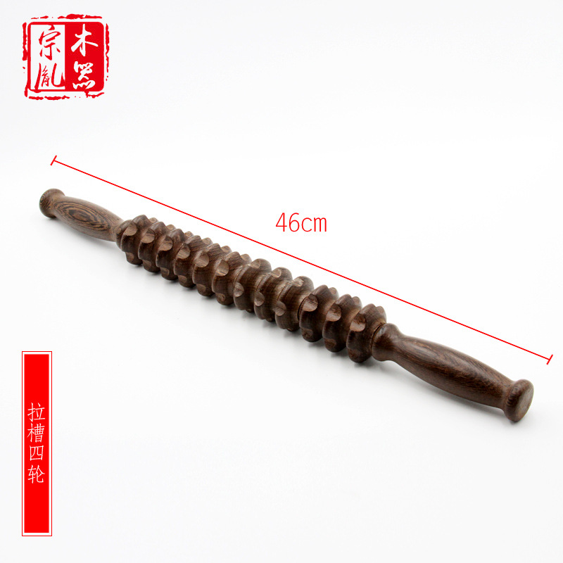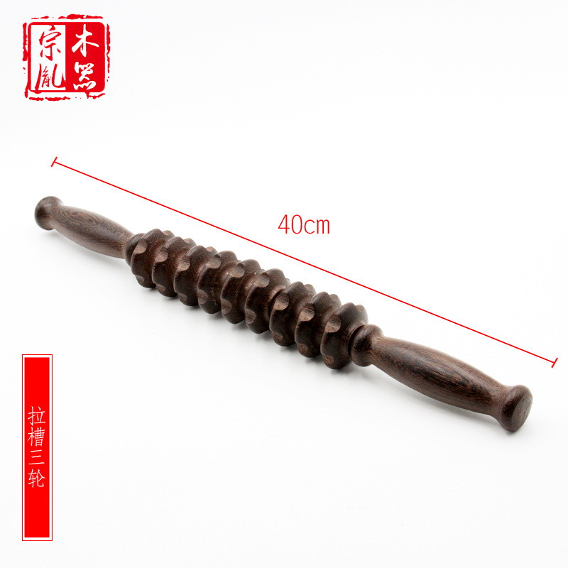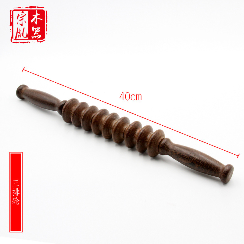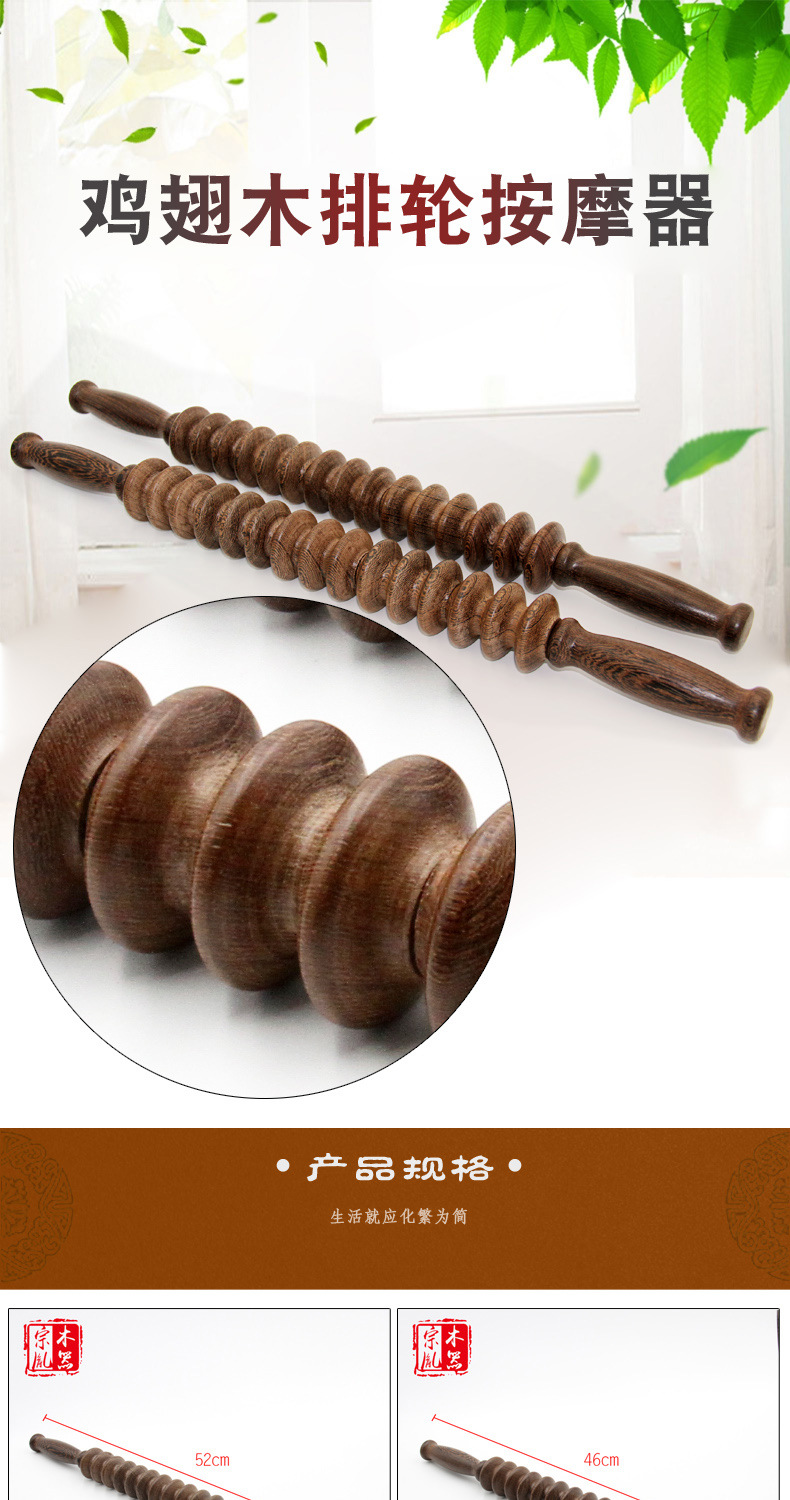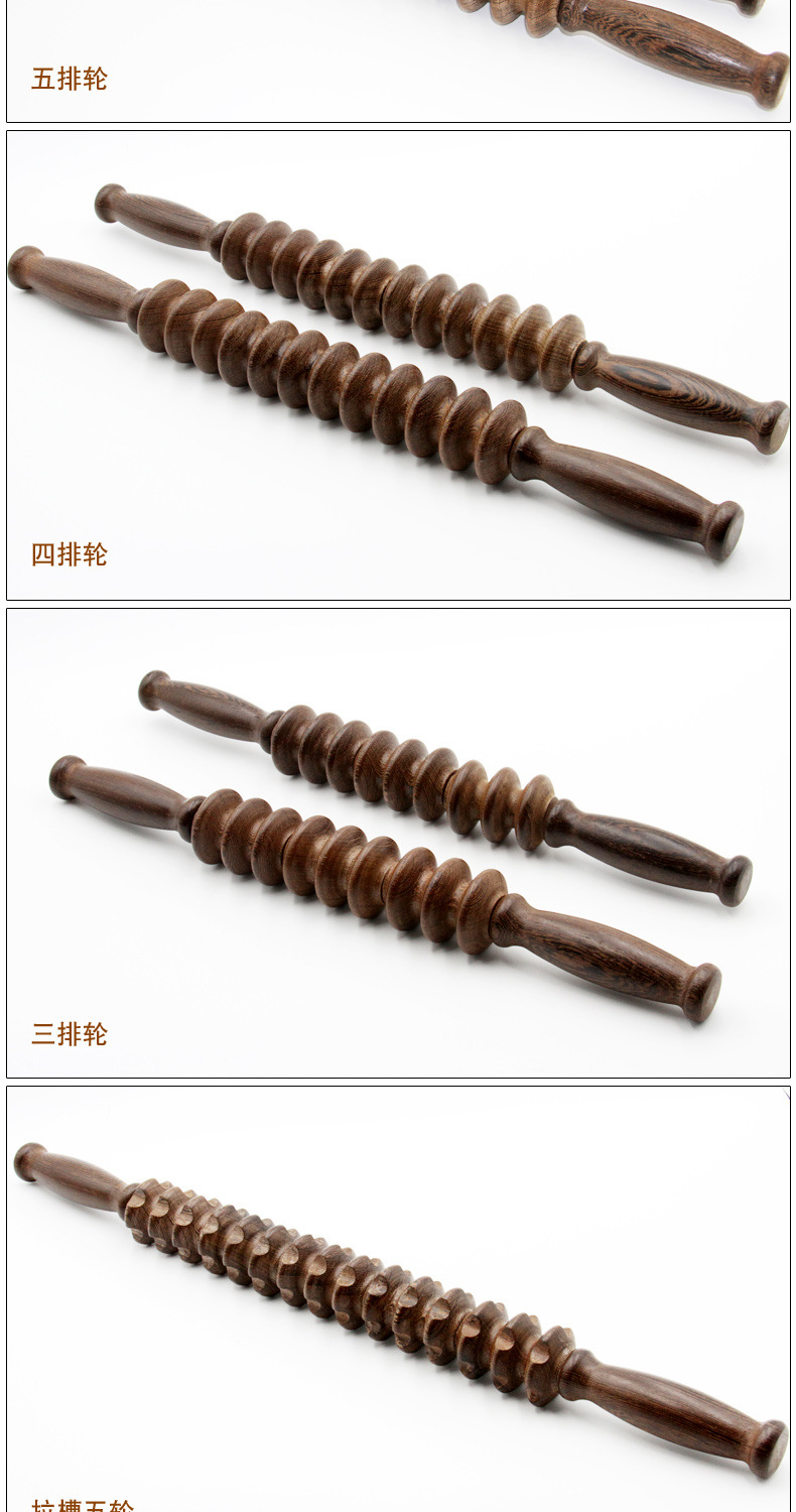 家用直三排四排五排凹槽鸡翅木推背滚轮按摩器 实木按摩器刮痧棒