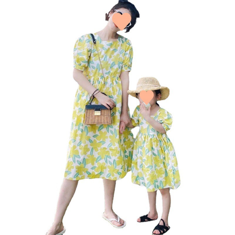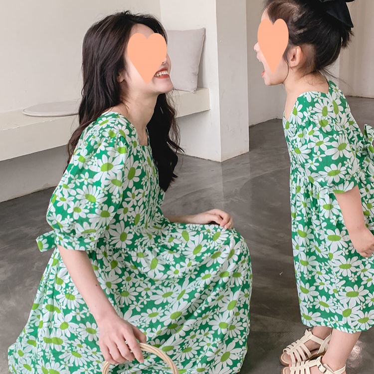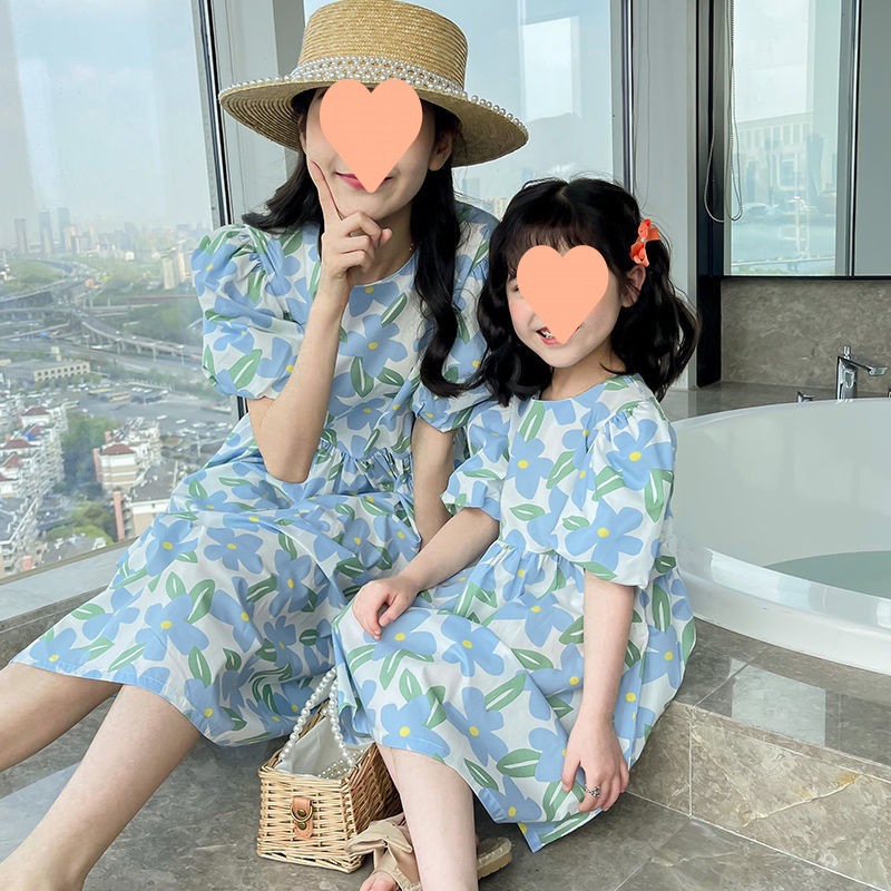 母女装夏季连衣裙亲子裙夏装女童新款洋气碎花裙宝宝亲子装中长裙