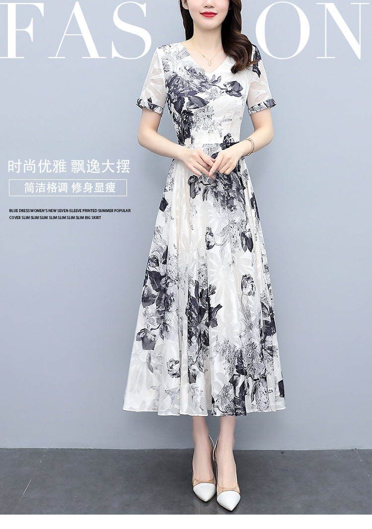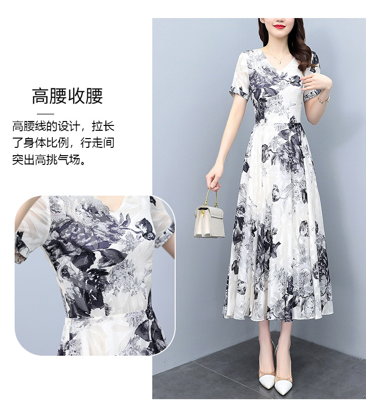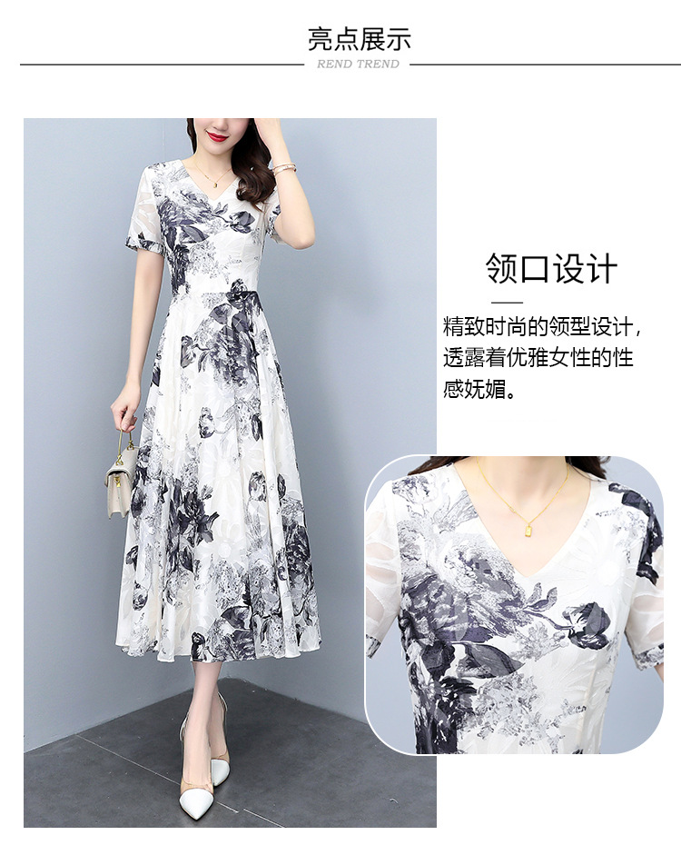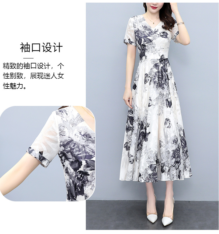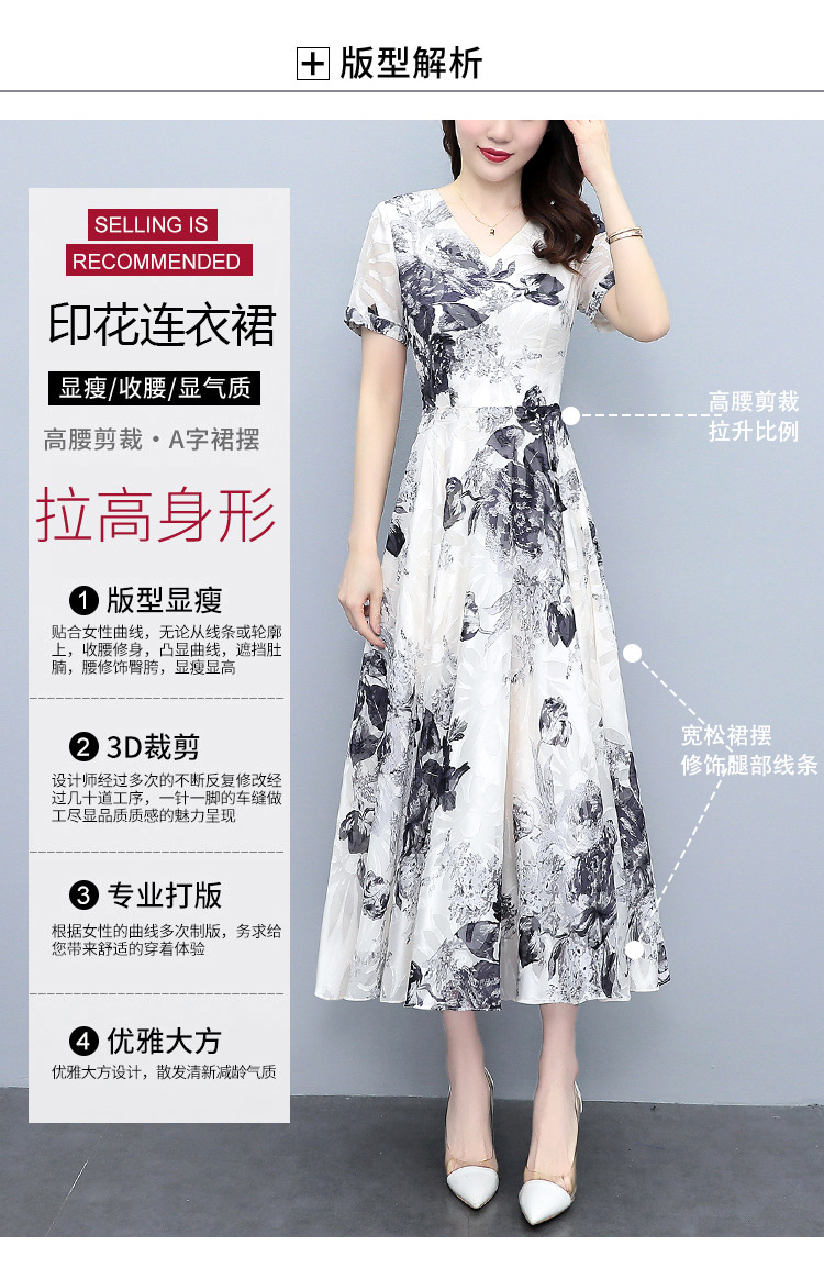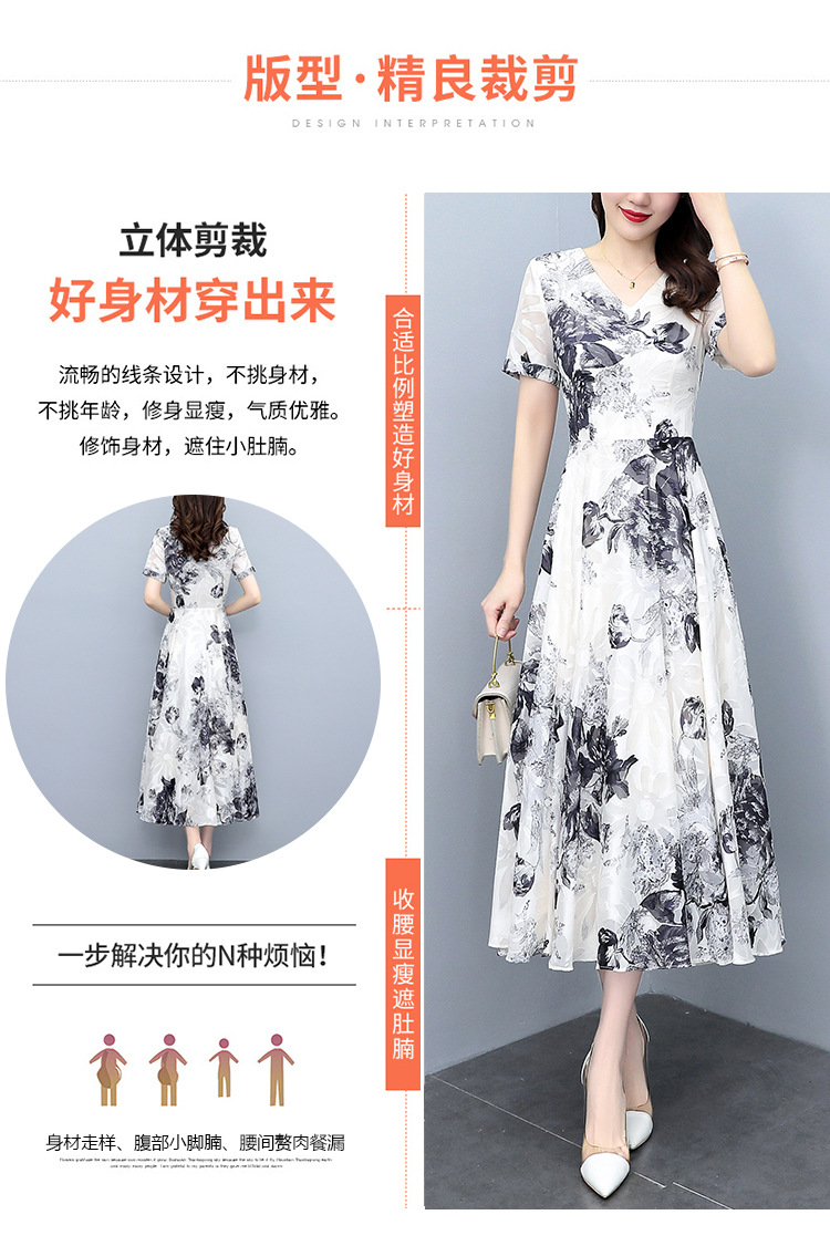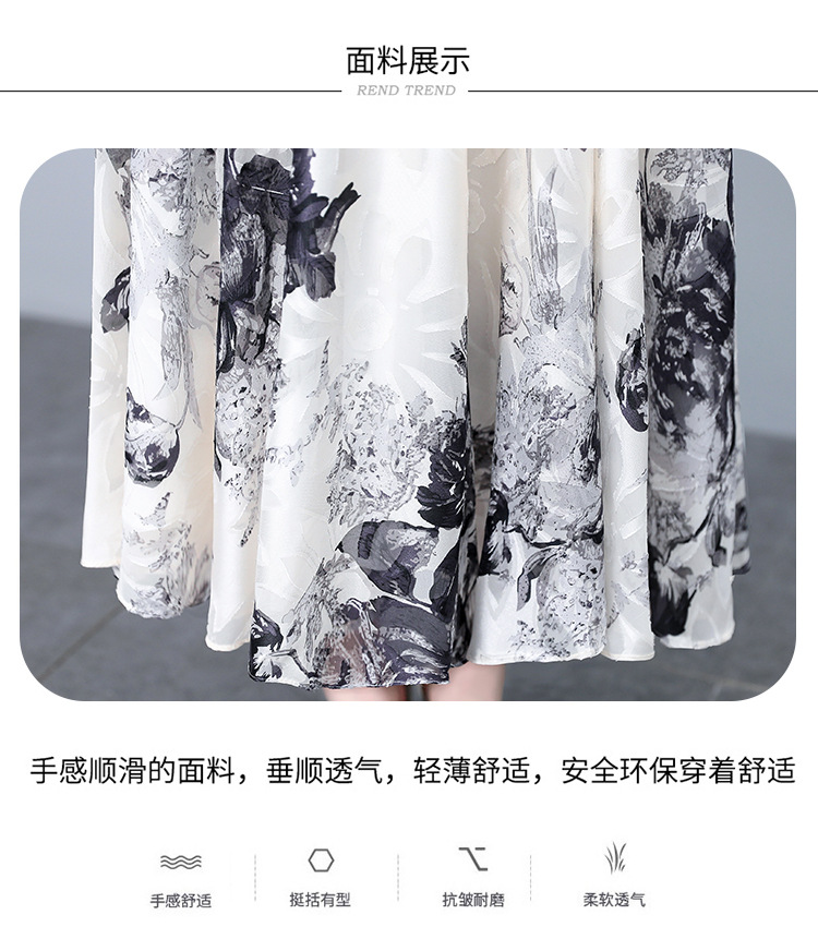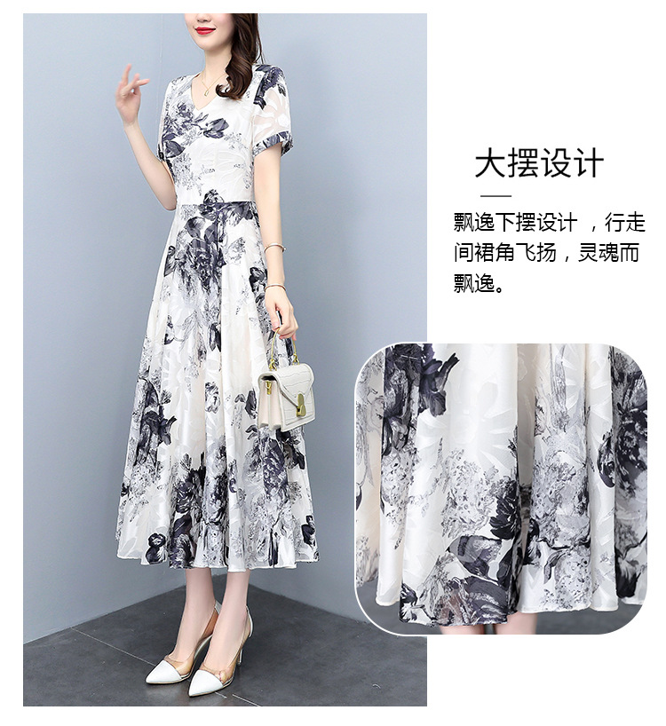 2023夏季新款剪花中国风水墨碎花连衣裙大码胖mm收腰显瘦遮肚长裙