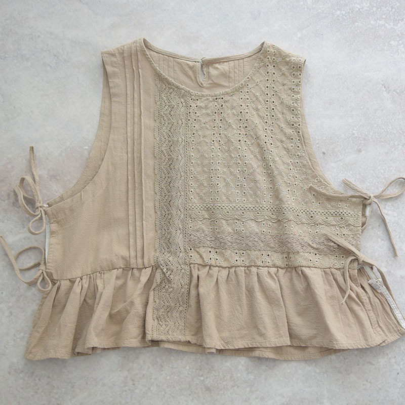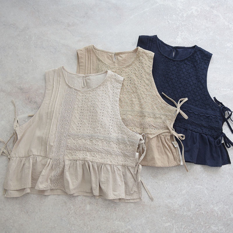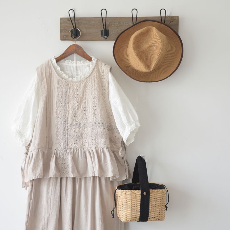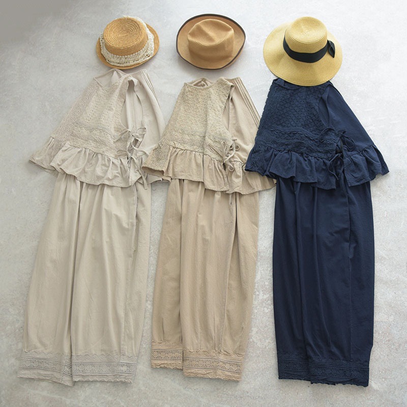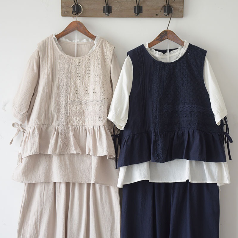 2022森系 娃娃衫 三色刺绣小马甲荷叶边七分裤套装