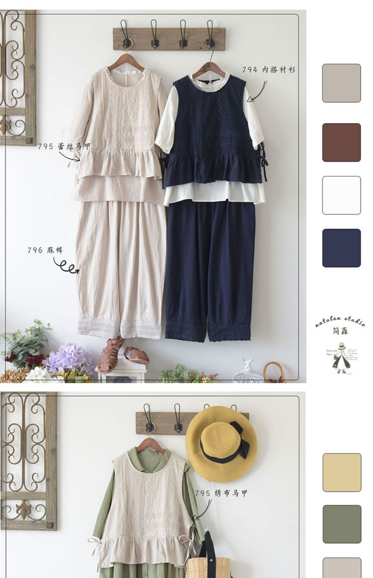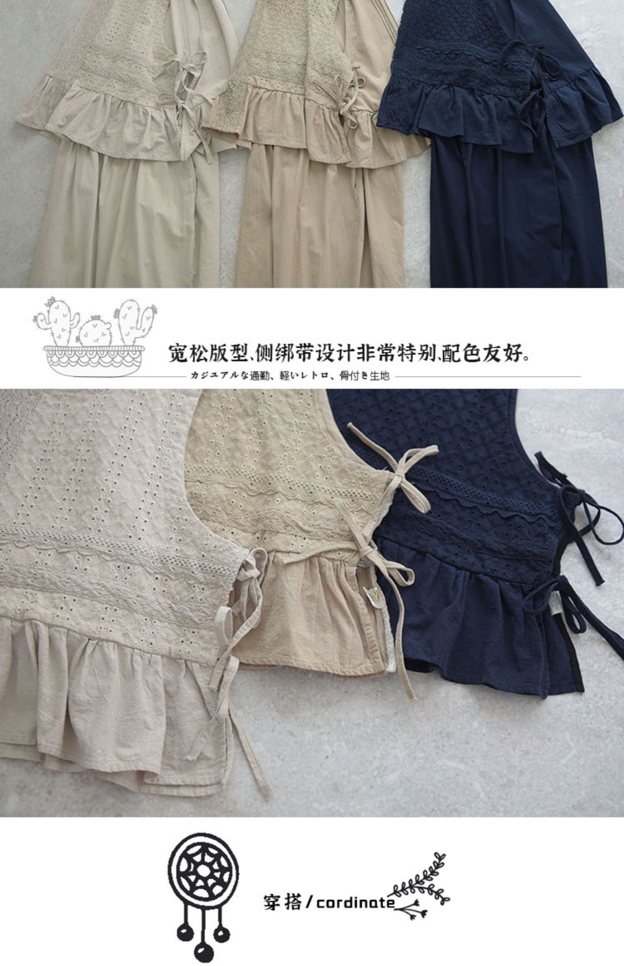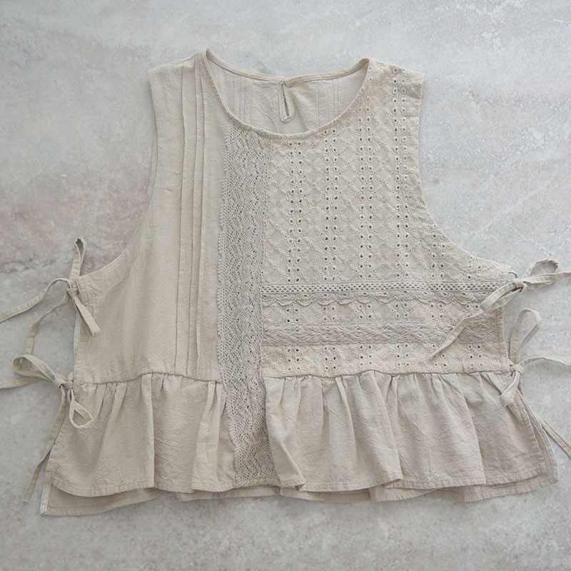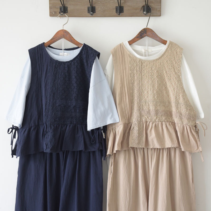 2022森系 娃娃衫 三色刺绣小马甲荷叶边七分裤套装