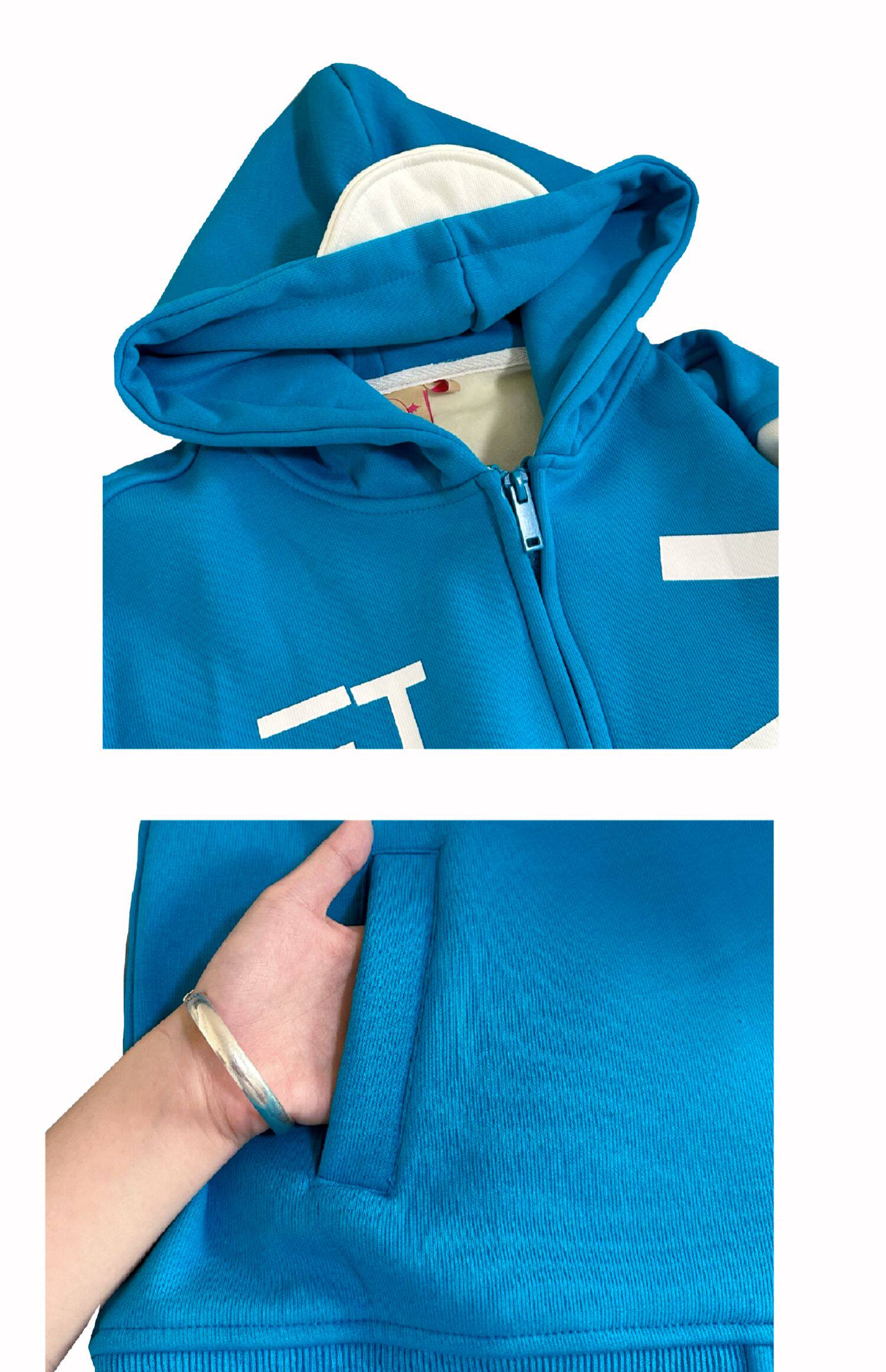 空氣列車 可回收2.0複合加絨面料連帽運動衫拉鍊外套秋冬亞萌感女