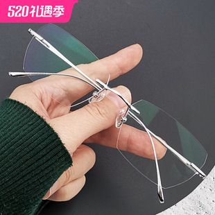 超轻纯钛无边框眼睛框网上可配近视镜片眼镜男无框防蓝光变色镜女