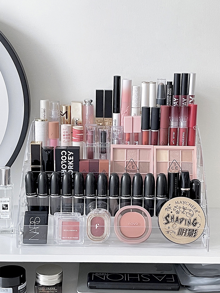 化妆品置物架梳妆台大容量口红眼影腮红收纳架亚克力多层展示架子