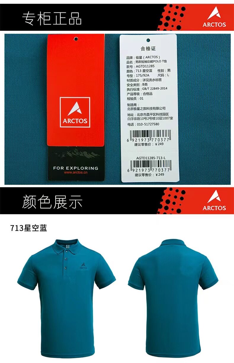 斷碼特價ARCTOS極星戶外男女款POLO衫輕薄登山徒步快乾T恤短袖衫