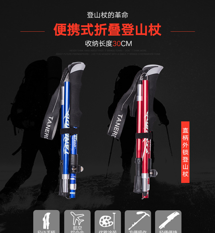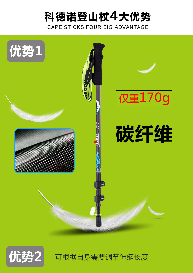 超輕登山杖摺疊伸縮手杖女徒步爬山裝備短碳纖維碳素戶外柺杖棍男