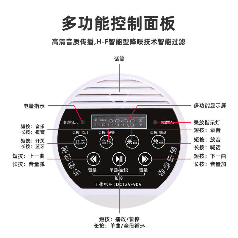功能 喊话器12-24V车载扩音器录音大功率宣传小喇叭