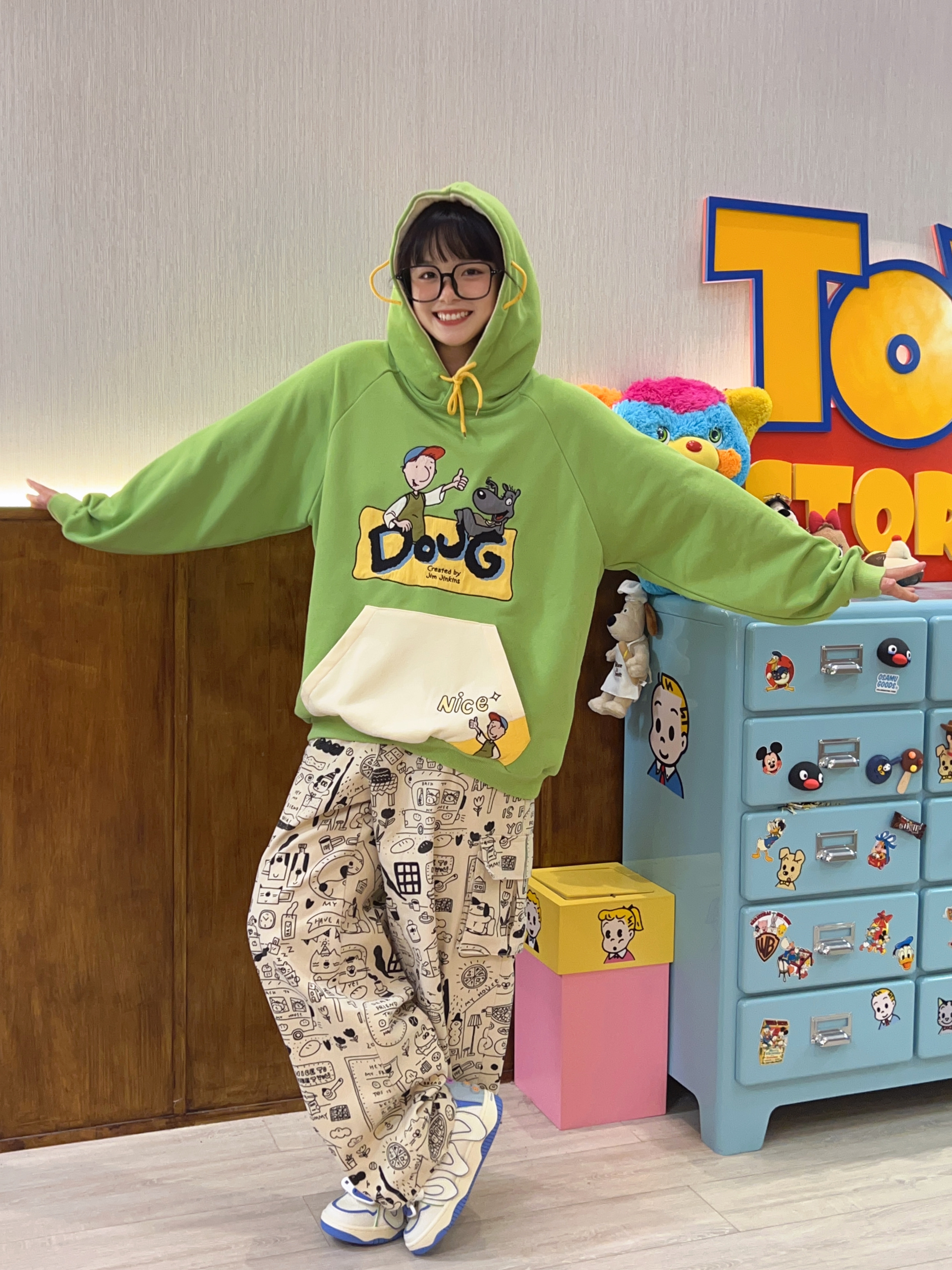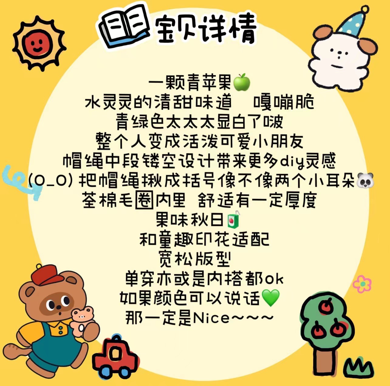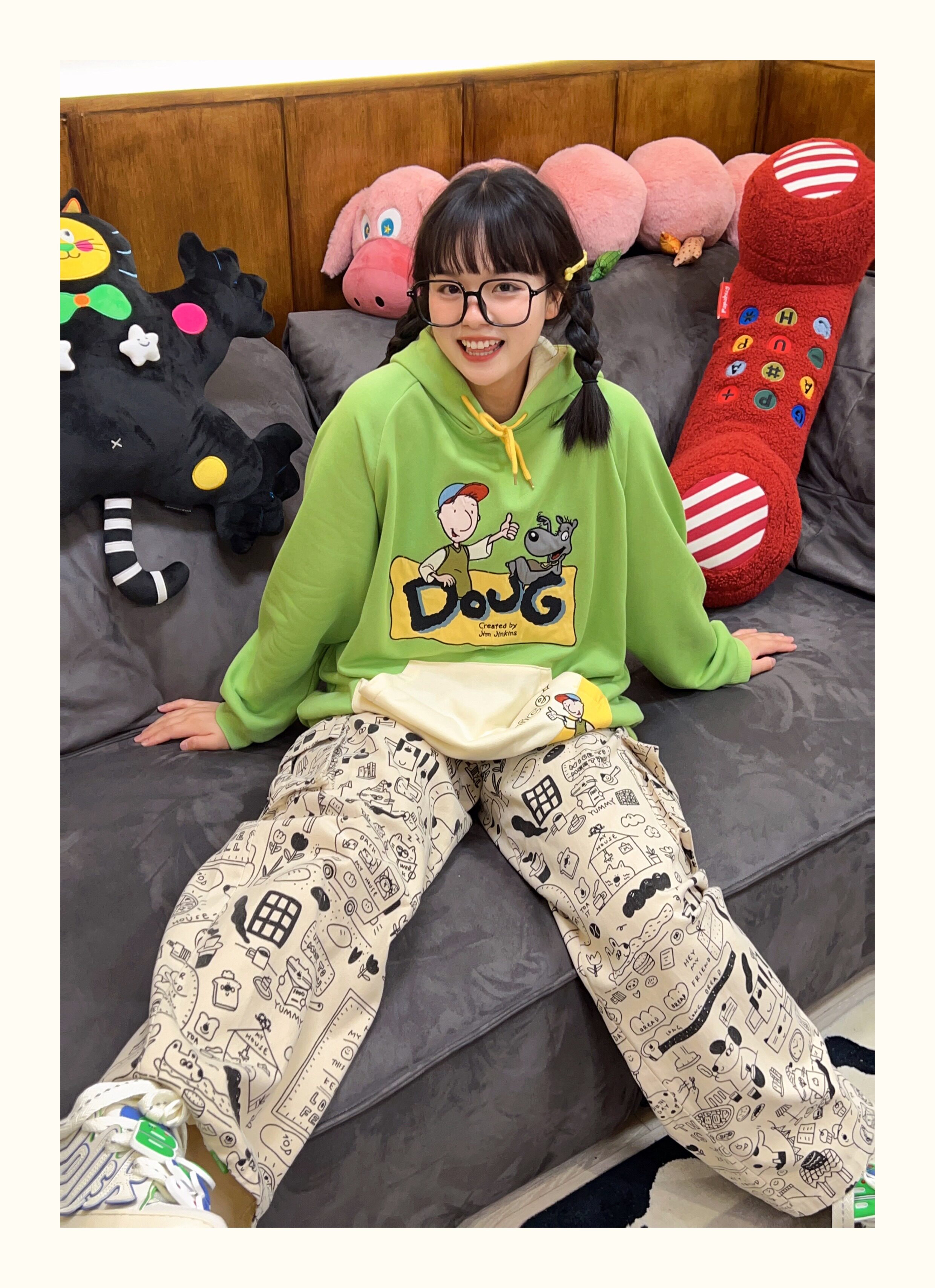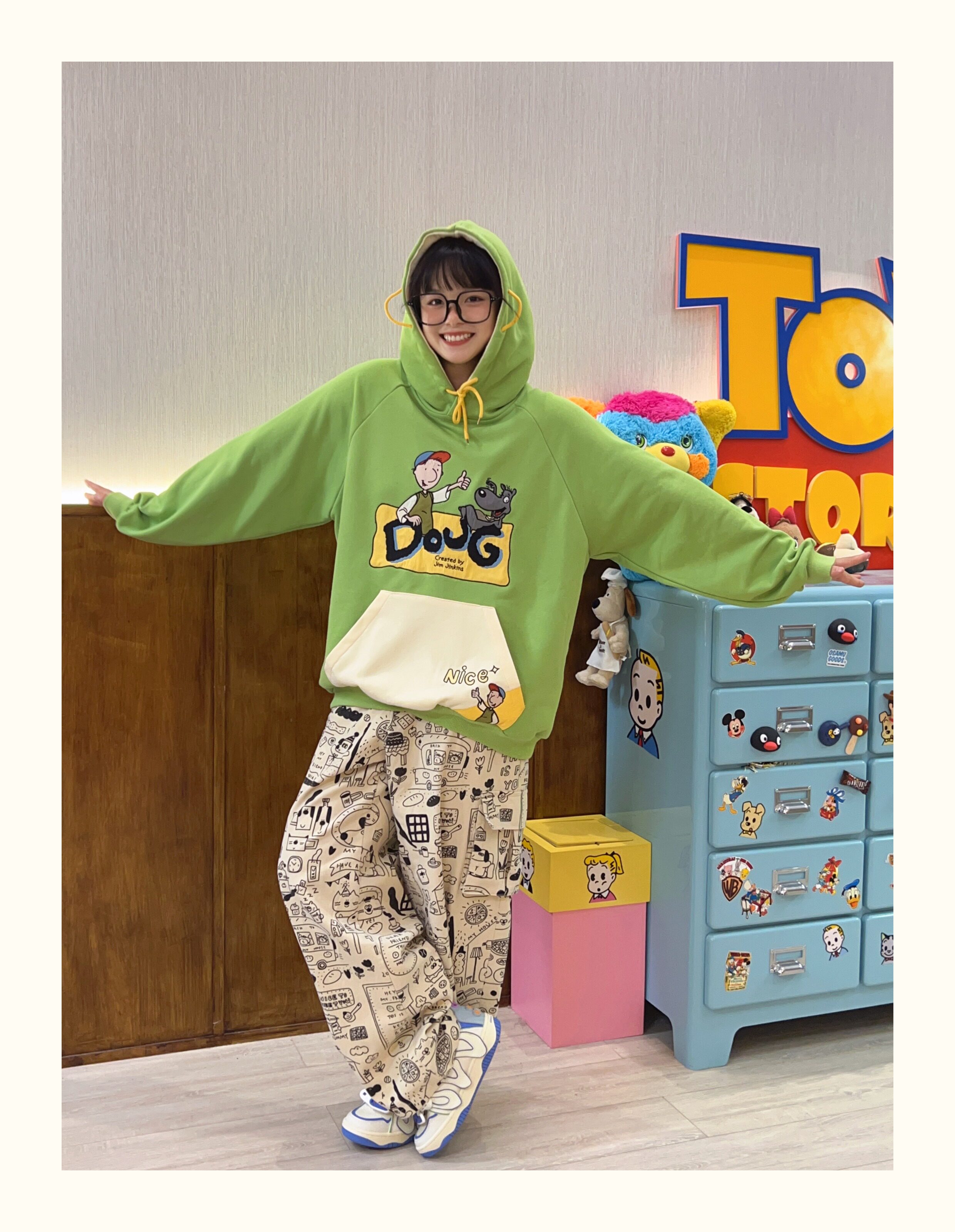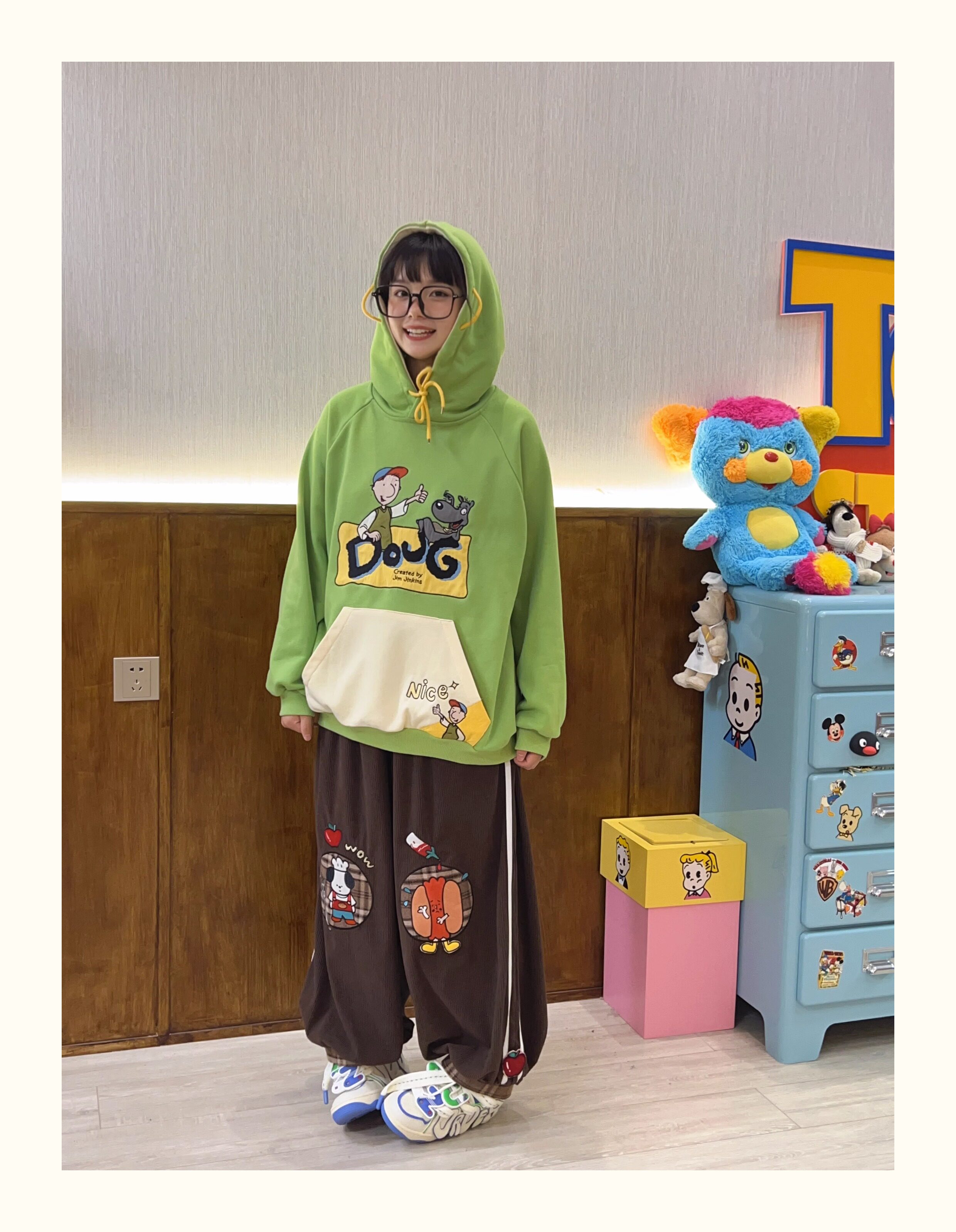 Robootoo小眾設計果綠色卡通印花可愛減齡套頭全棉衛衣帽衫2023秋