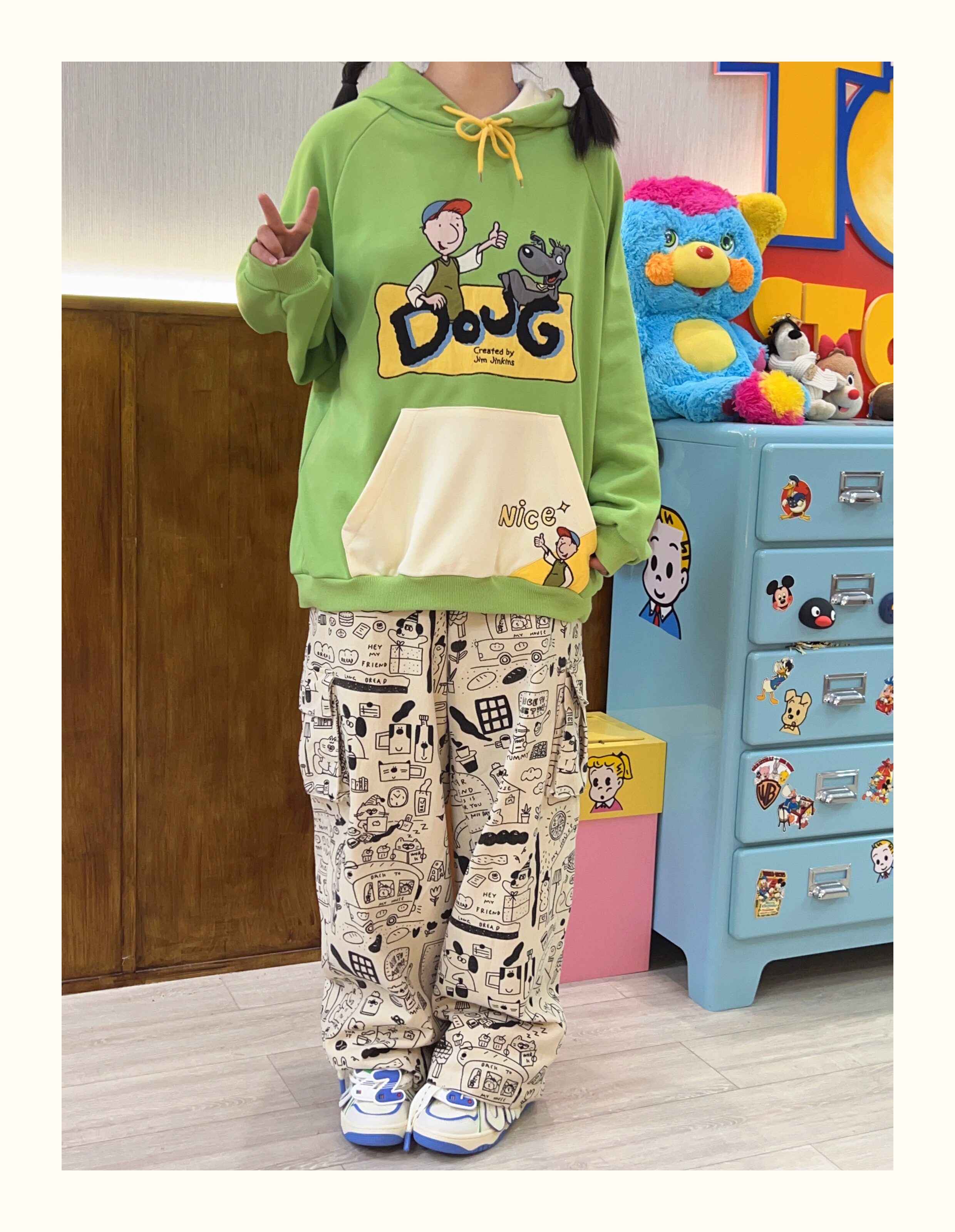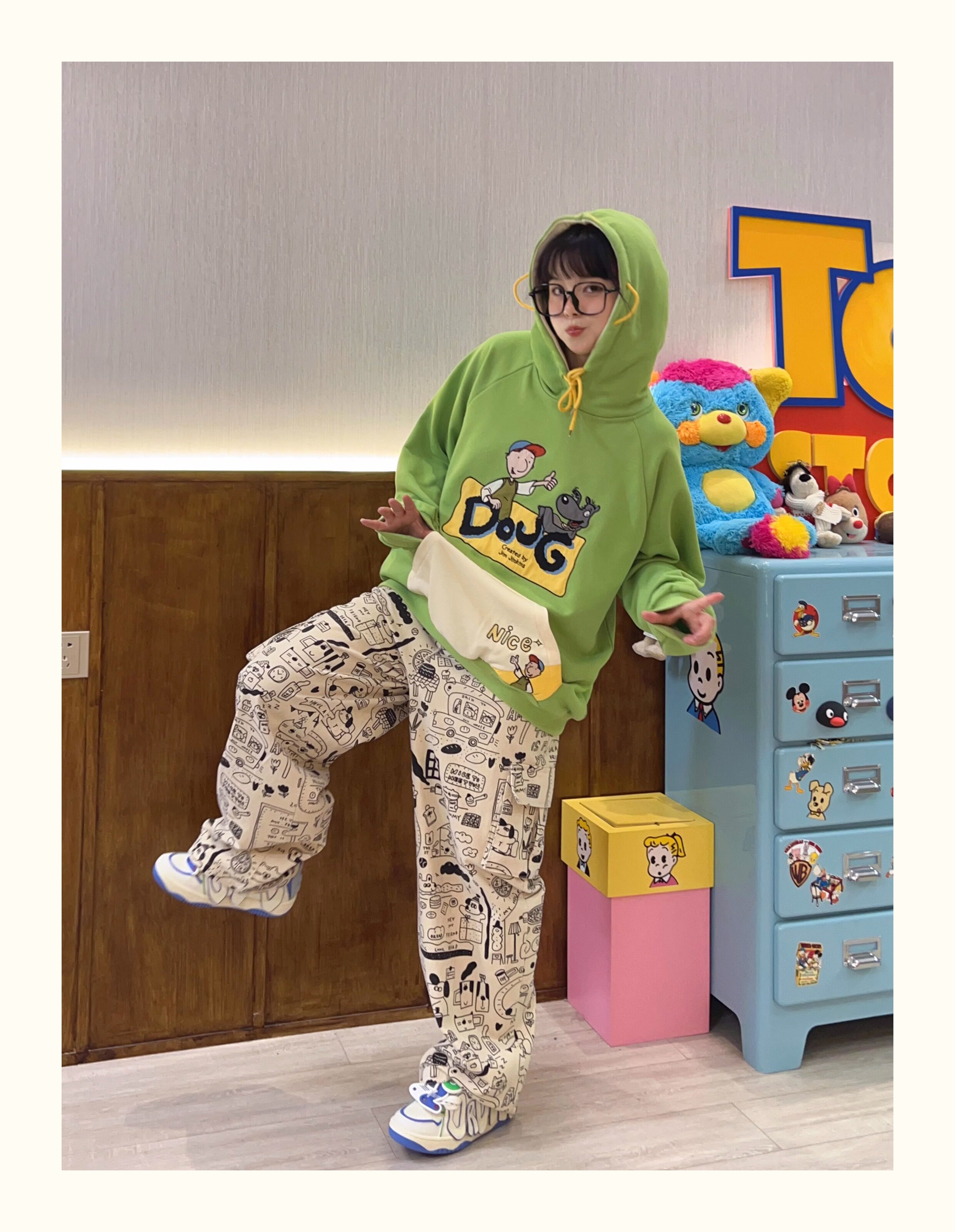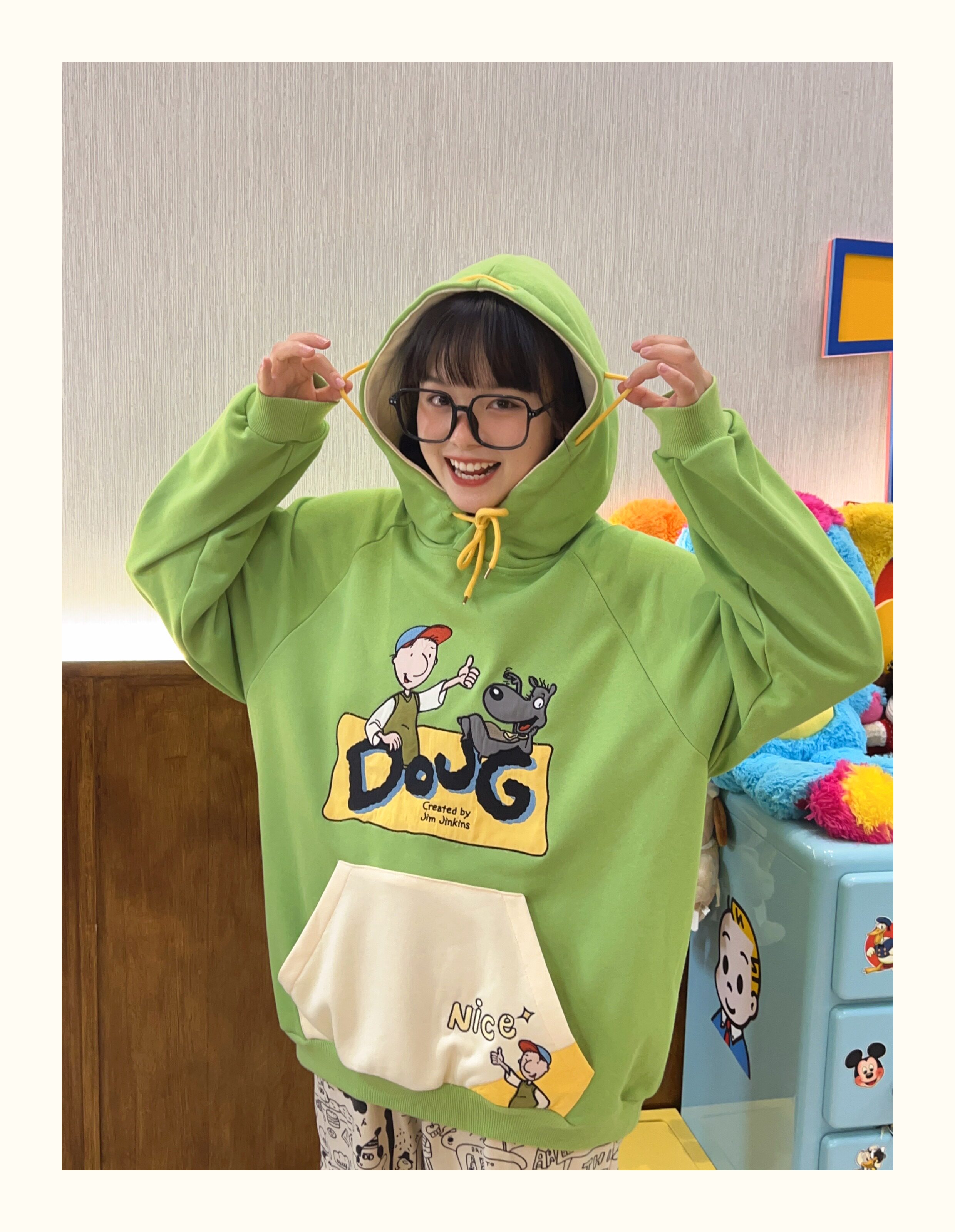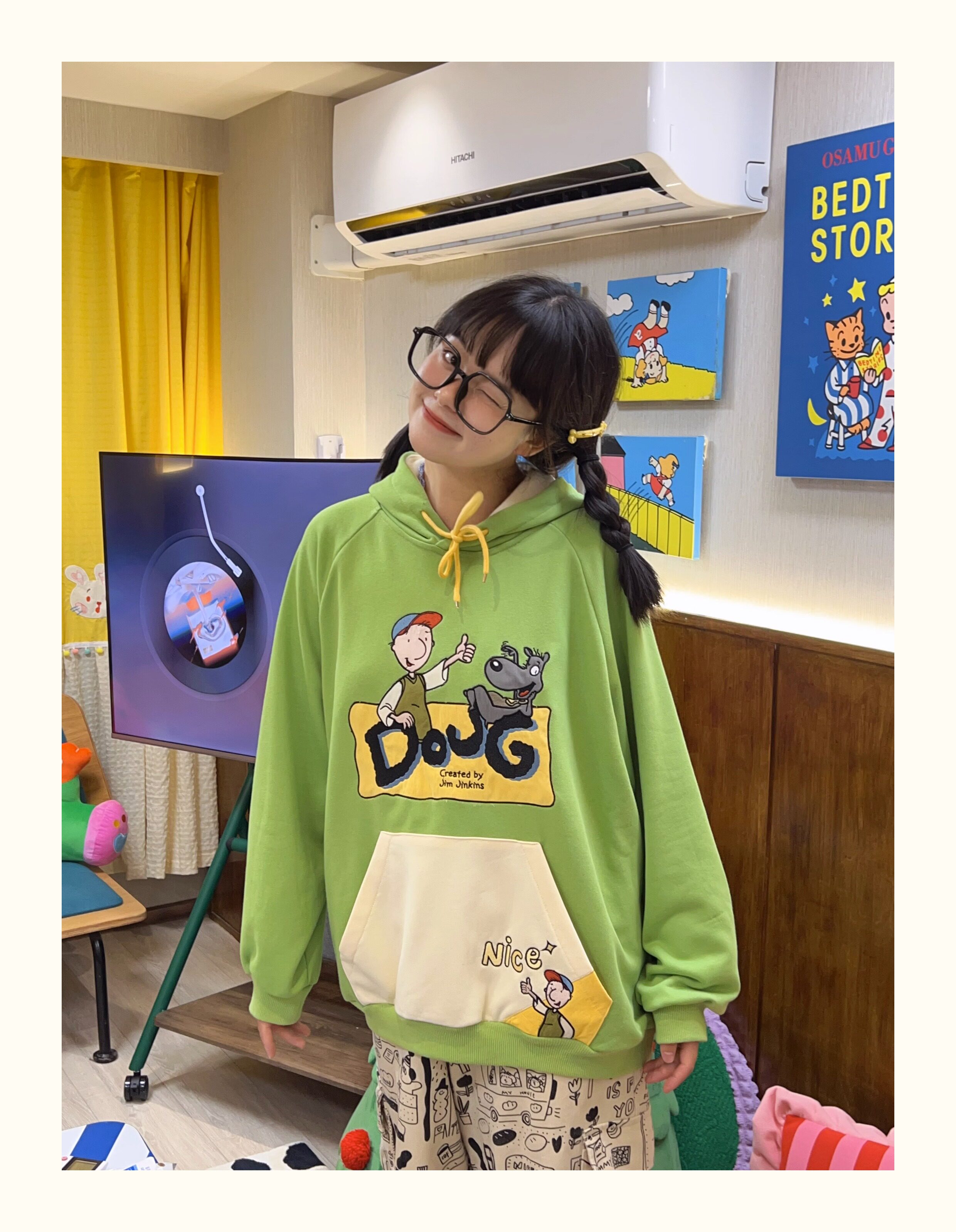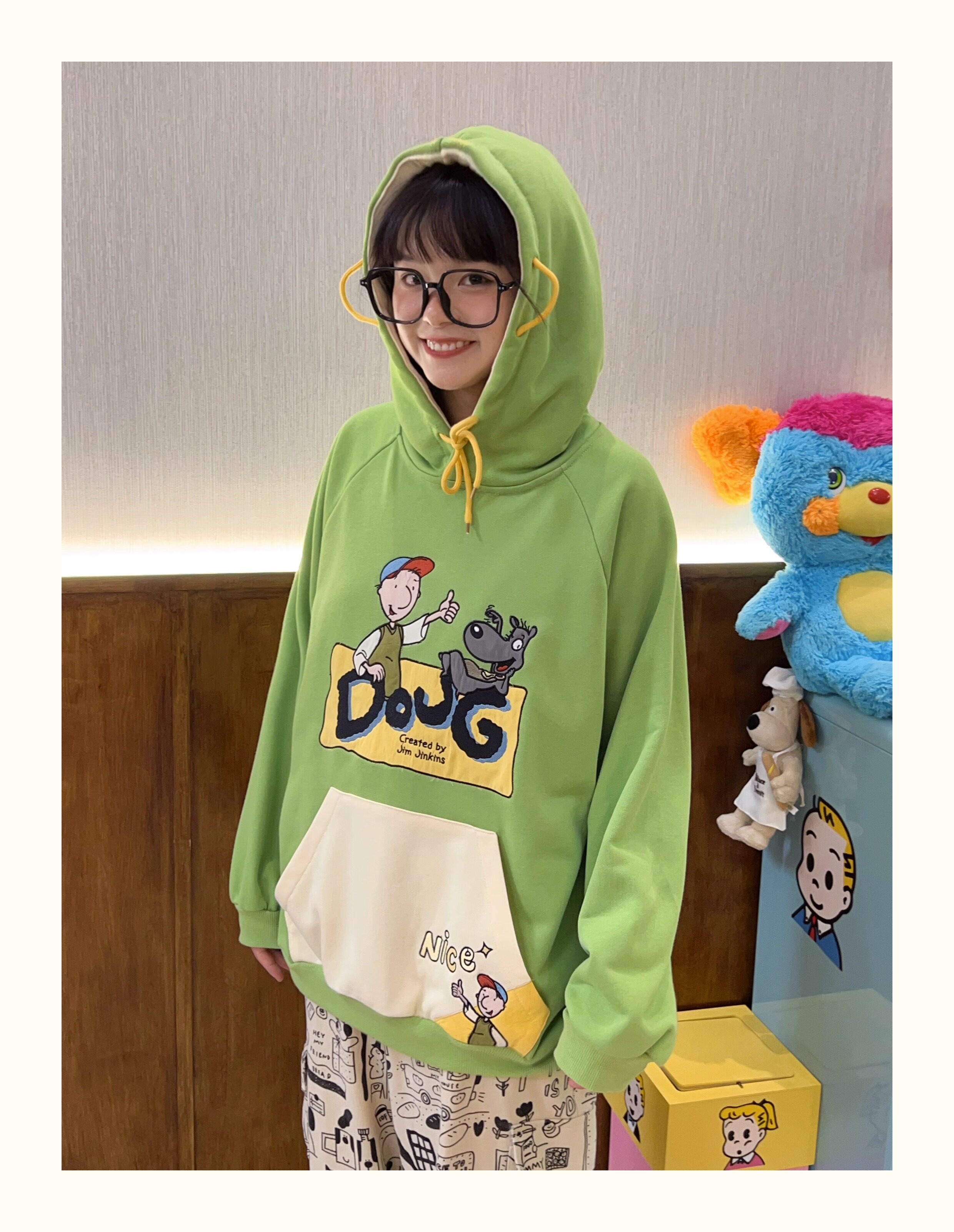 Robootoo小眾設計果綠色卡通印花可愛減齡套頭全棉衛衣帽衫2023秋