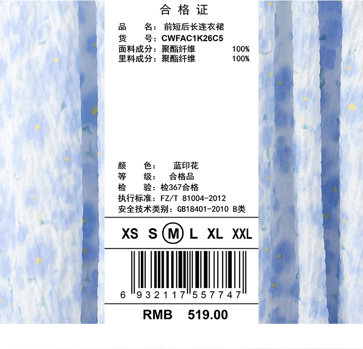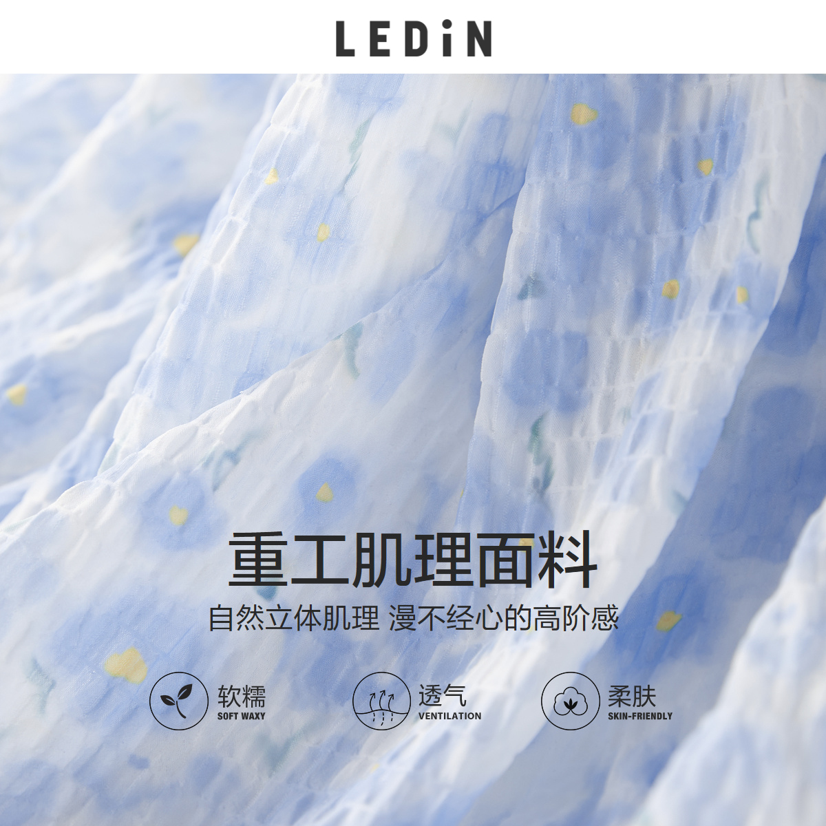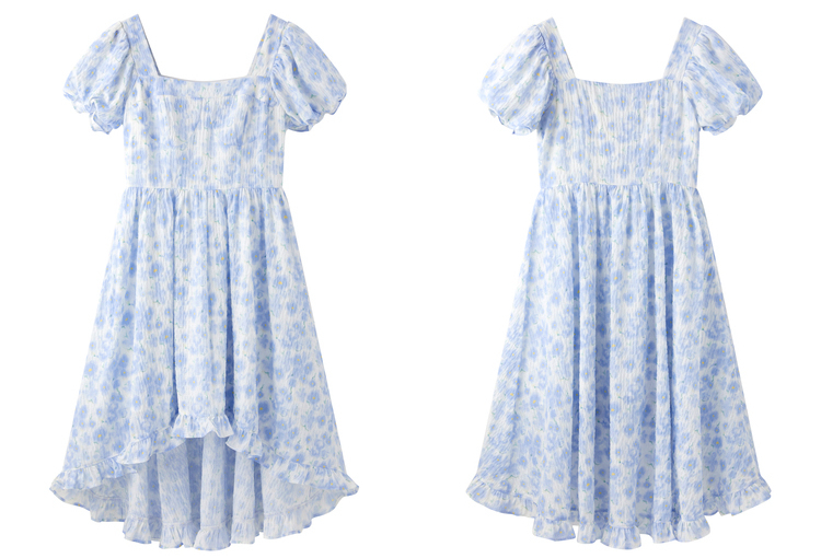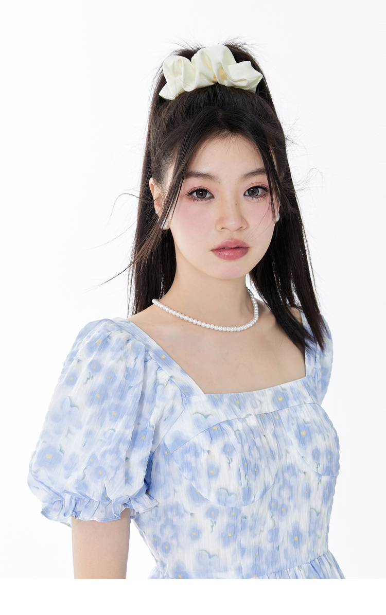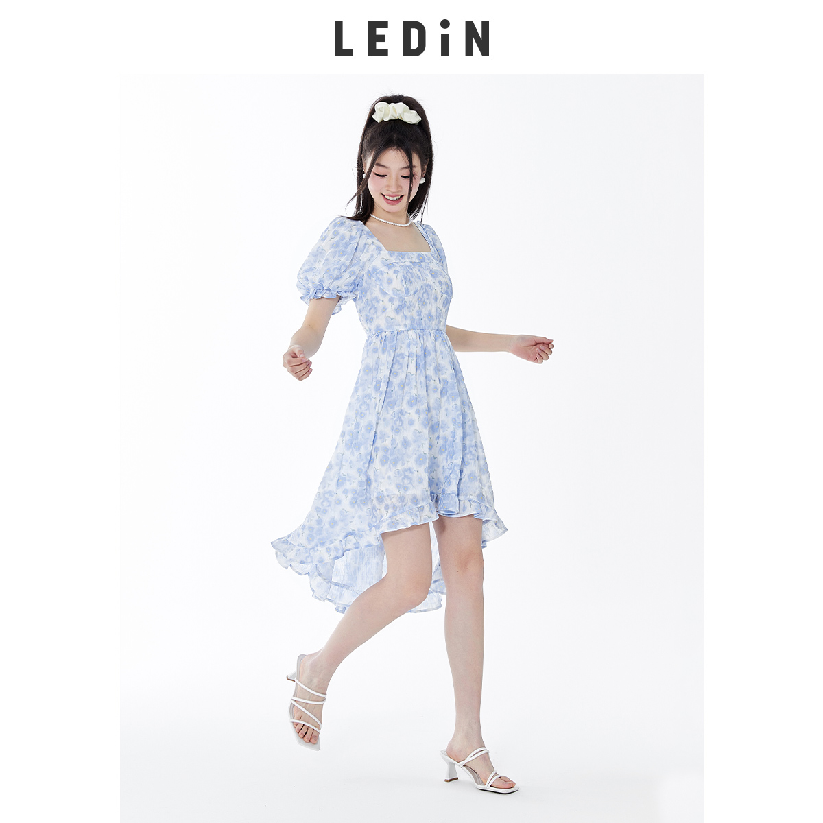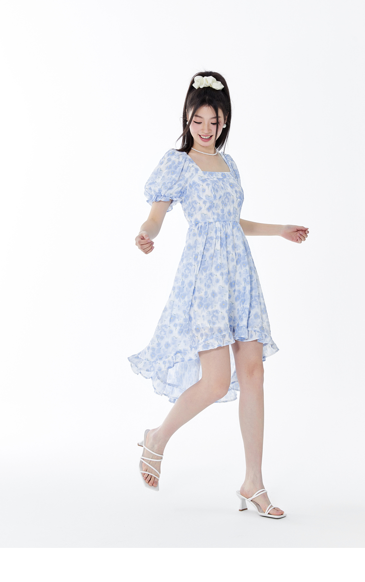 樂町海島來信洋裝2023夏季女裝初春雪紡法式長裙藍色碎花裙子