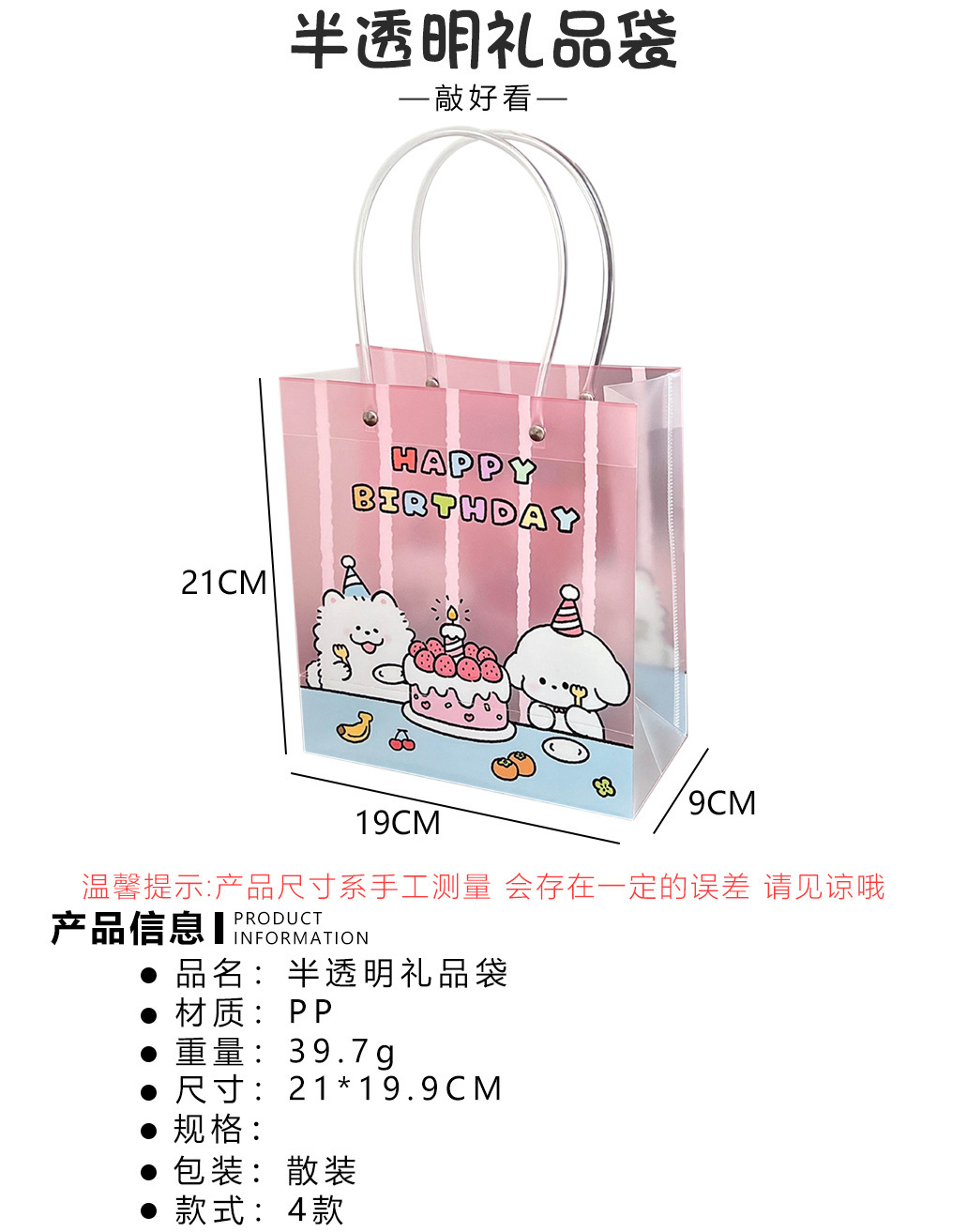 SH587ins卡通韩版女孩袋子手提购物袋糖果色包装袋礼品礼物袋收纳