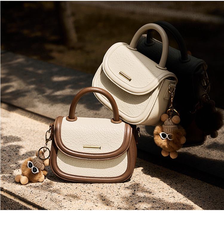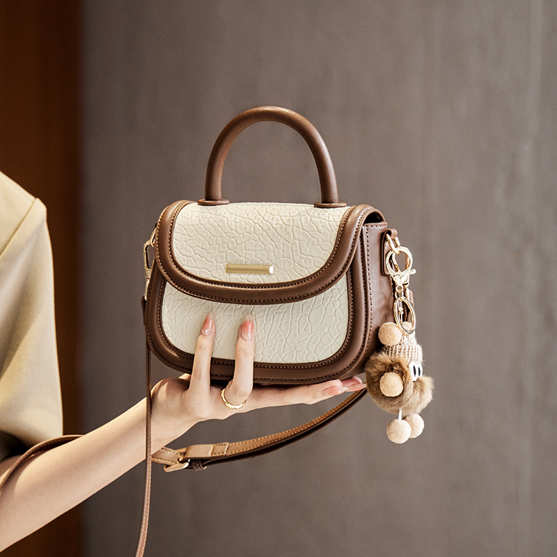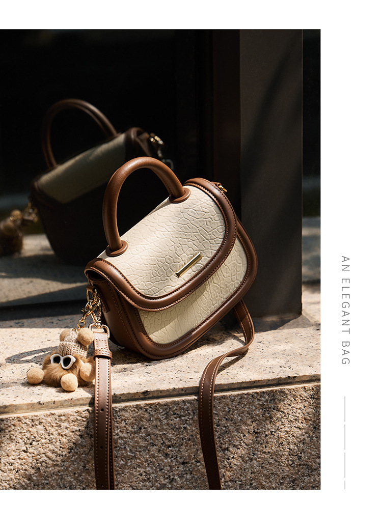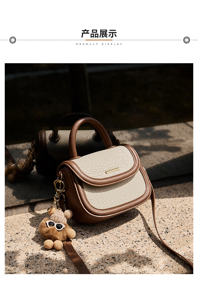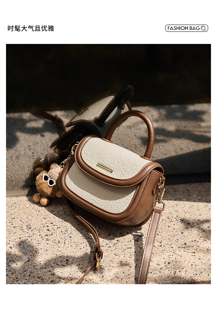 小包包2024新款秋冬手提包女百搭斜挎包撞色马鞍包真皮女包