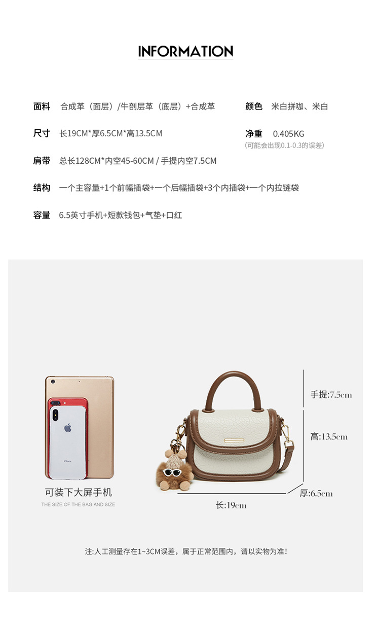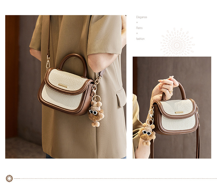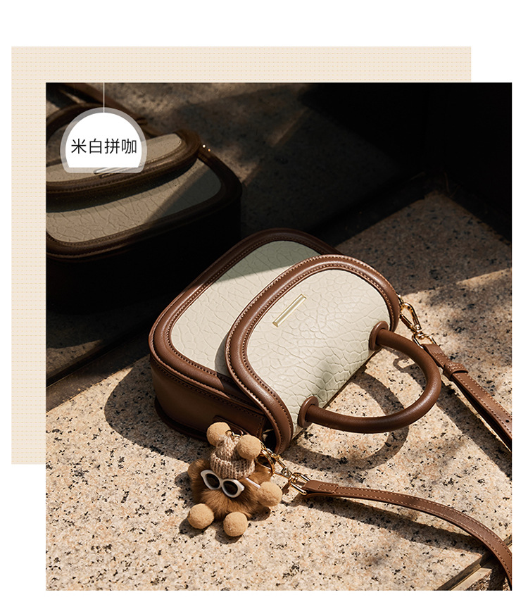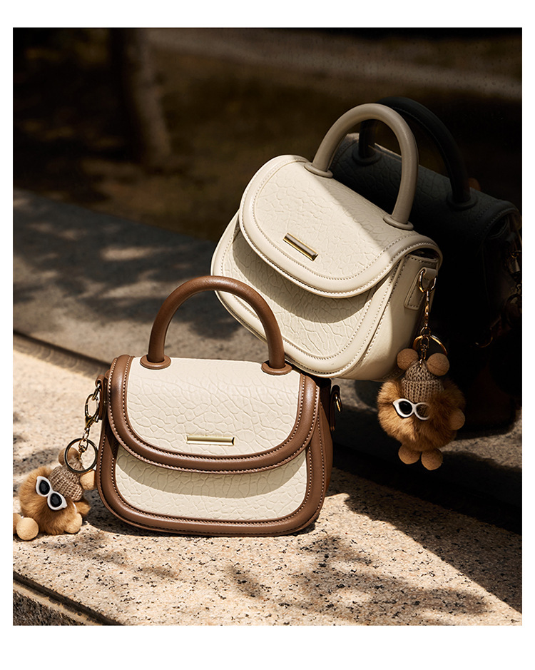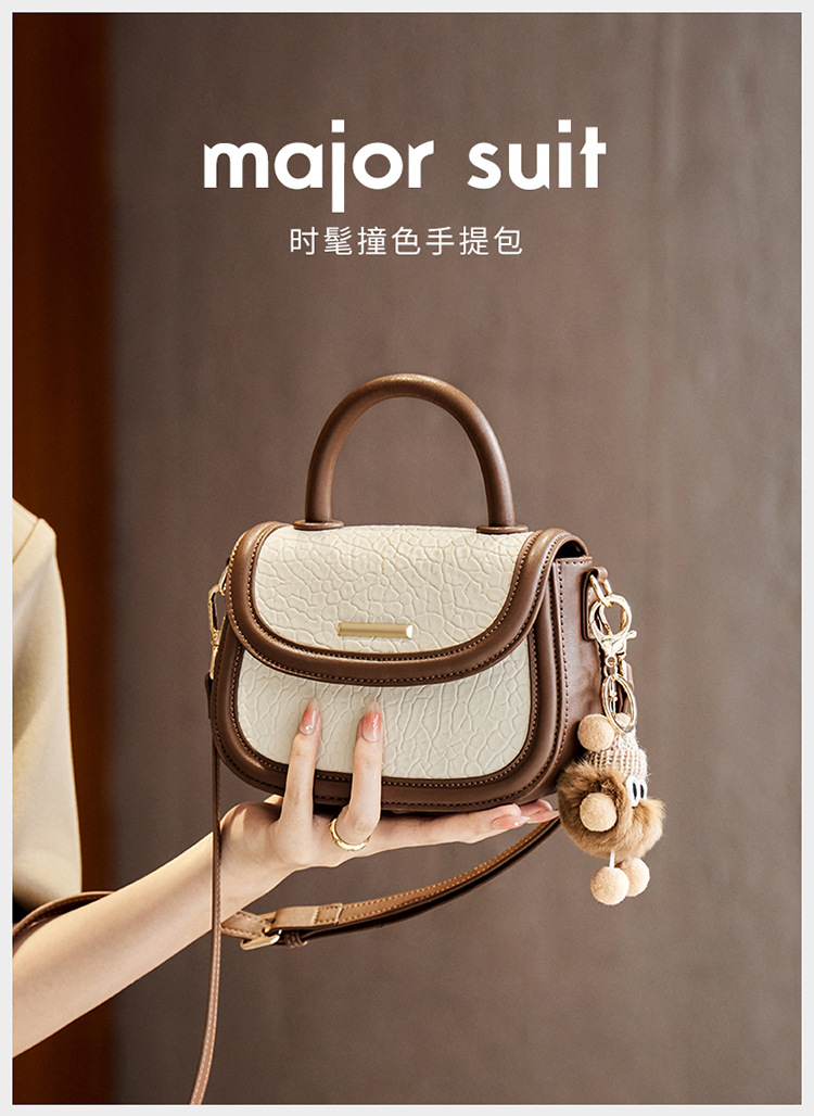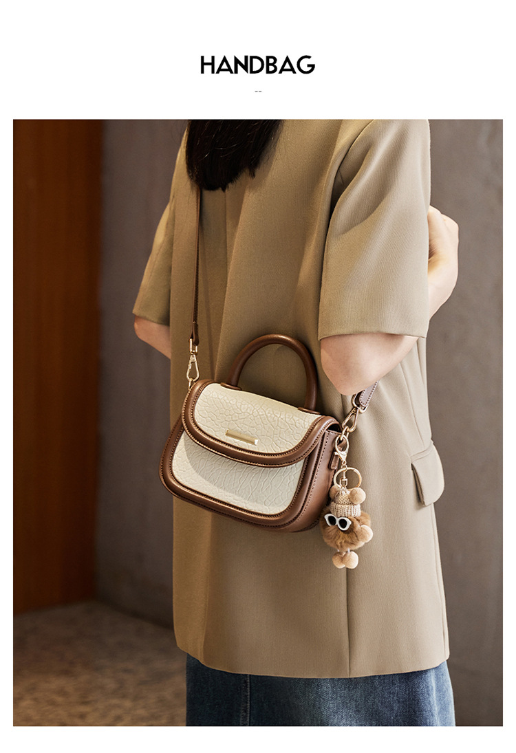 小包包2024新款秋冬手提包女百搭斜挎包撞色马鞍包真皮女包