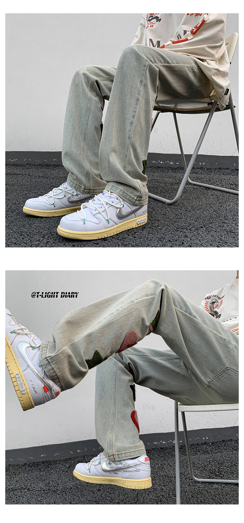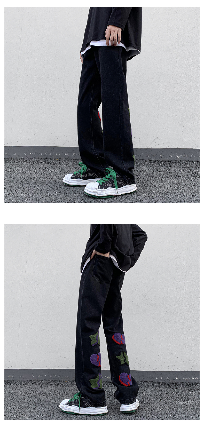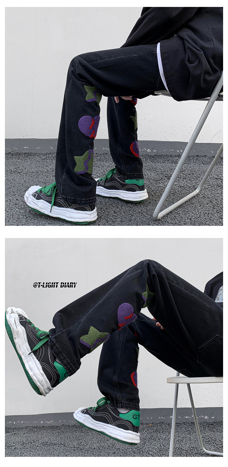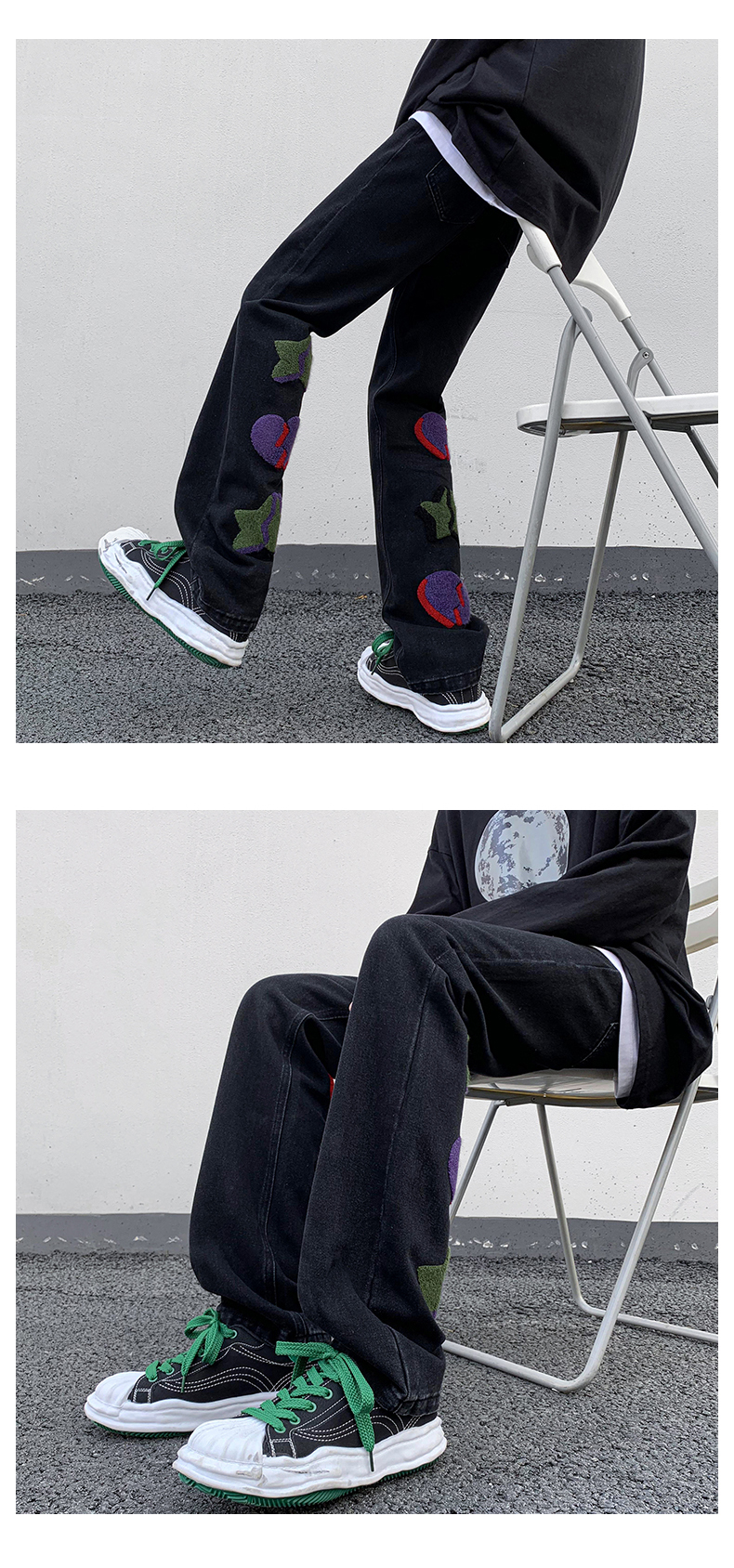 vibe歐美hiphop褲子高街ins潮男美式小眾情侶款毛巾繡直筒牛仔褲