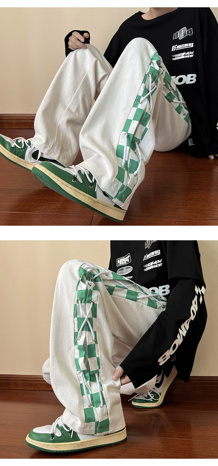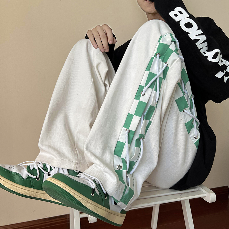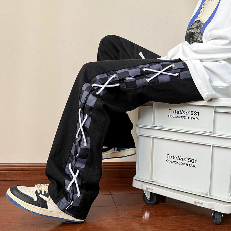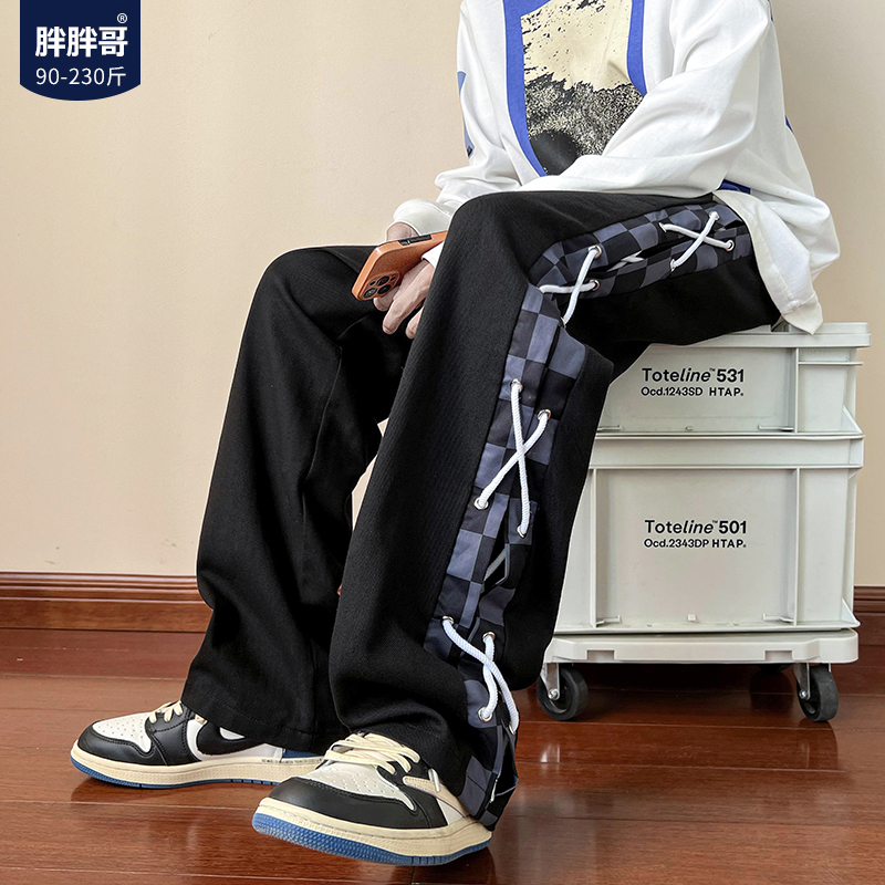 高街美式休閒褲男款夏季設計感加肥加大碼胖子寬鬆運動長褲子潮牌
