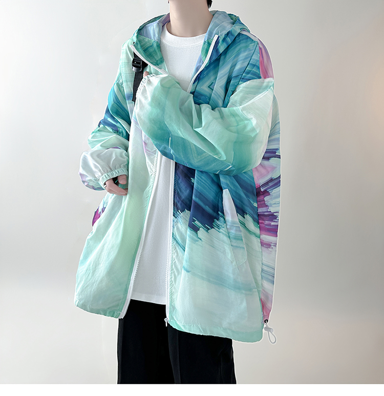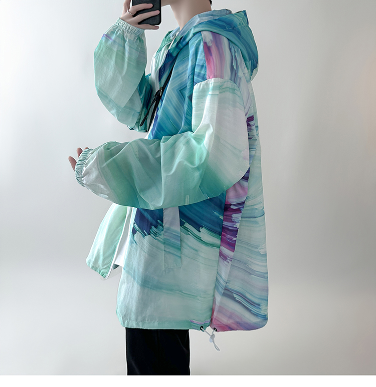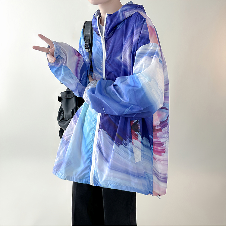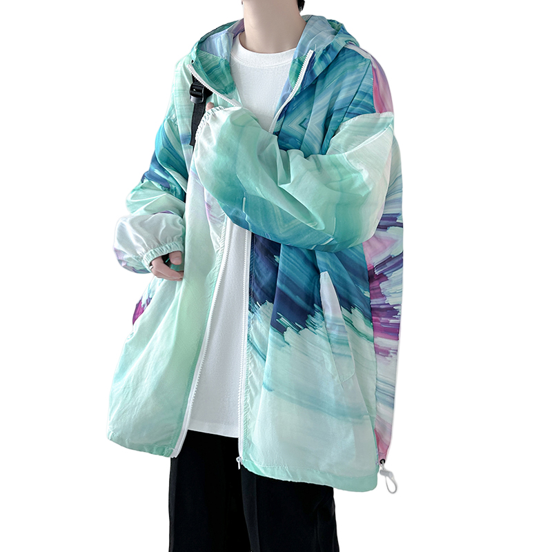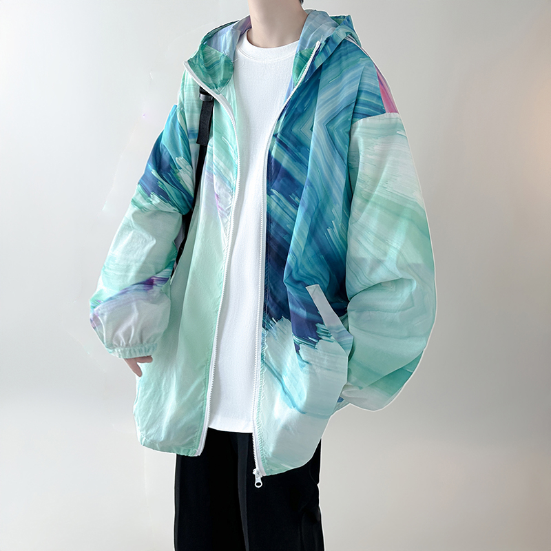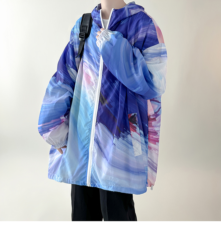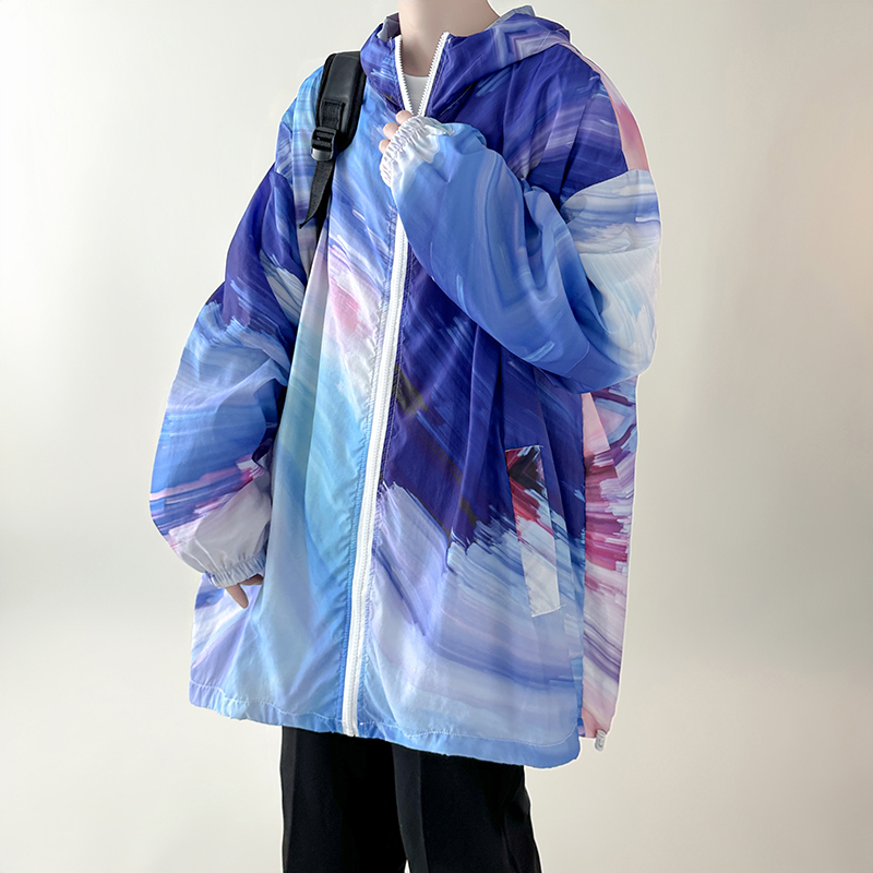國潮漸層色防曬衣男夏季薄款冰絲透氣小眾設計感潮牌抗UV外套