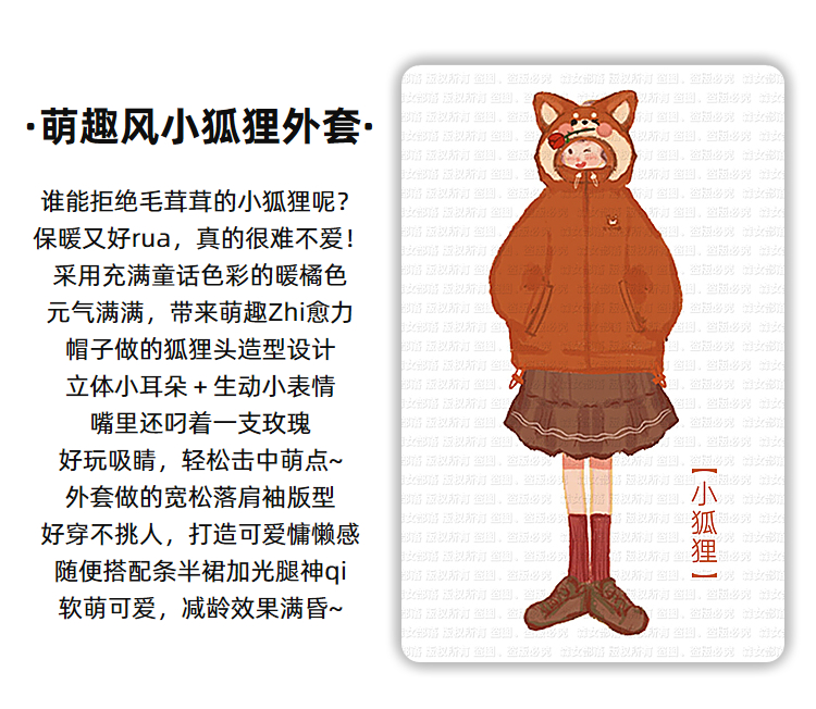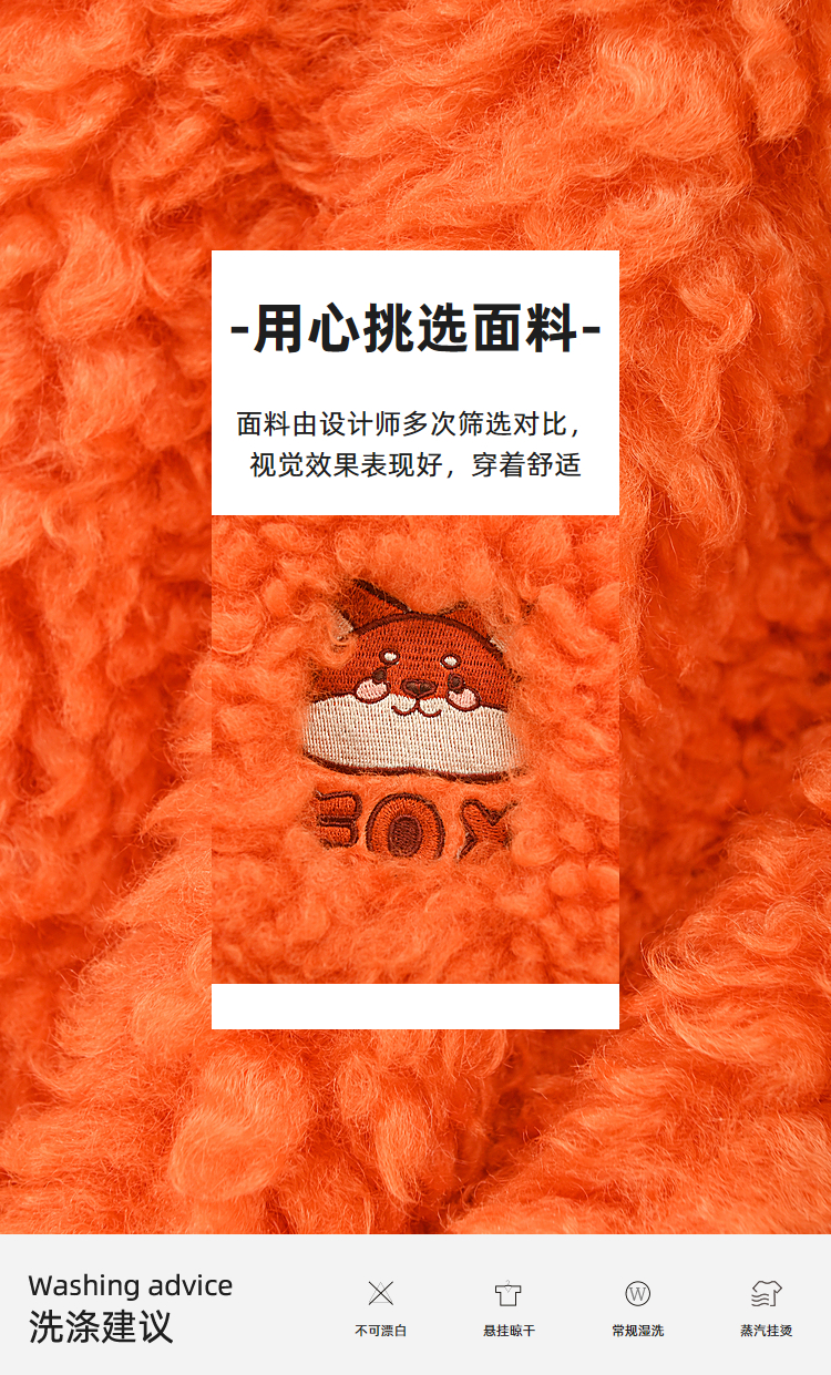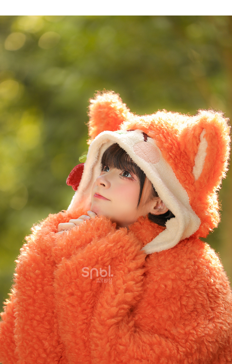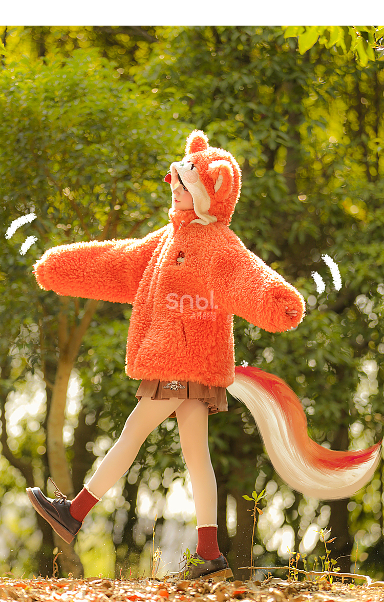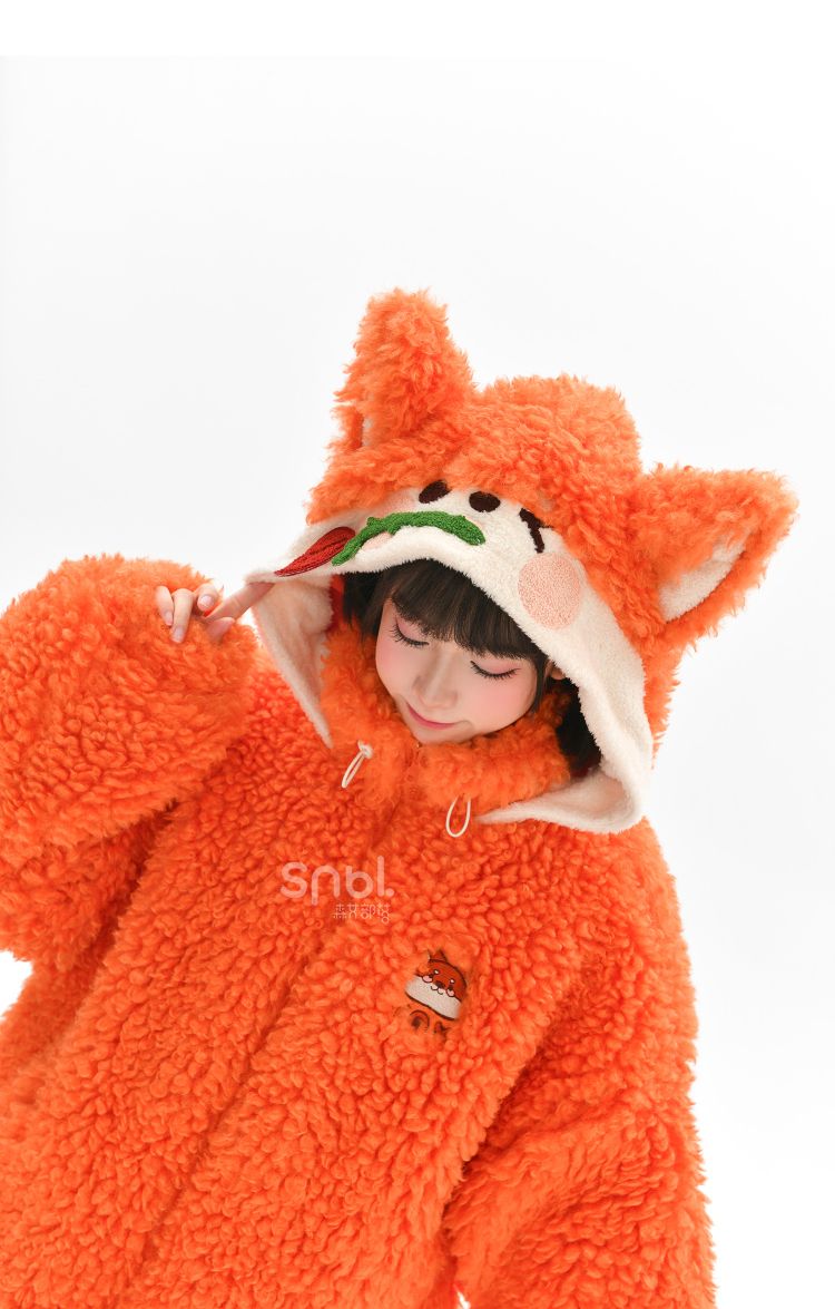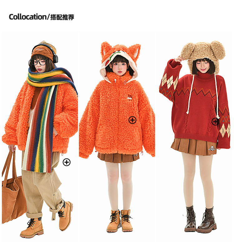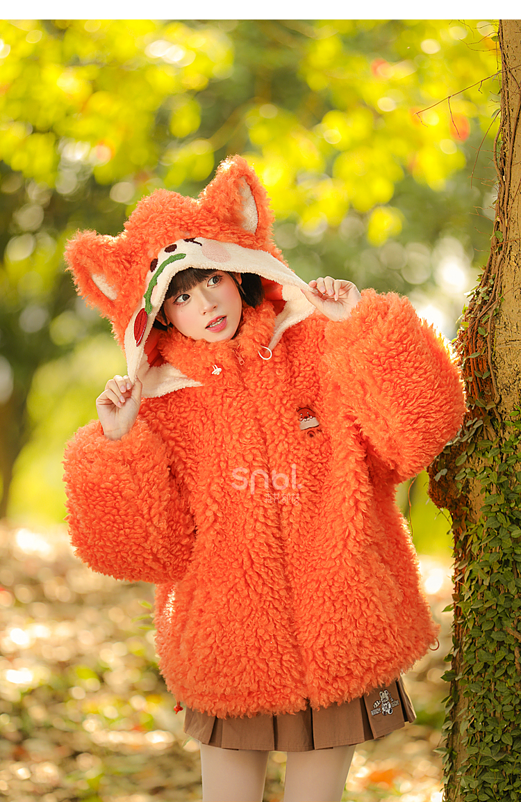 原創森女部落小眾設計感可愛萌趣風小狐狸連帽絨衫厚外套冬季新款