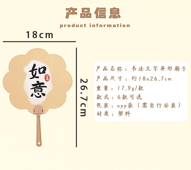 扇子 学生夏季便携书法古风扇子小礼品批发中国风塑料异型小扇子