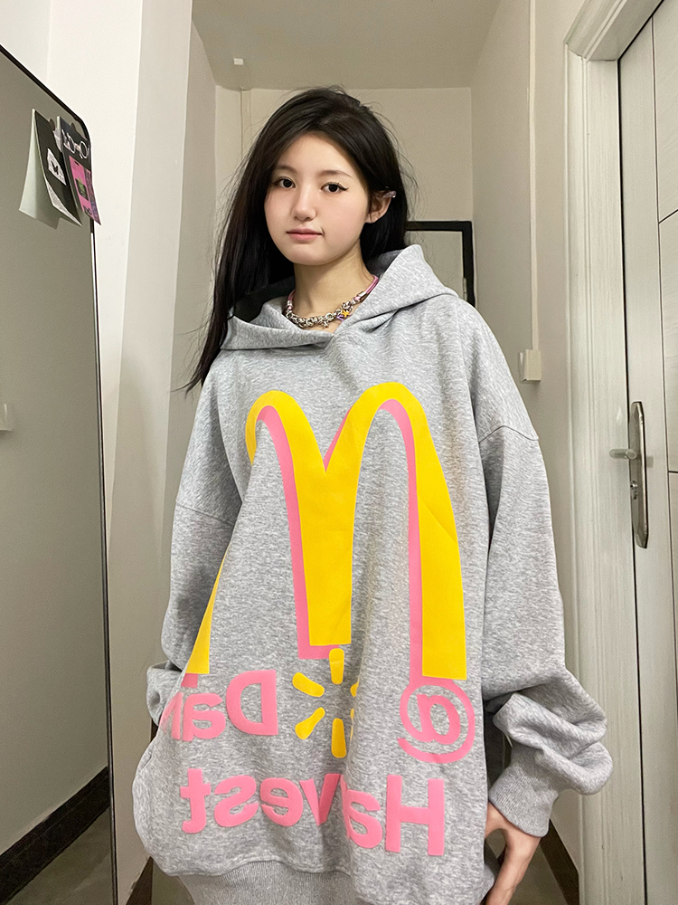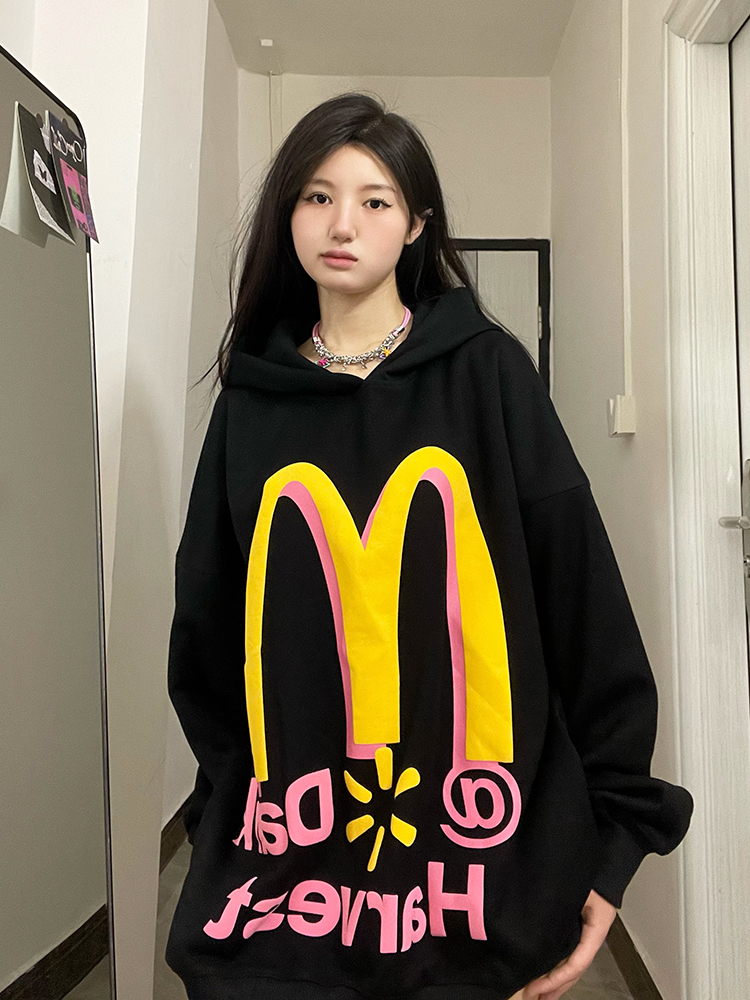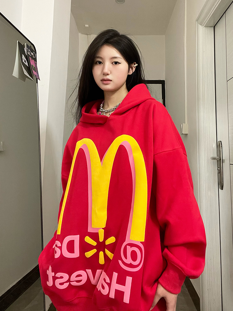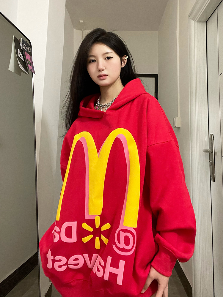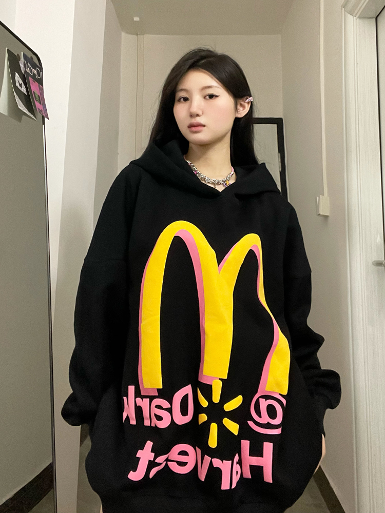 懶懶小朋友 美式復古麥當勞字母連帽運動衫寬鬆oversize情侶上衣女