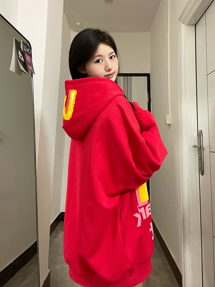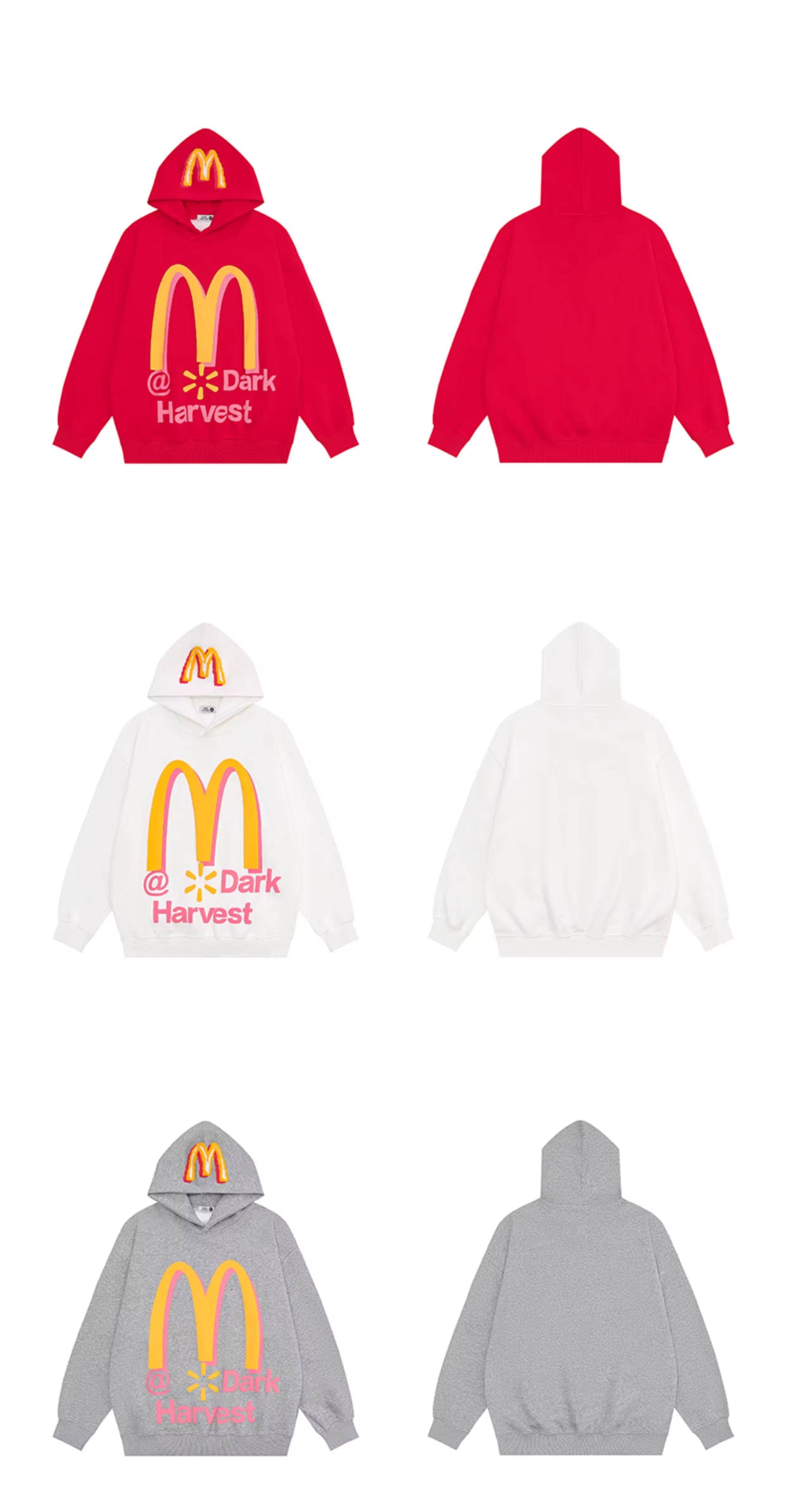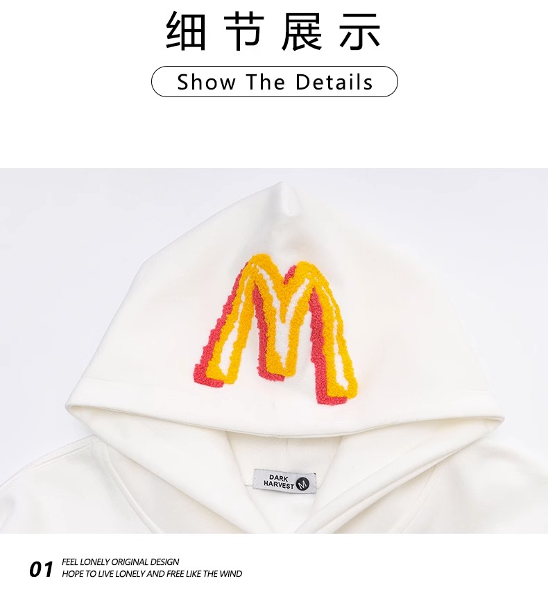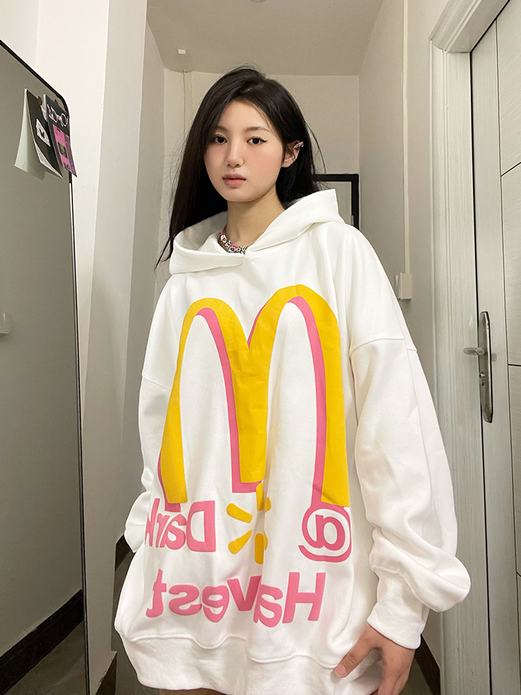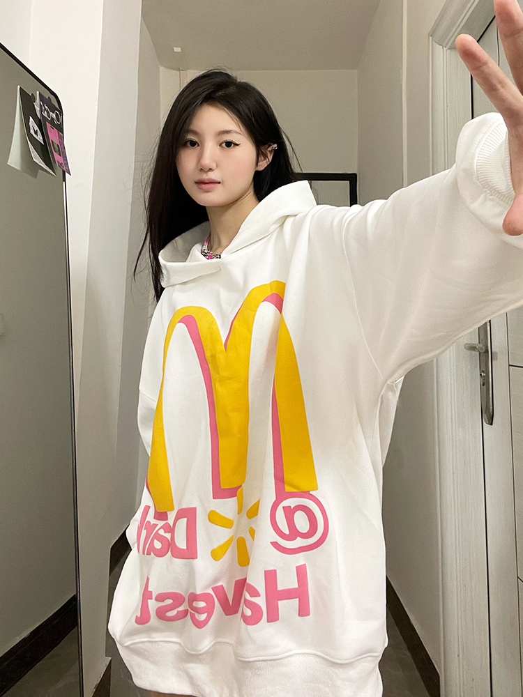 懶懶小朋友 美式復古麥當勞字母連帽運動衫寬鬆oversize情侶上衣女