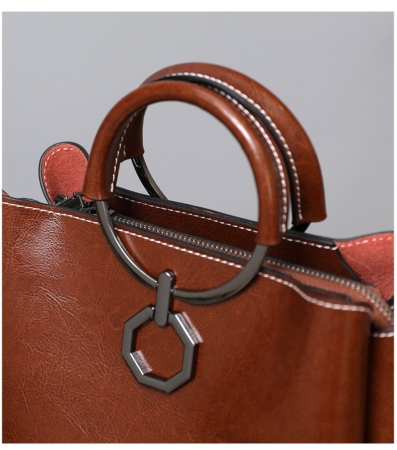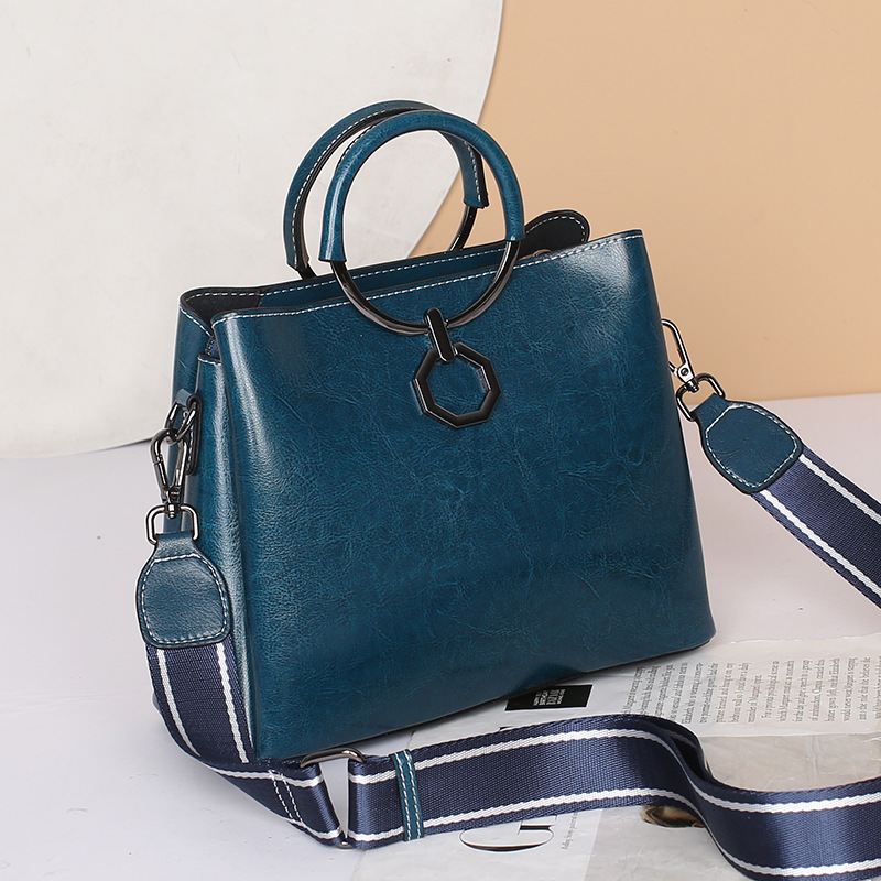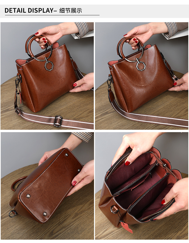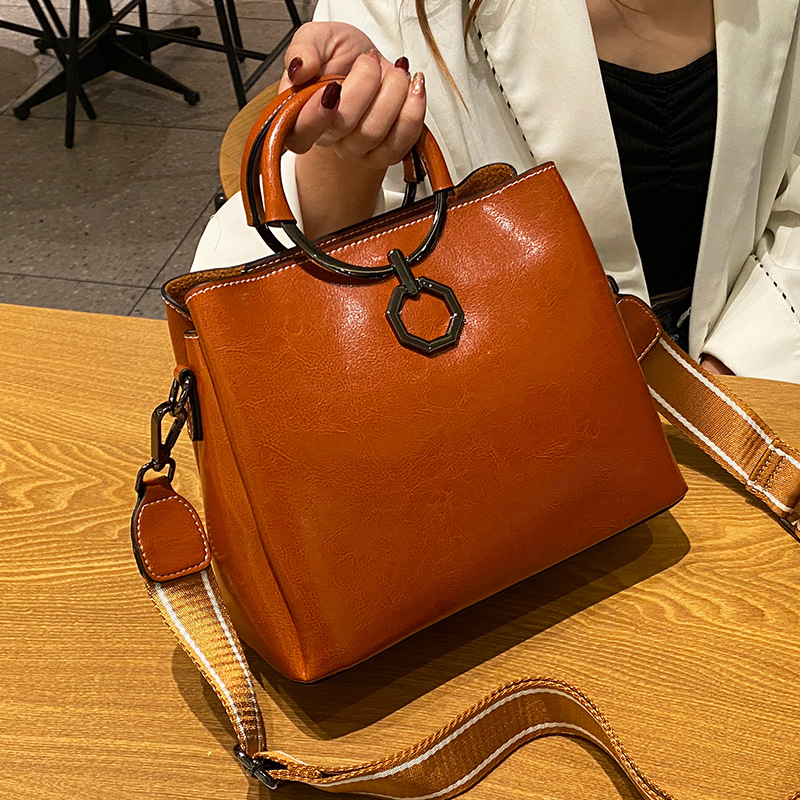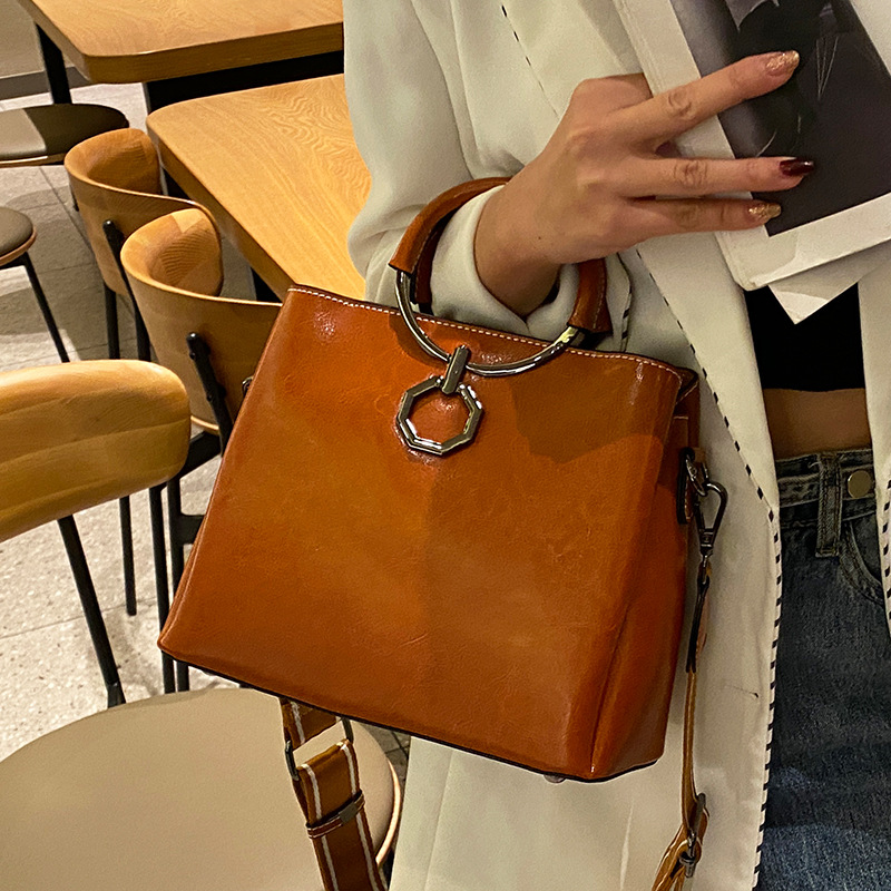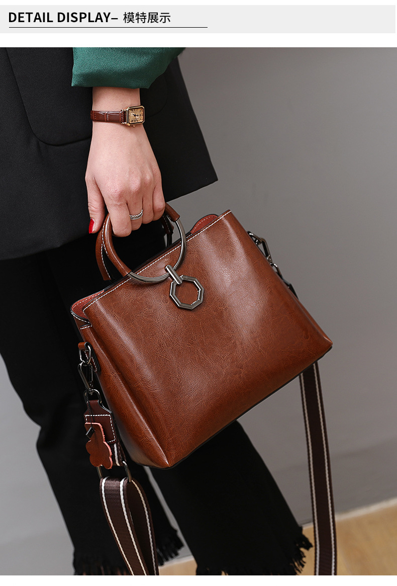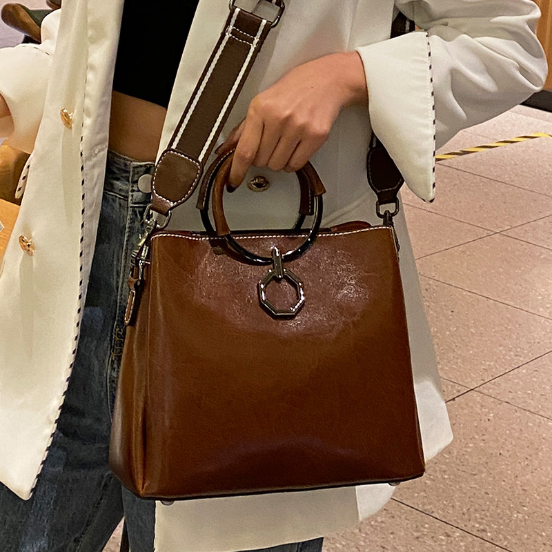 批发油蜡皮包包大容量女2022新款时尚真皮斜挎包高级感单肩水桶包