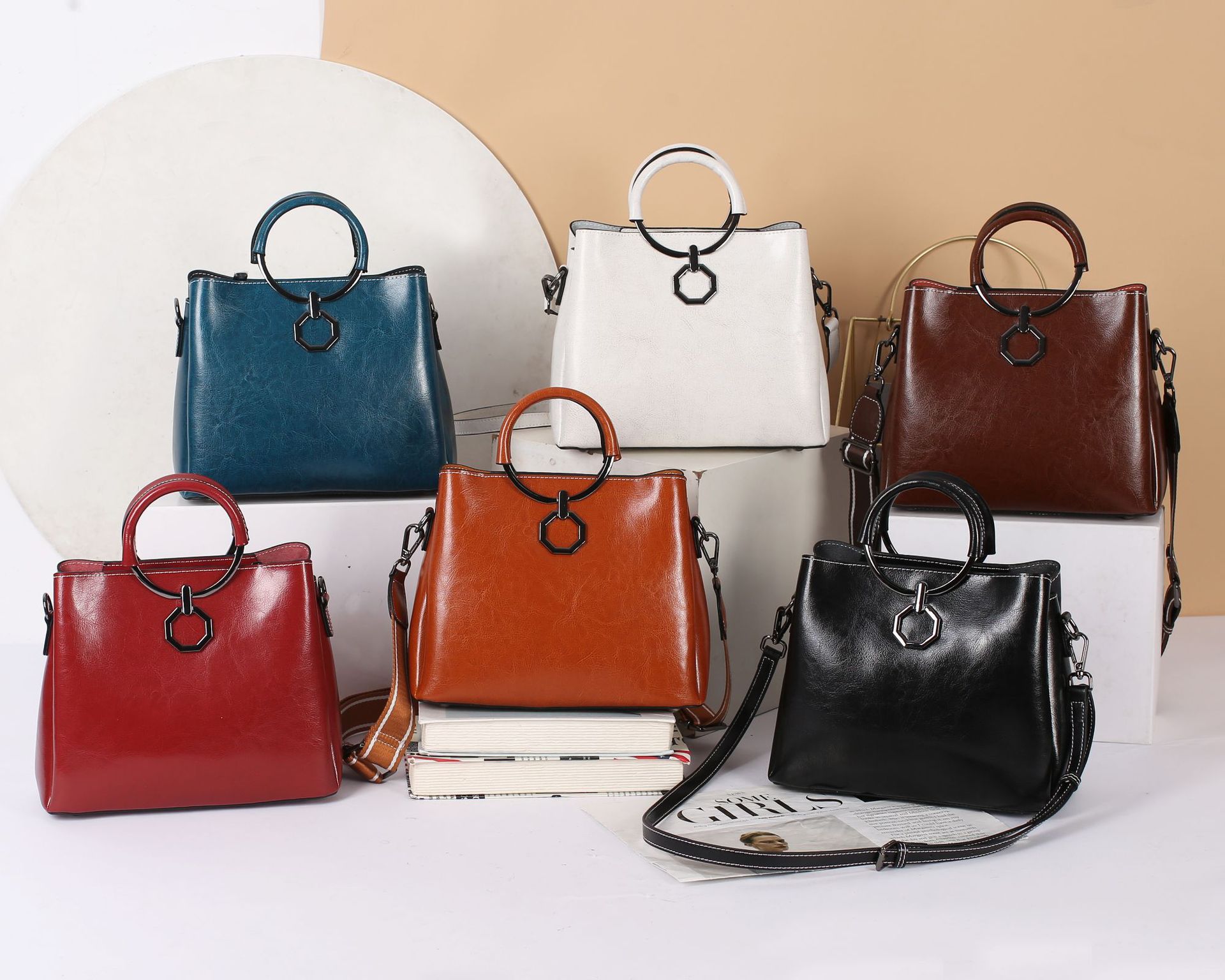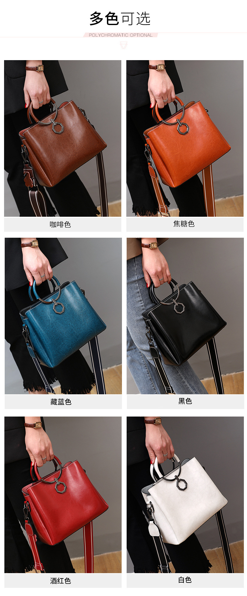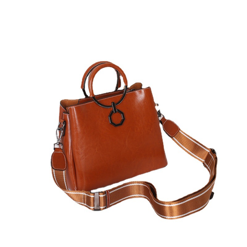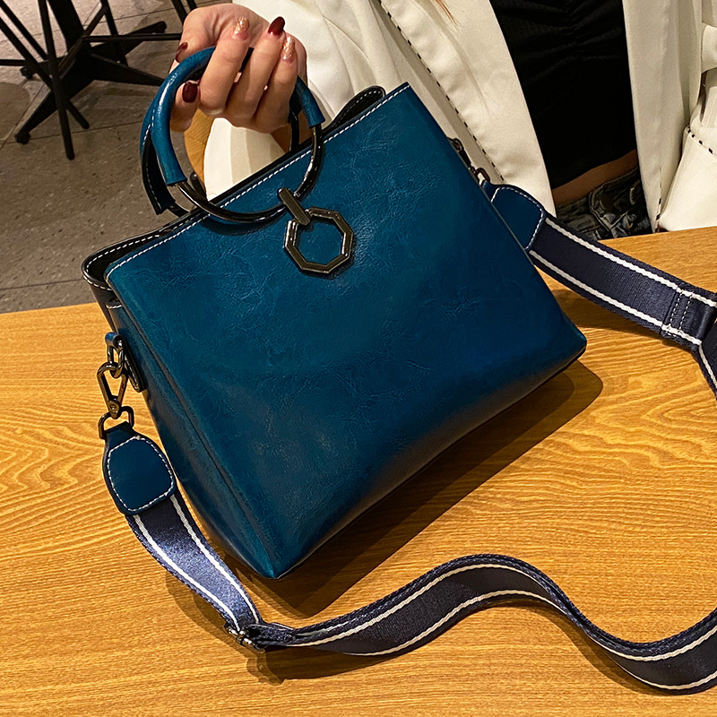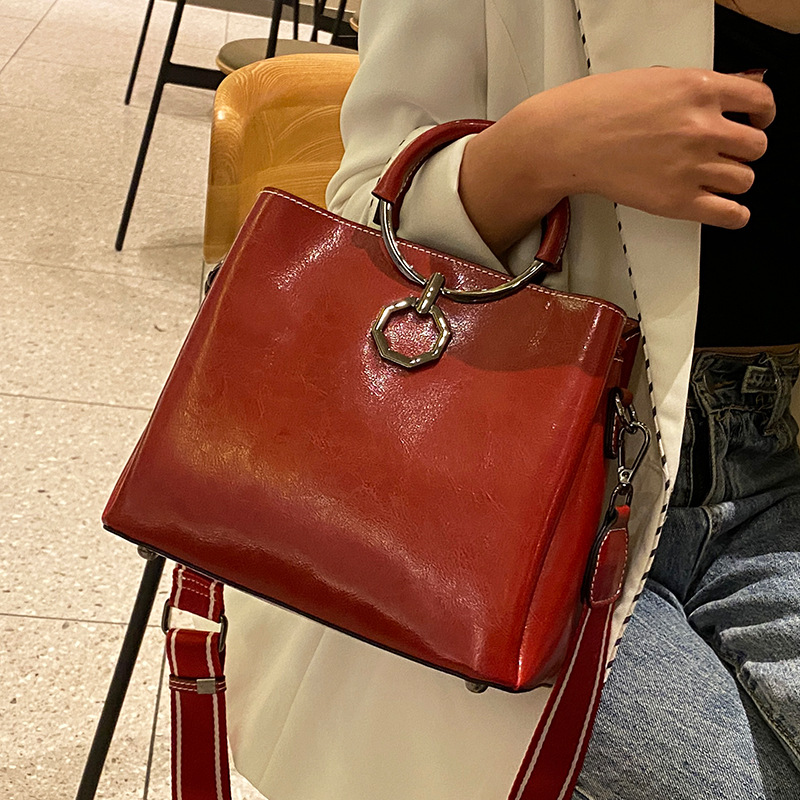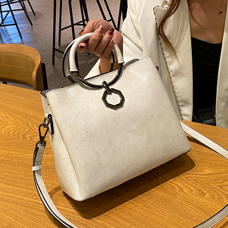 批发油蜡皮包包大容量女2022新款时尚真皮斜挎包高级感单肩水桶包