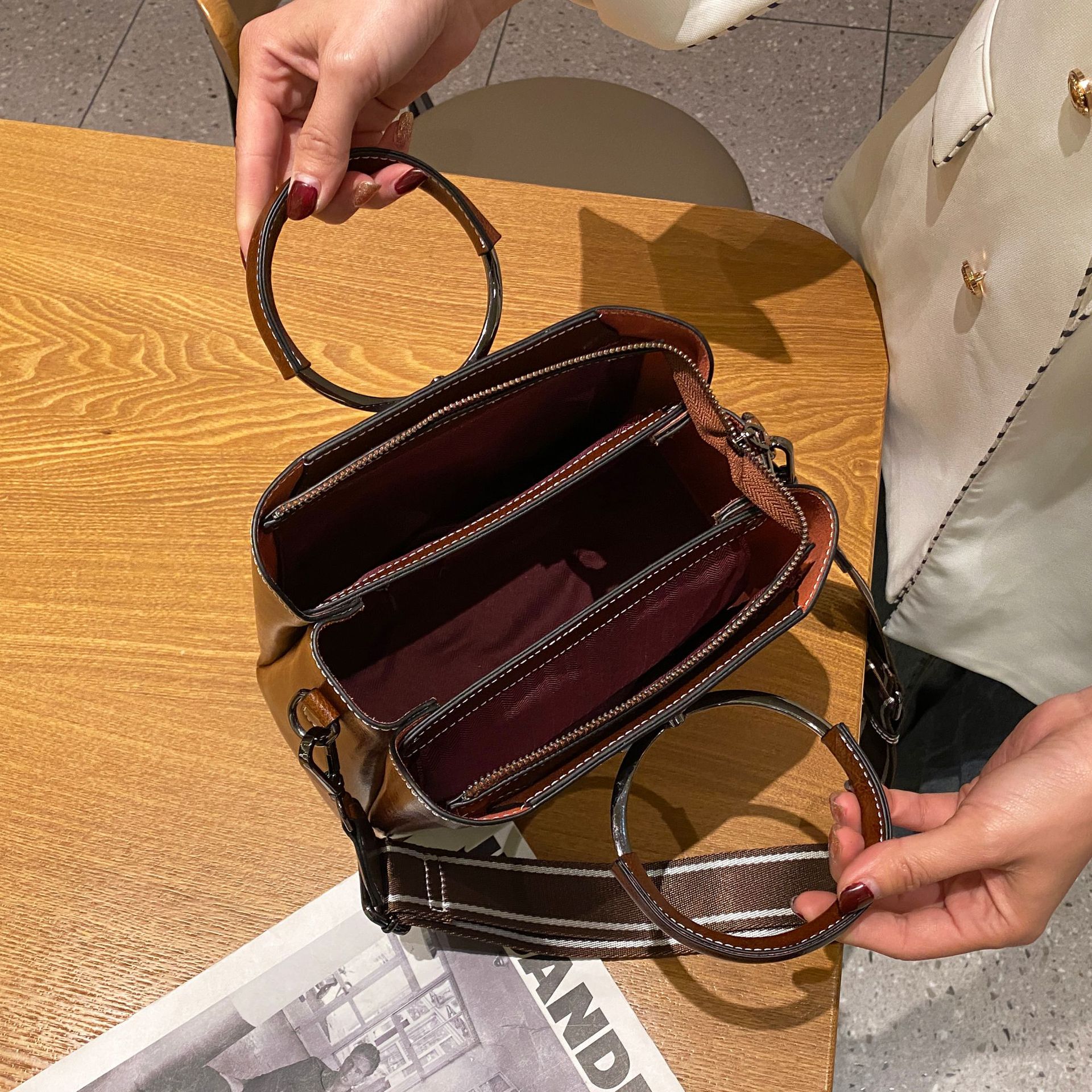 包内部结构 拉链暗袋,手机袋,证件袋,夹层拉链袋