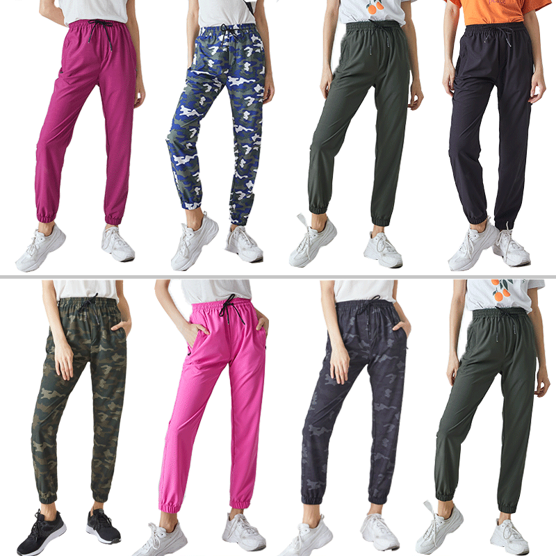 戶外徒步速乾褲女夏季薄款男寬鬆透氣跑步快乾黑色長褲迷彩登山褲