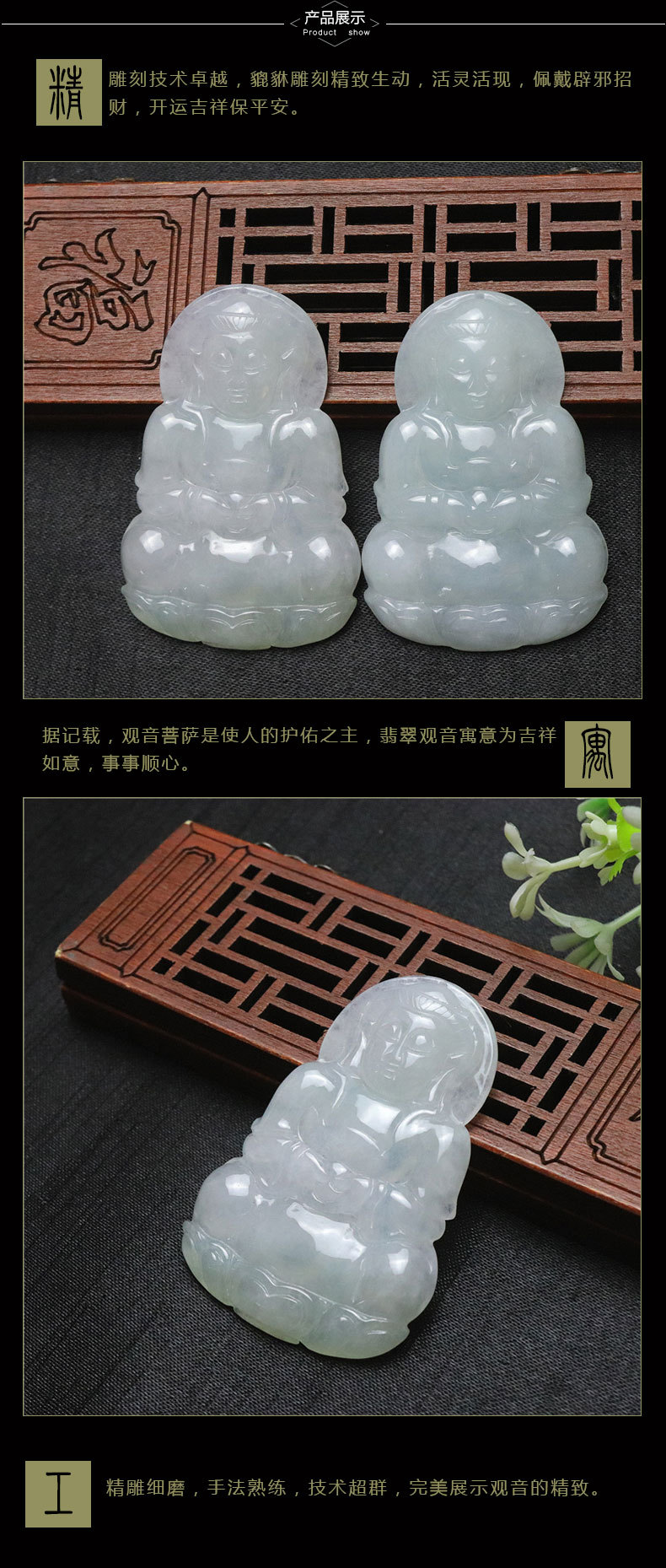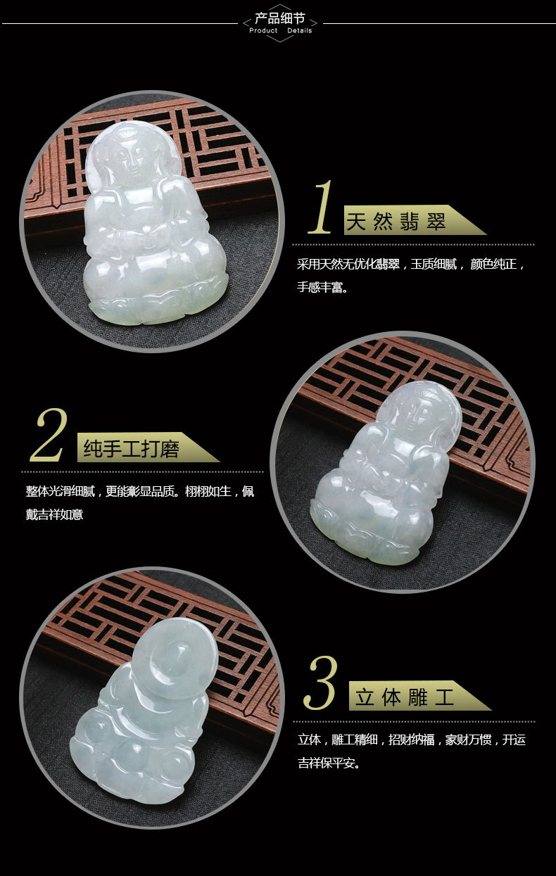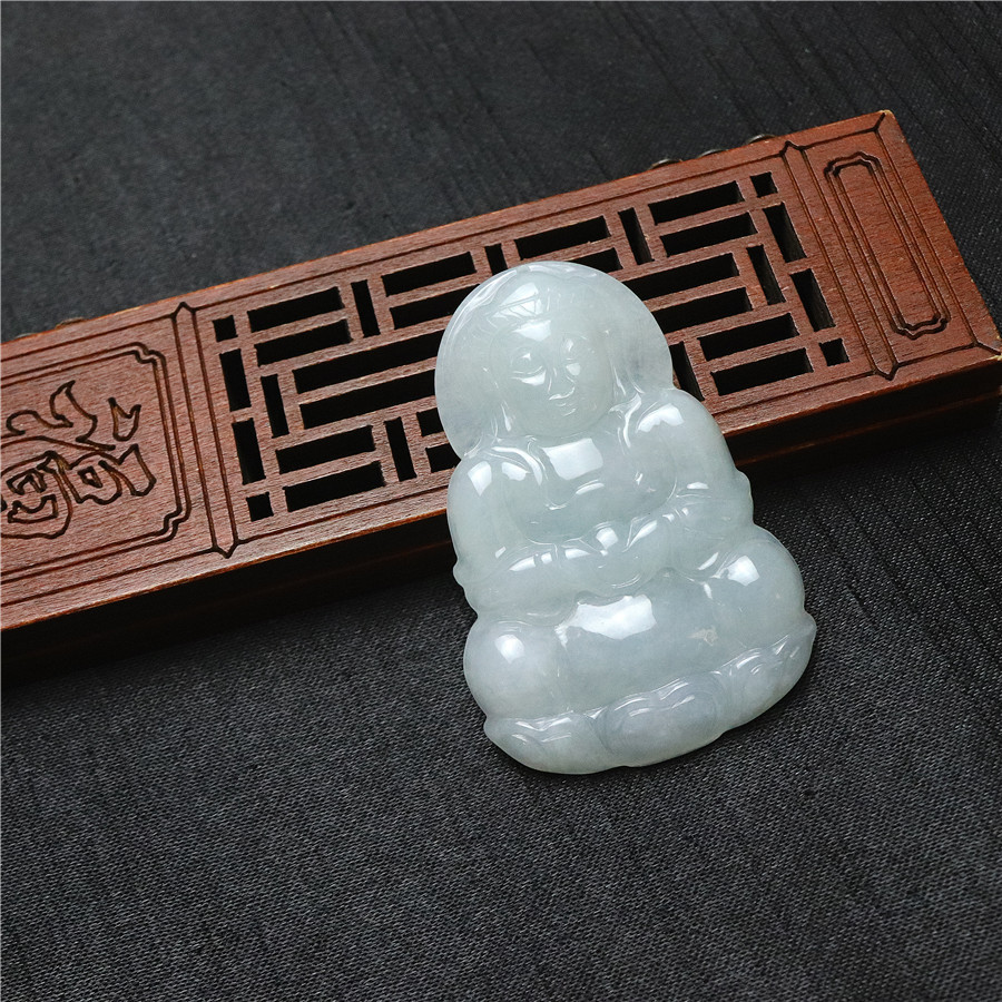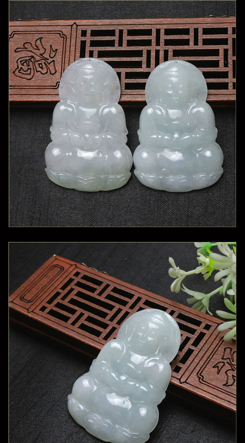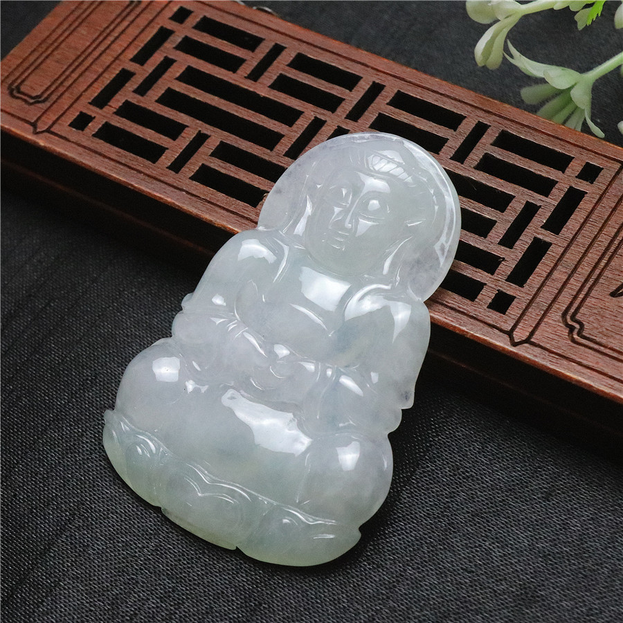 品质糯冰种正品天然翡翠观音菩萨吊坠缅甸A货手工艺品玉坠挂饰