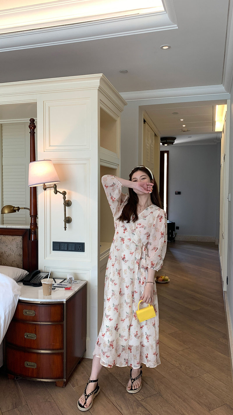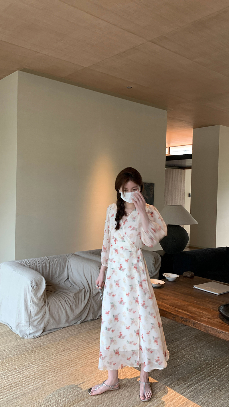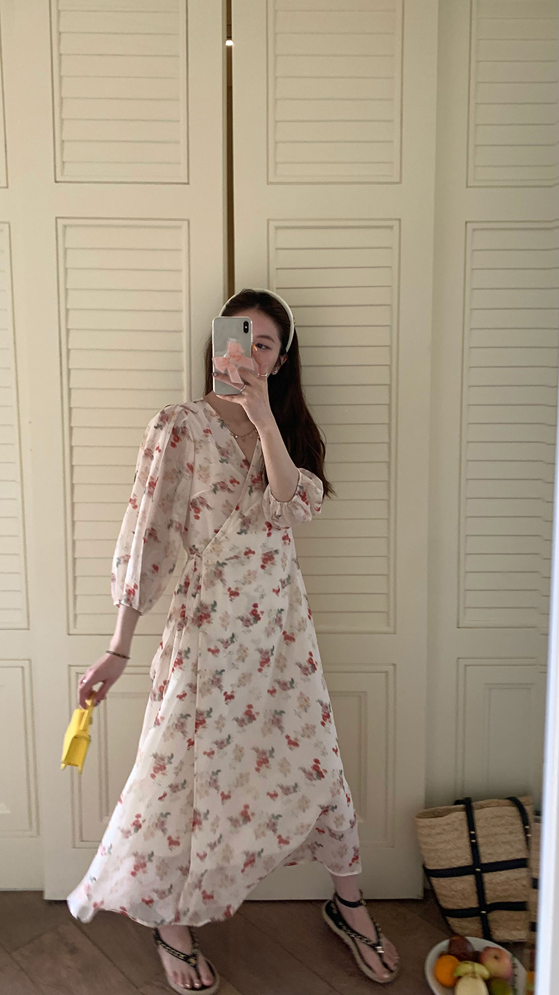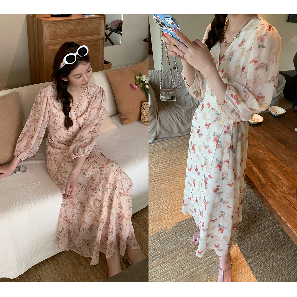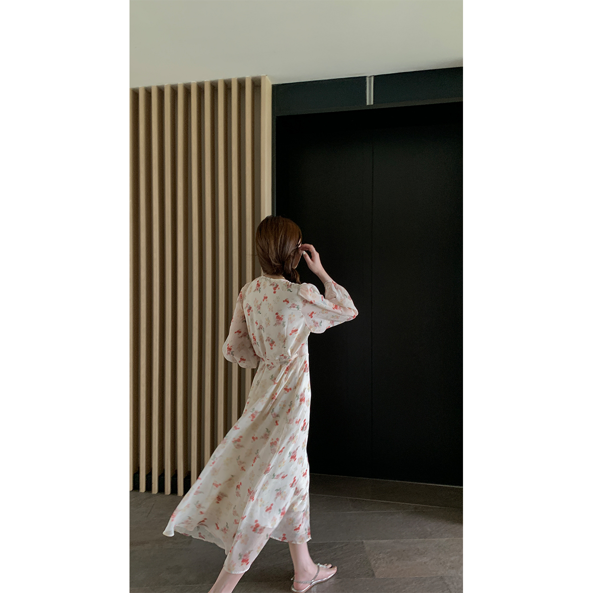 【現貨】im向南法假日!法式一片式茶歇碎花洋裝女夏長裙