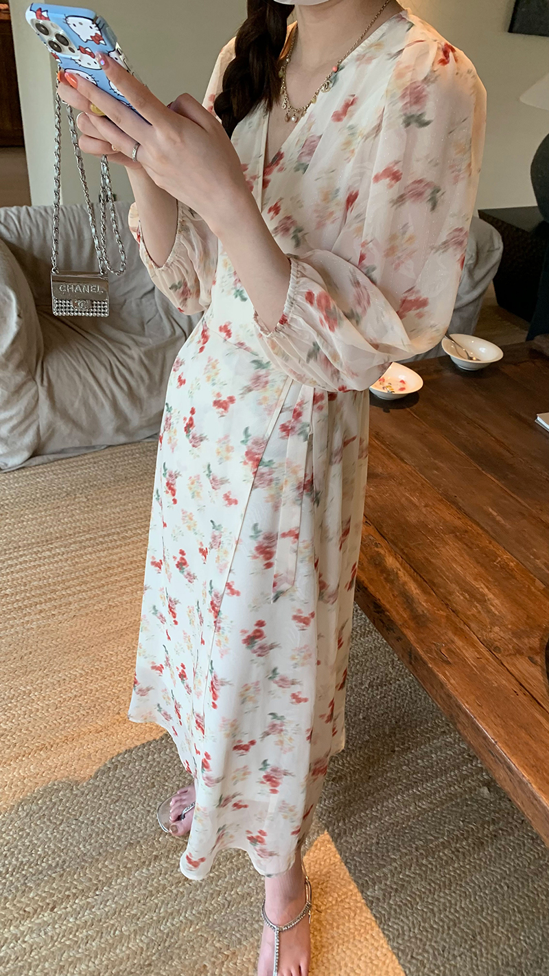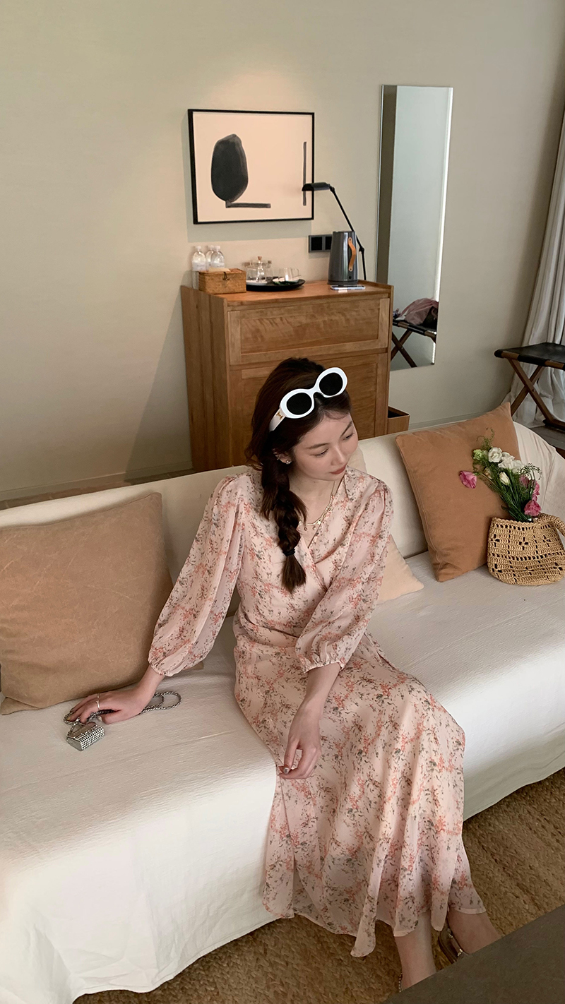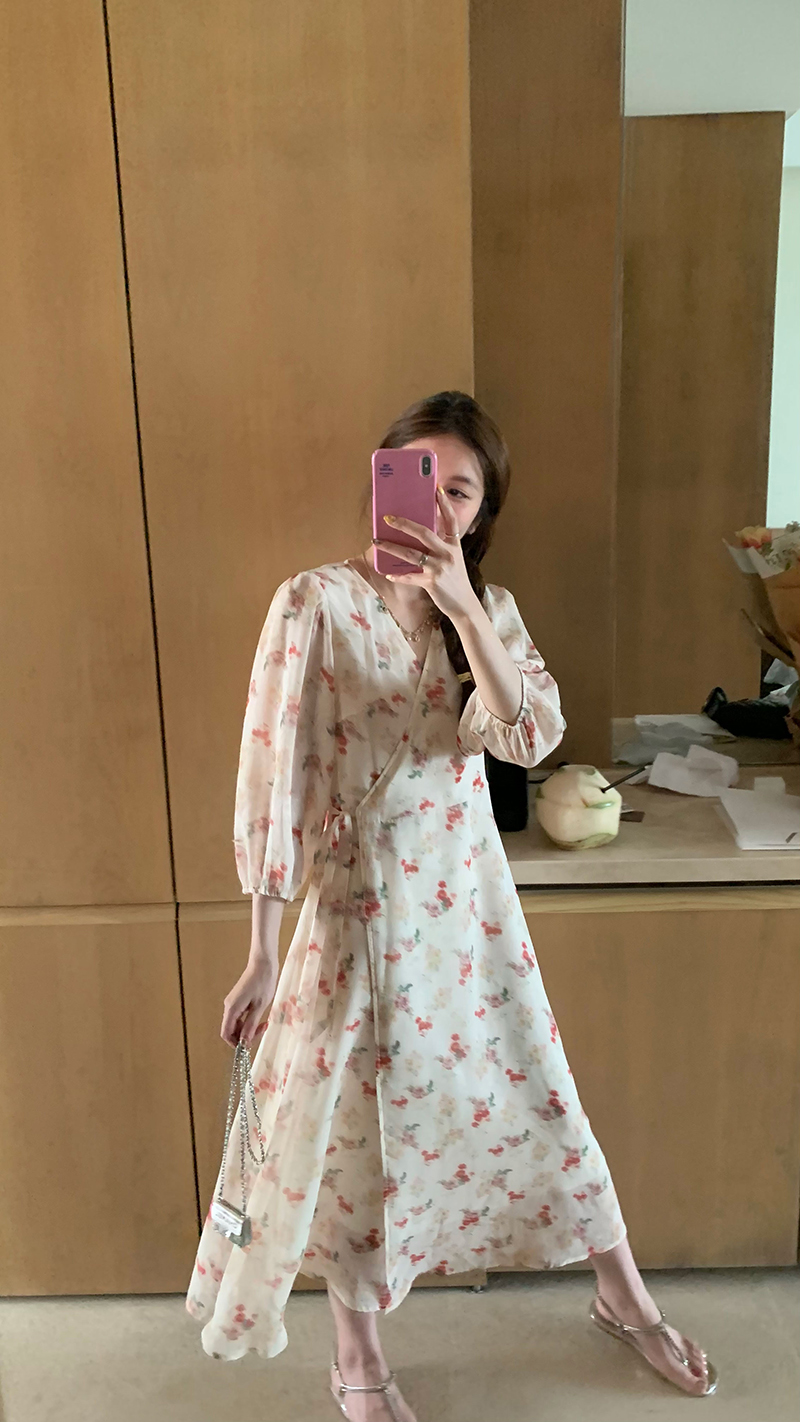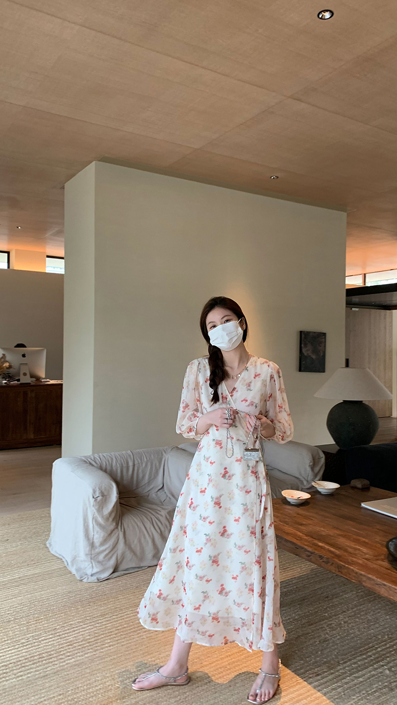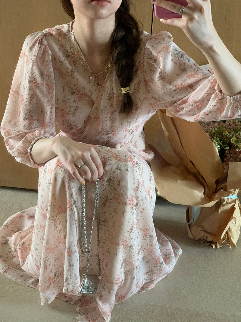 【現貨】im向南法假日!法式一片式茶歇碎花洋裝女夏長裙