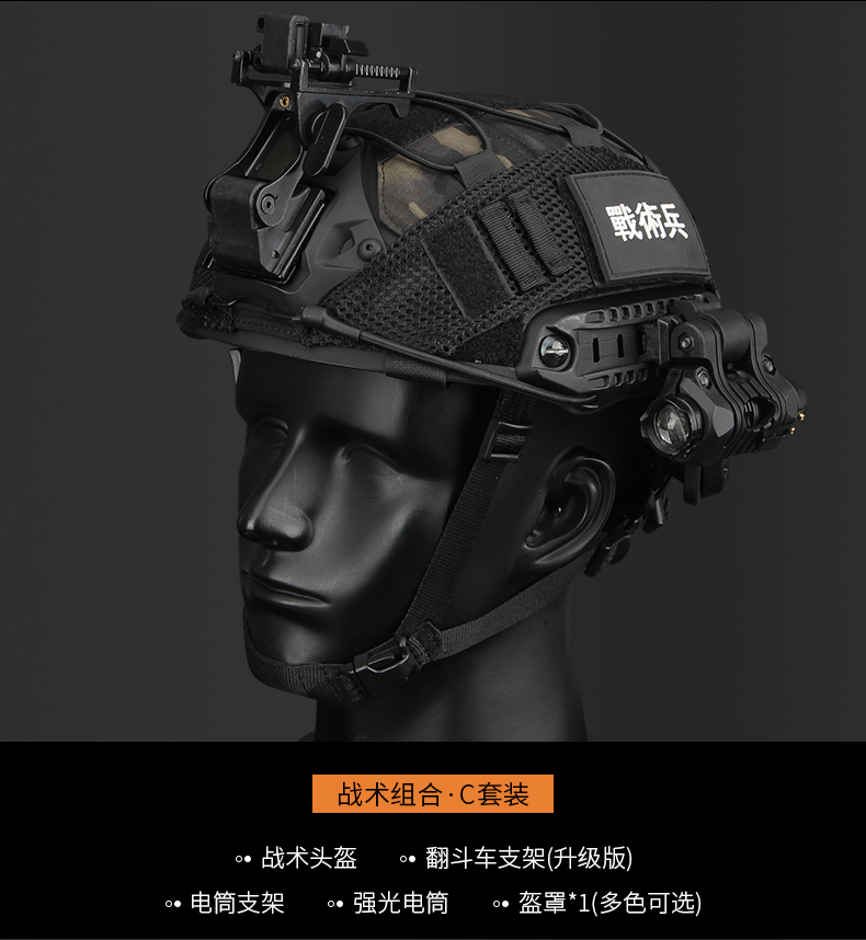 顏色分類 黑色單頭盔 安全帽+盔罩 安全帽+盔罩+大電夾+手電筒 安全帽+盔罩+手電筒夾+手電筒+升級版翻鬥車 盔+罩+夾+手電筒+升級翻鬥車+訊號燈*2+夜視儀模型+電池包 沙色單頭盔 沙色A套餐 沙色B套餐 沙色C套餐 沙色D套餐
