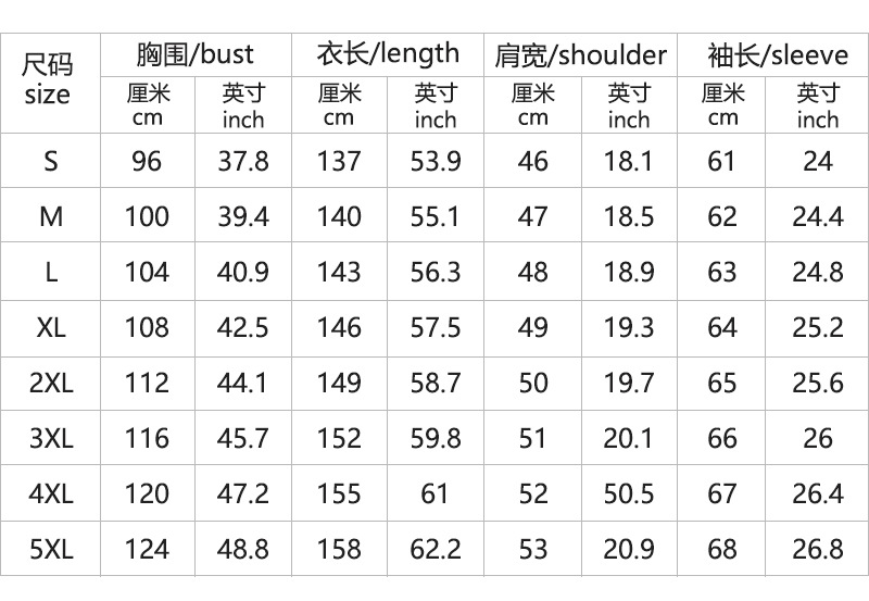 尺码 S,M,L,XL,XXL,3XL,4XL,5XL